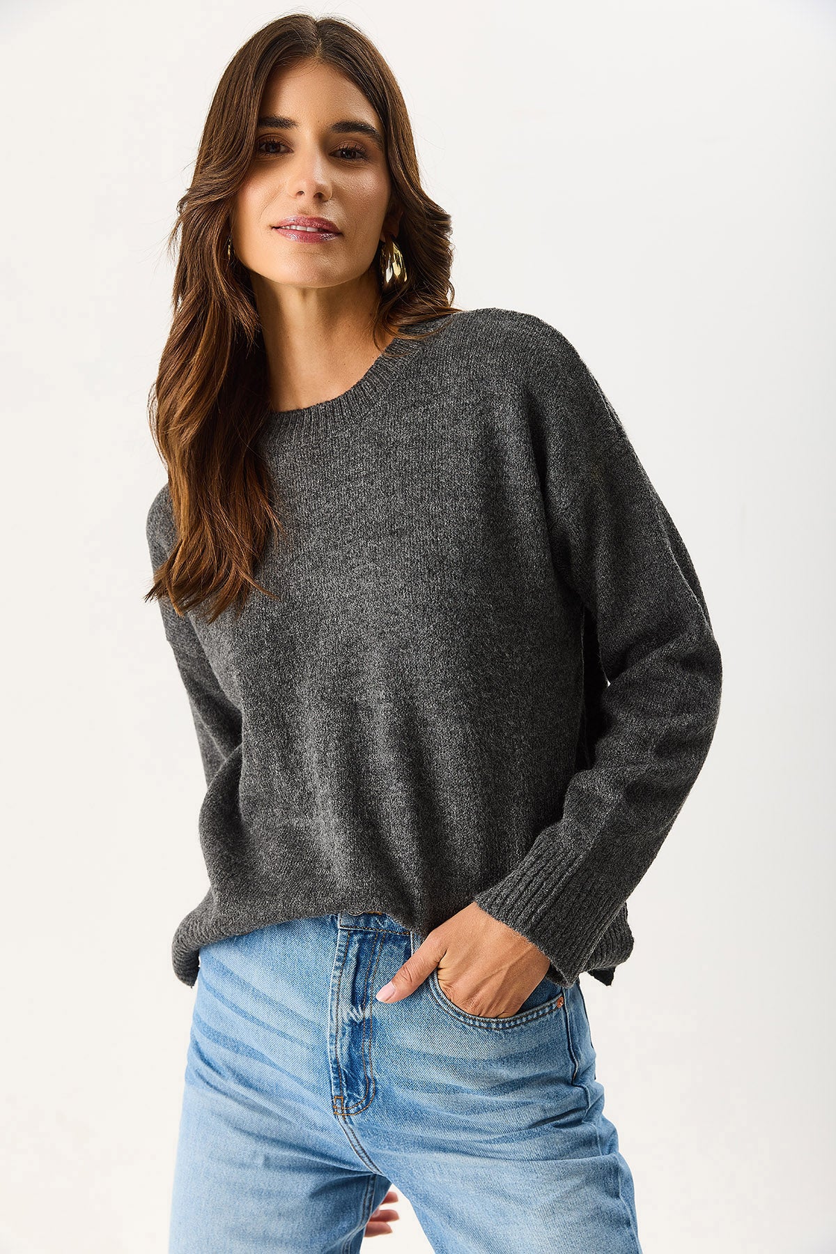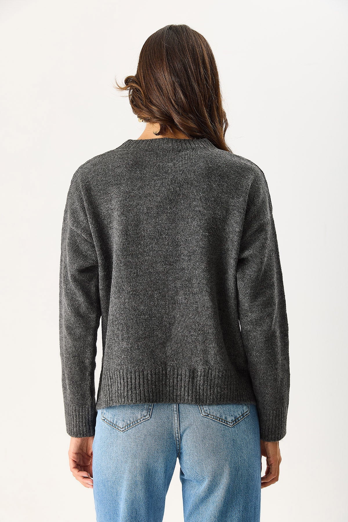 Kadın Anita Bisiklet Yaka Triko Kazak - Antrasit