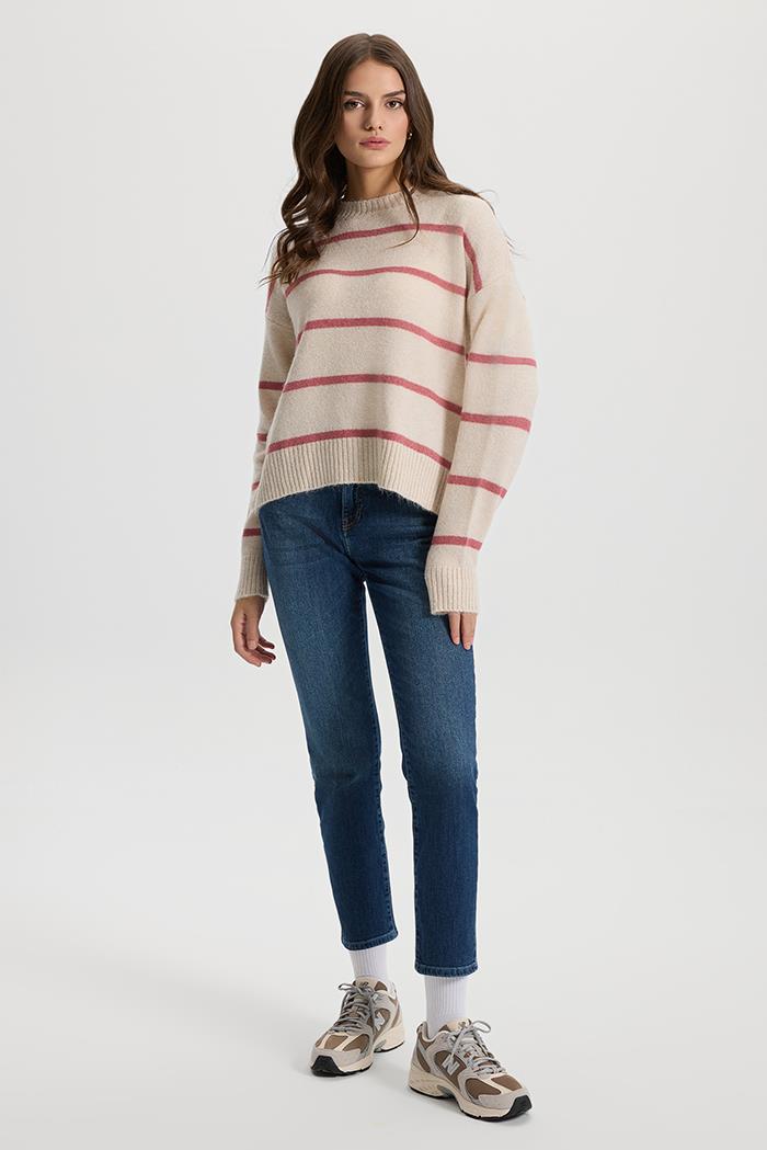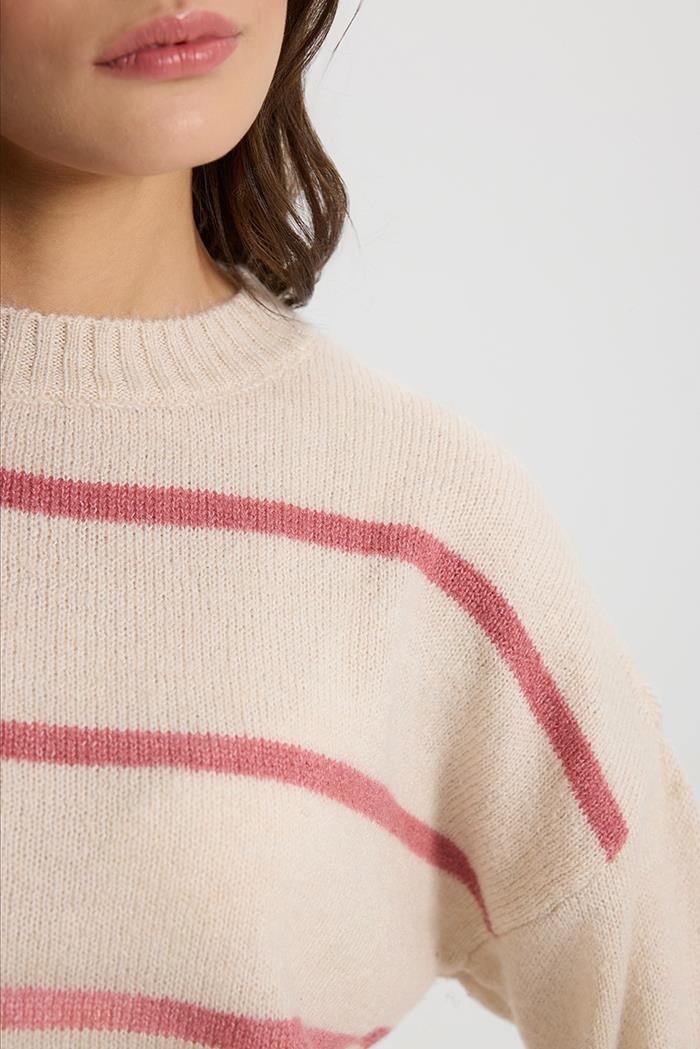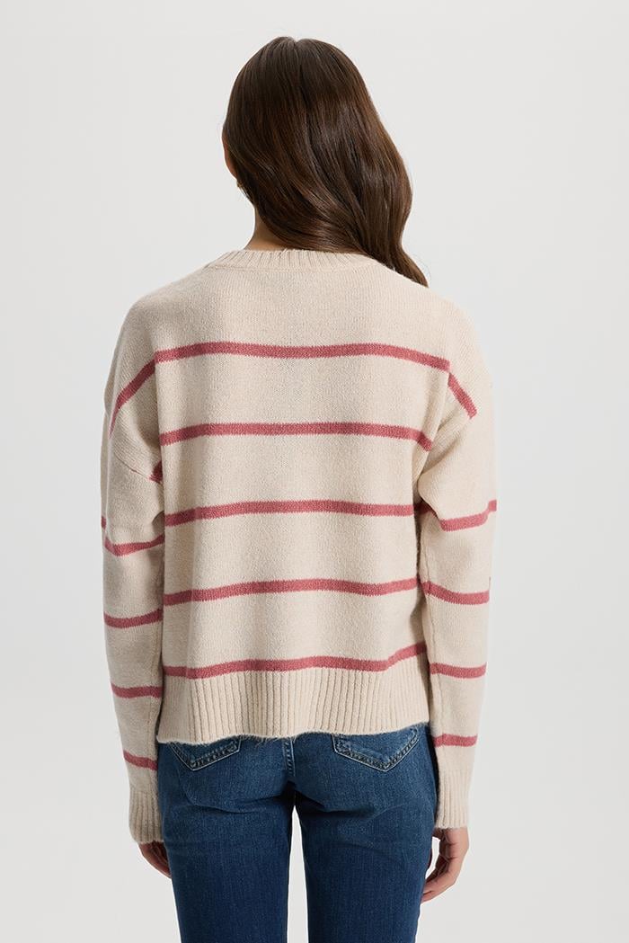 Kadın Anita Kemik-Pembe Çizgili Bisiklet Yaka Triko Kazak