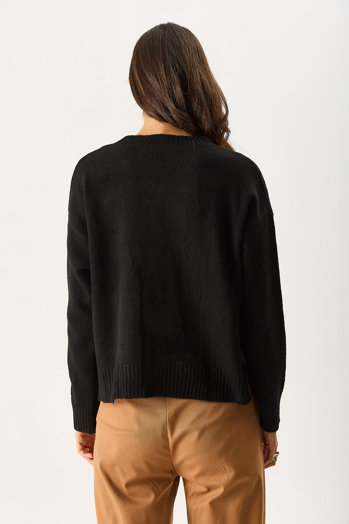 Kadın Anita Bisiklet Yaka Triko Kazak - Siyah