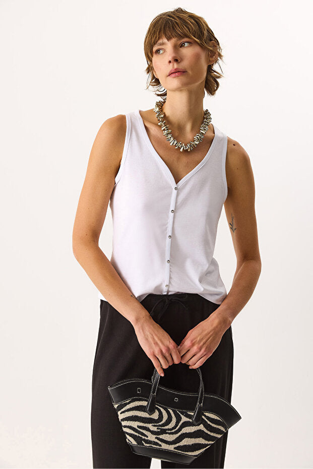 Kadın Askılı Önü Düğmeli Atlet (TENCEL)™ - Beyaz