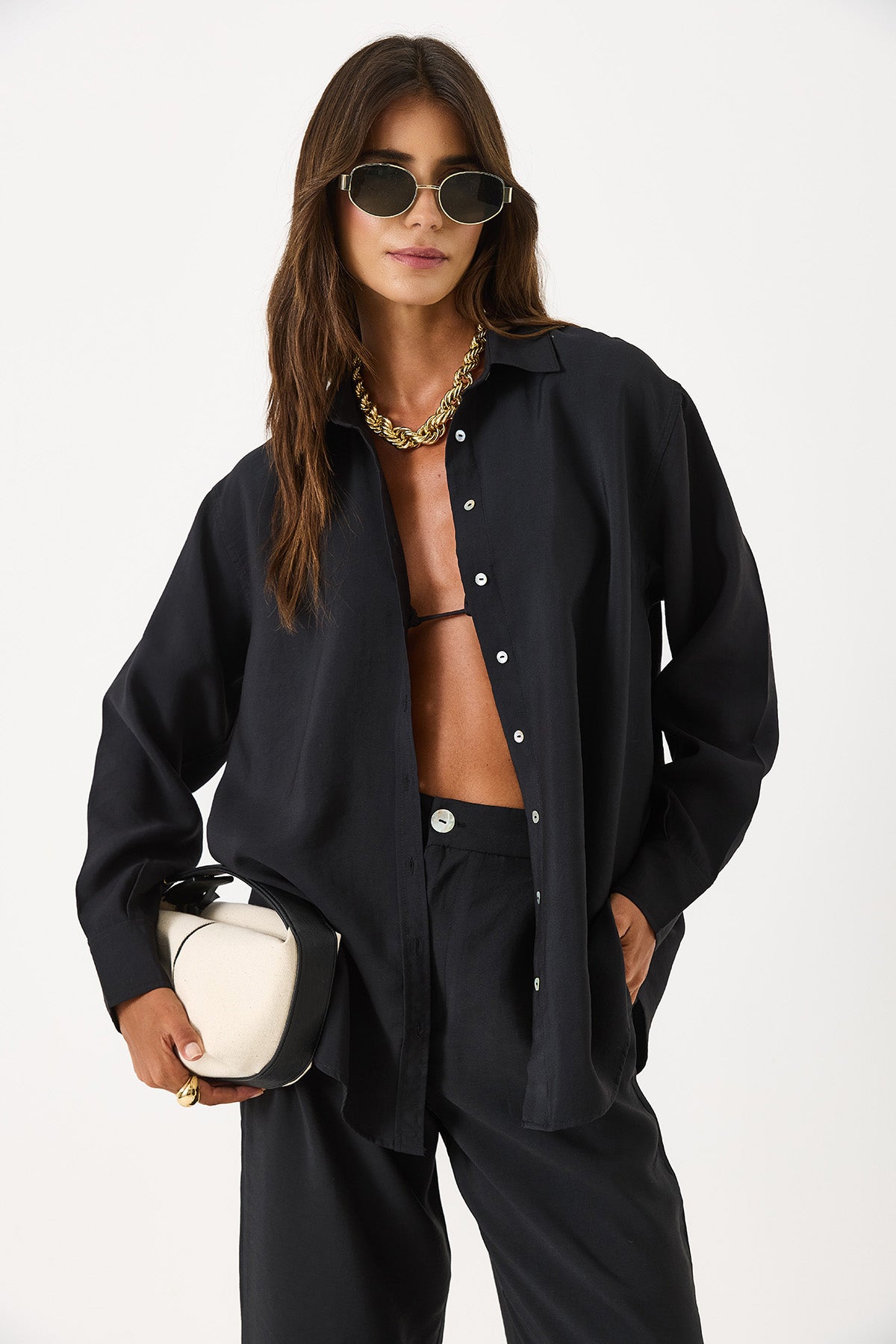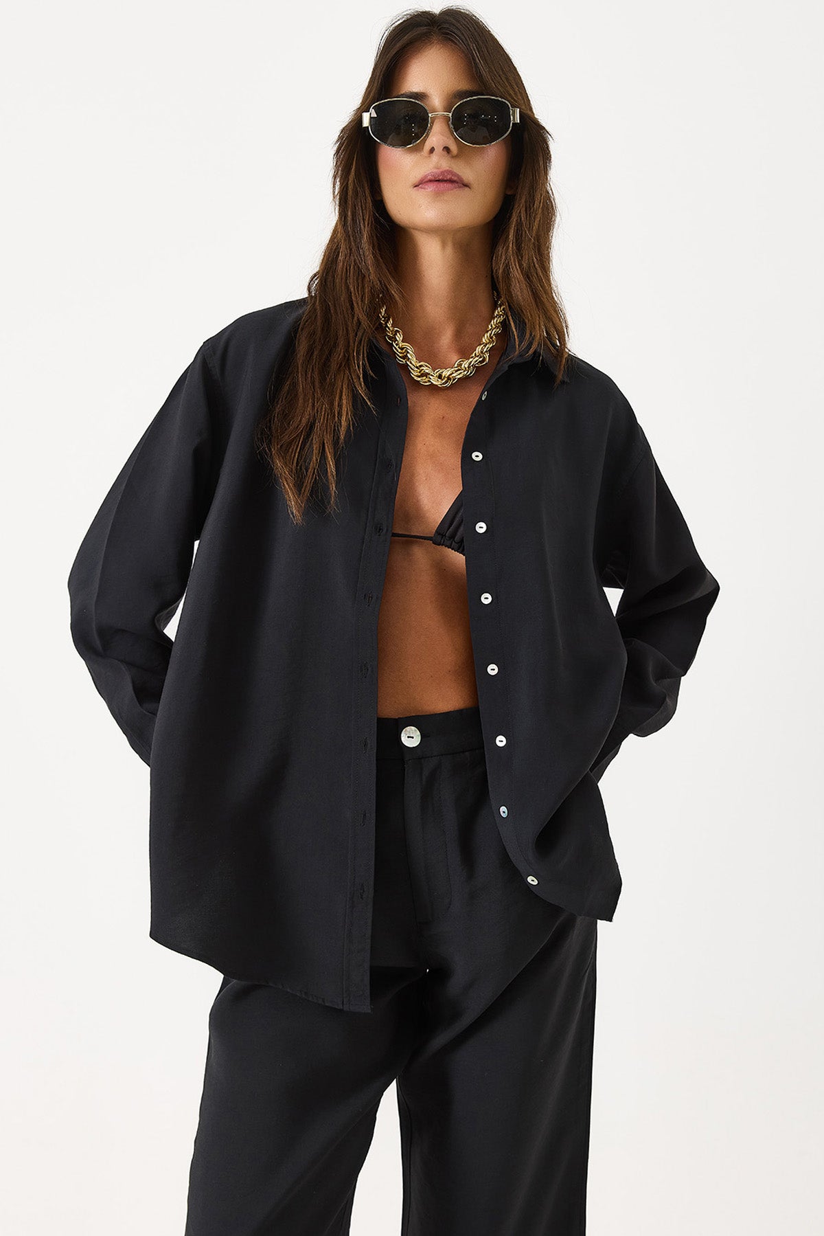 Kadın Bella Yumuşak Dokulu Gömlek (CUPRO) - Siyah