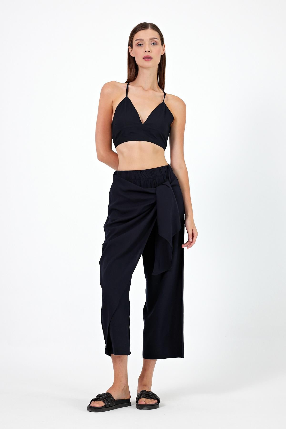 Kadın Belly Pareo Keten Pantolon - Siyah