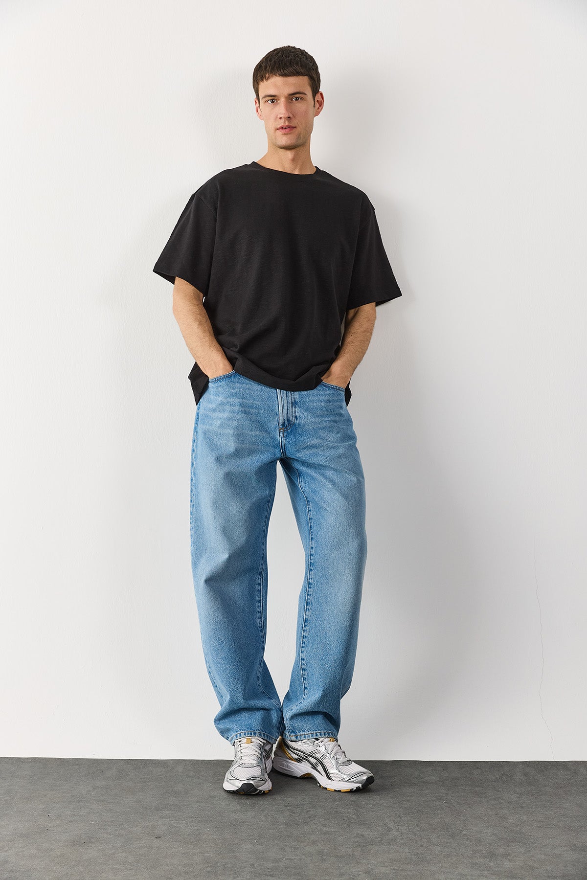 Rahatlığı stilinle buluştur! Flamlı dokusuyla hareketli ve doğal bir görünüm sunan bu oversize tişört, bisiklet yaka kesimiyle klasik bir duruş sağlıyor. Geniş kesimi sayesinde gün boyu konfor sunarken, rahat kalıbıyla sokak stilinin favorisi olmaya aday. Jean’den şortlara, rahat pantolonlara kadar pek çok parça ile kolayca kombinlenebilir. Flamlı dokulu kumaş. Oversize rahat kalıp. Bisiklet yaka. Hafif ve nefes alabilir. Günlük kullanıma uygun. Sade ve özgür stilin yeni adresi.