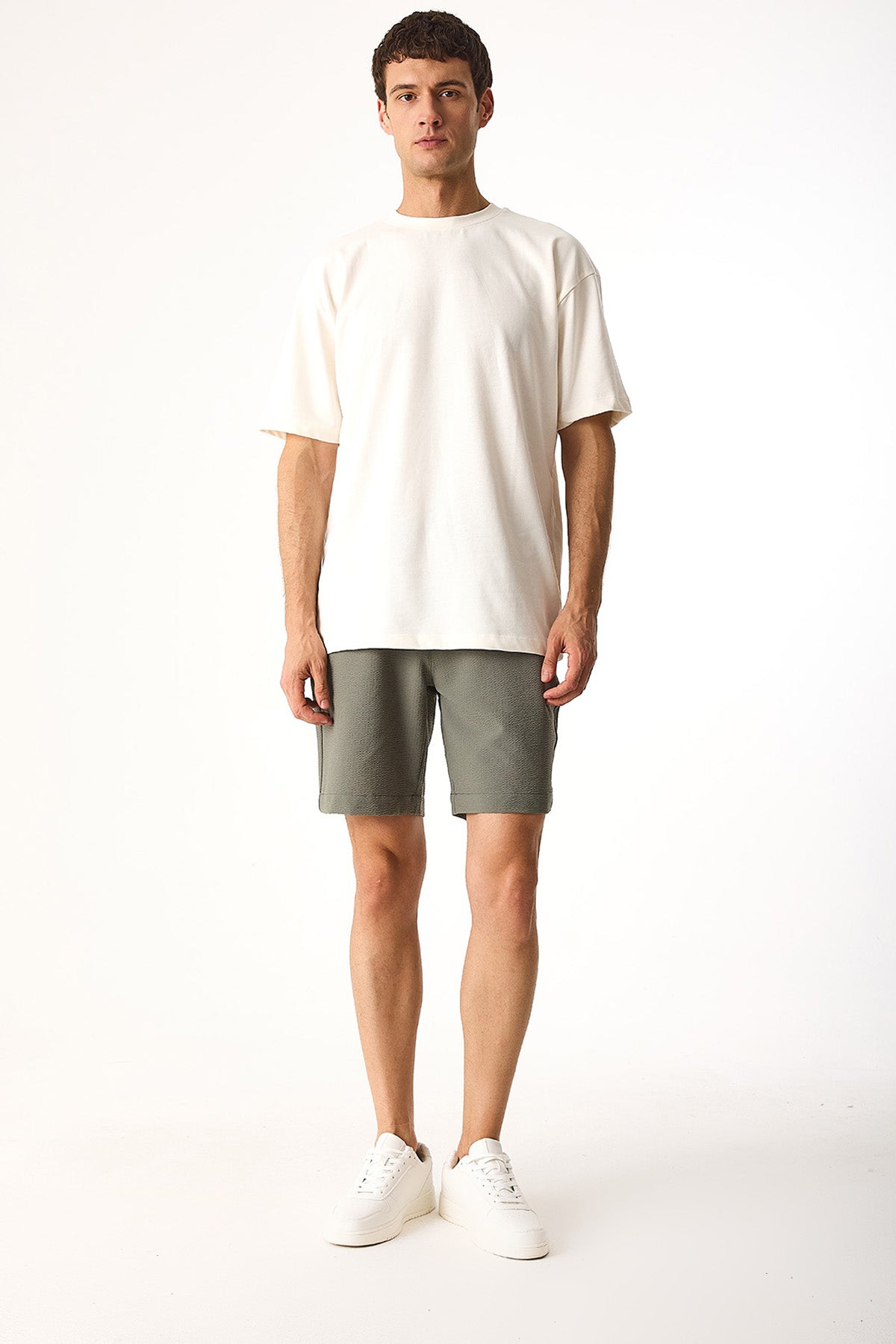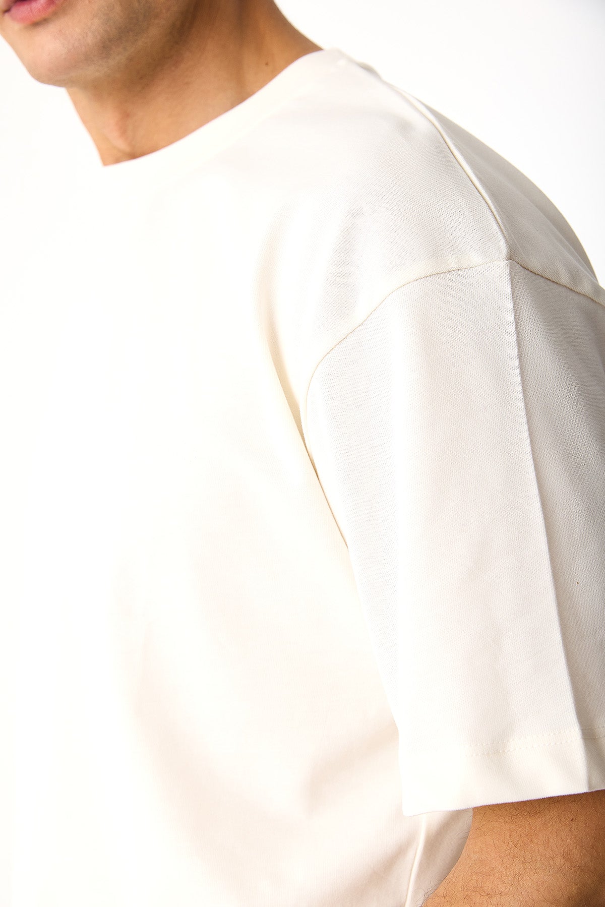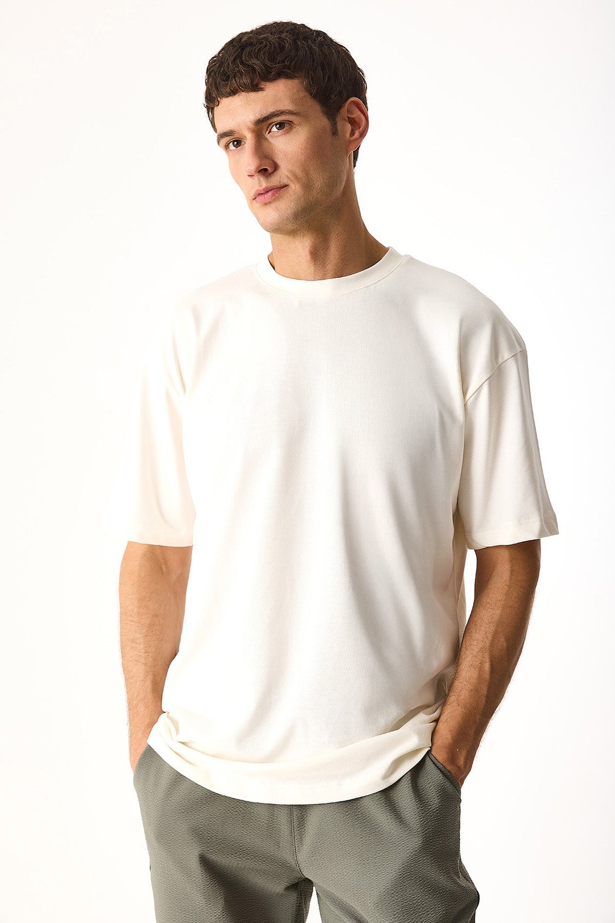 Erkek Bisiklet Yaka Oversize Yumuşak Dokulu Tişört %100 Pamuk - Ekru