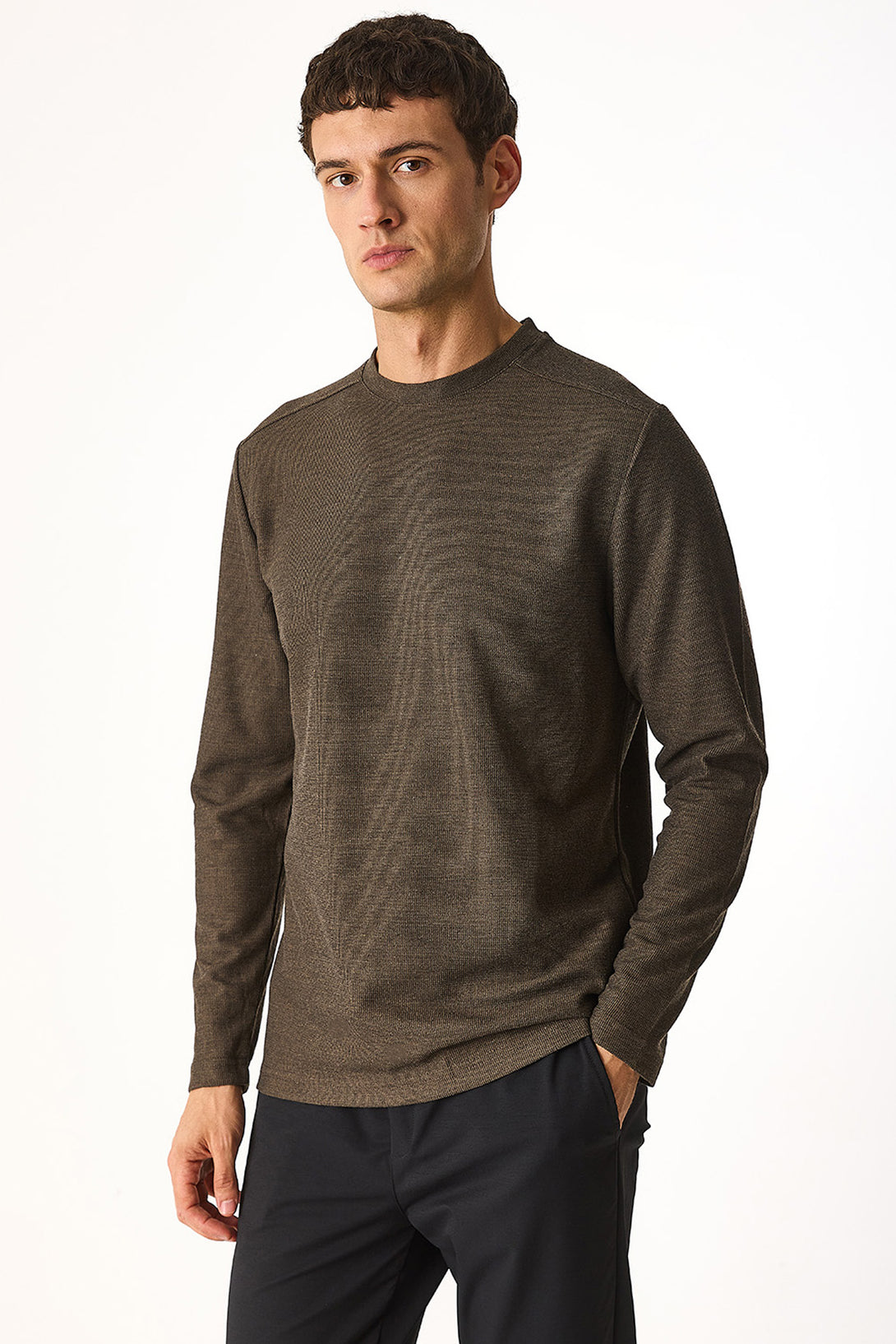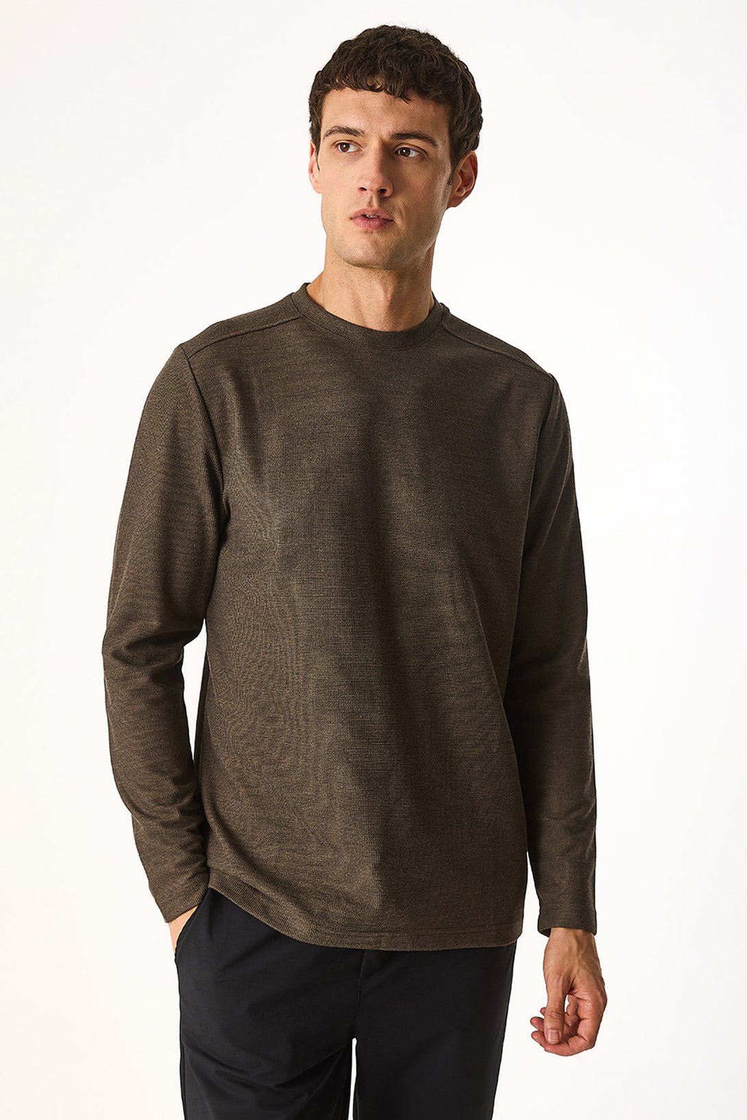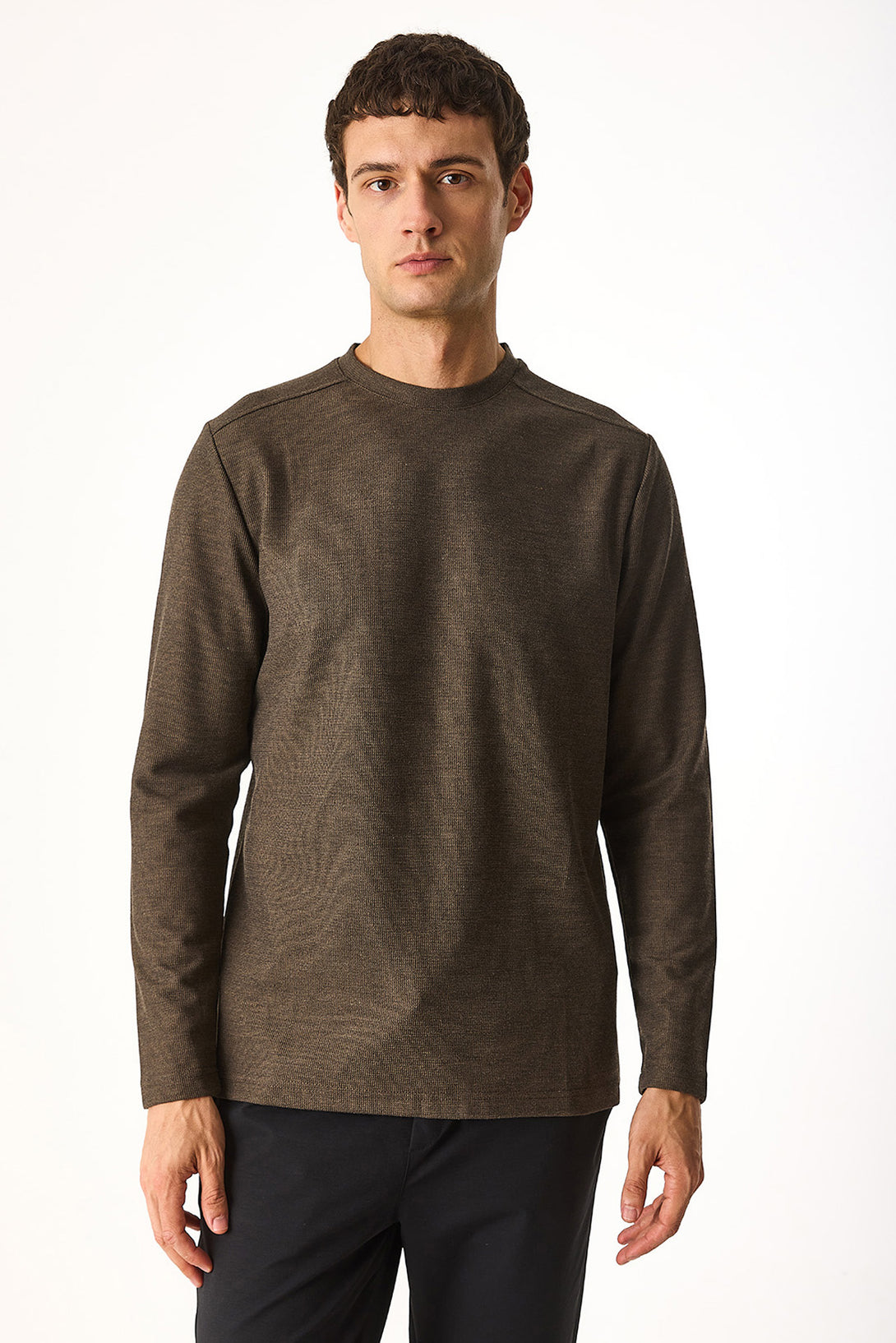 Bisiklet Yaka Regular Fit Dokulu Sweatshirt