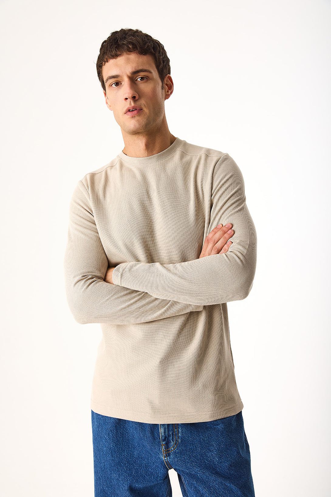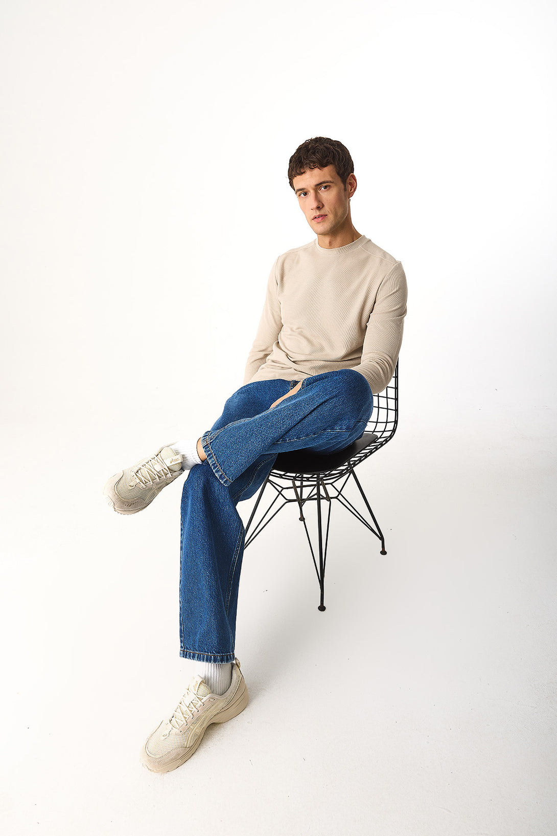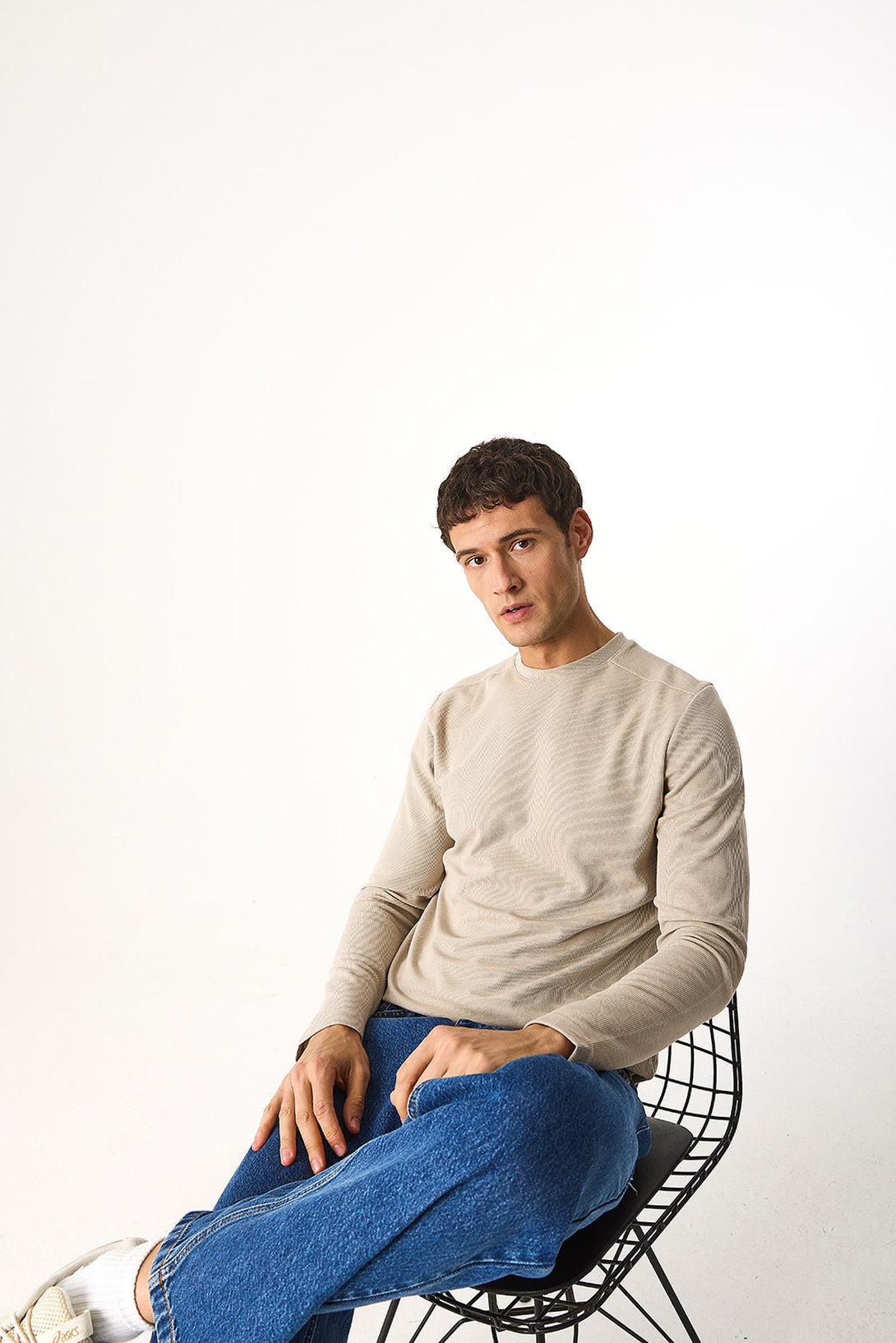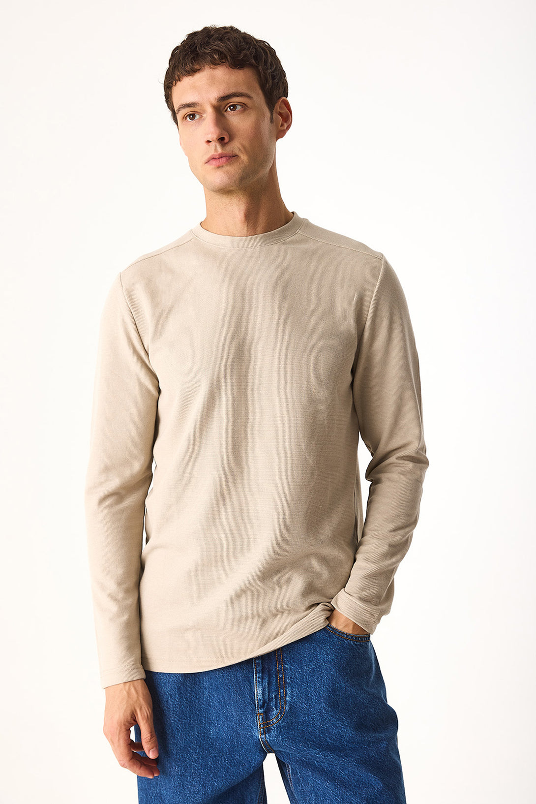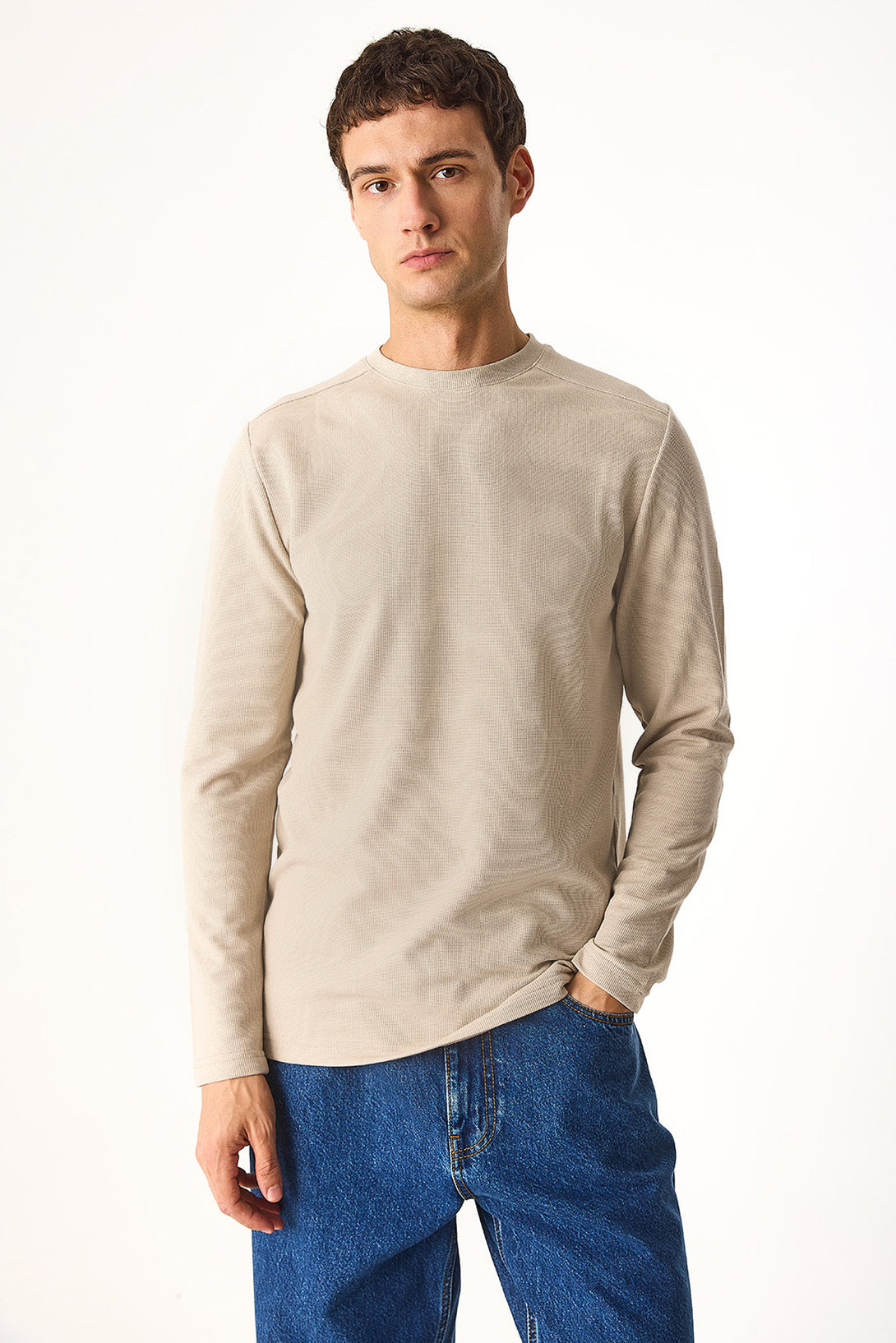 Bisiklet Yaka Regular Fit Dokulu Sweatshirt 2K26205224-019