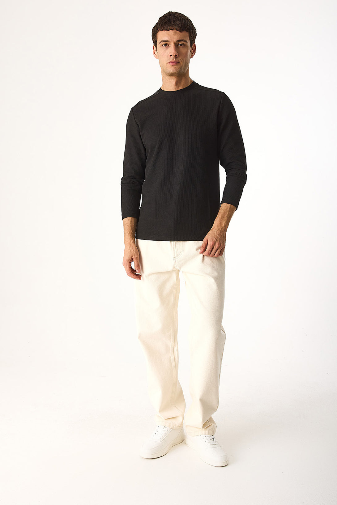 Bisiklet Yaka Regular Fit Dokulu Sweatshirt 2K26205224-028