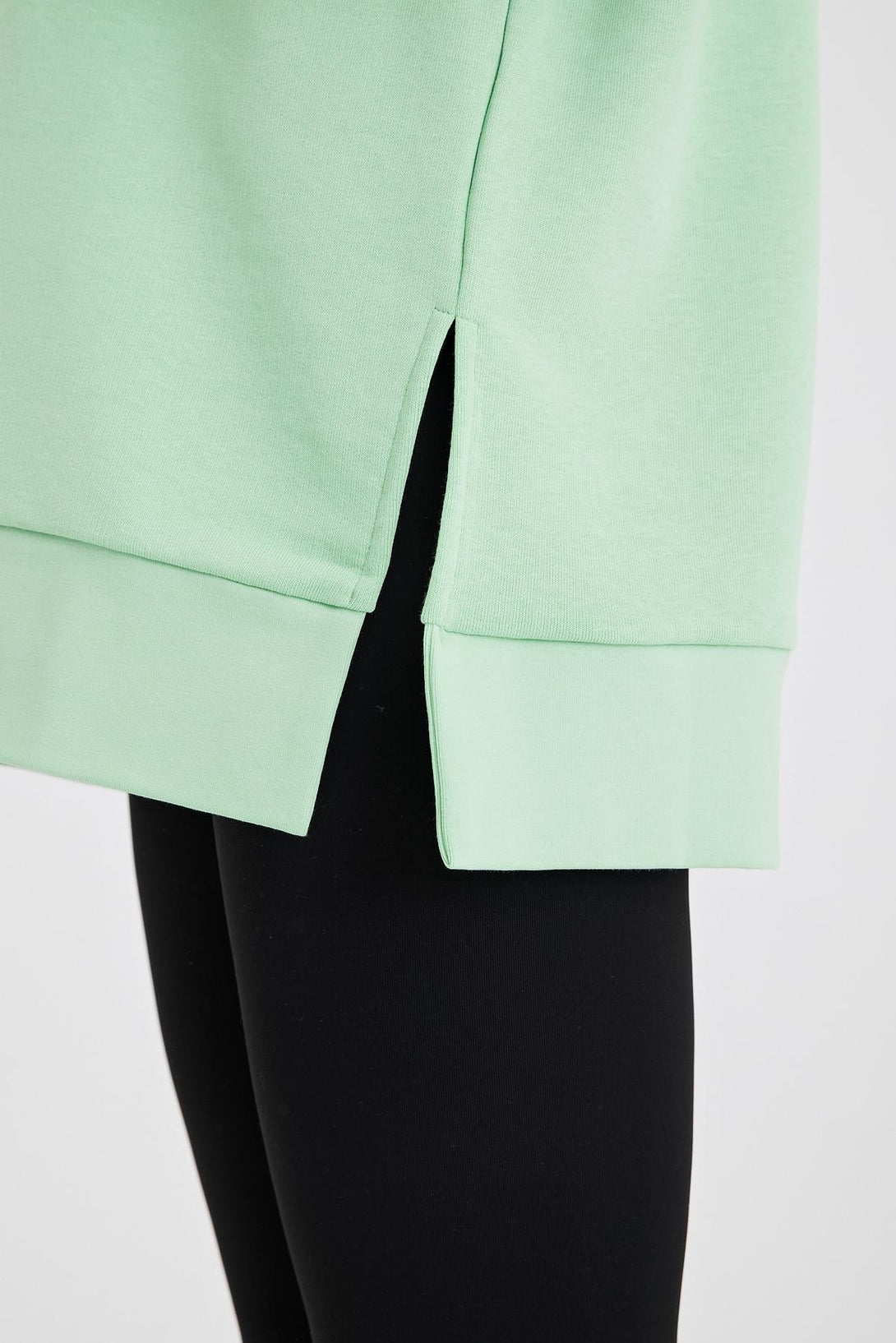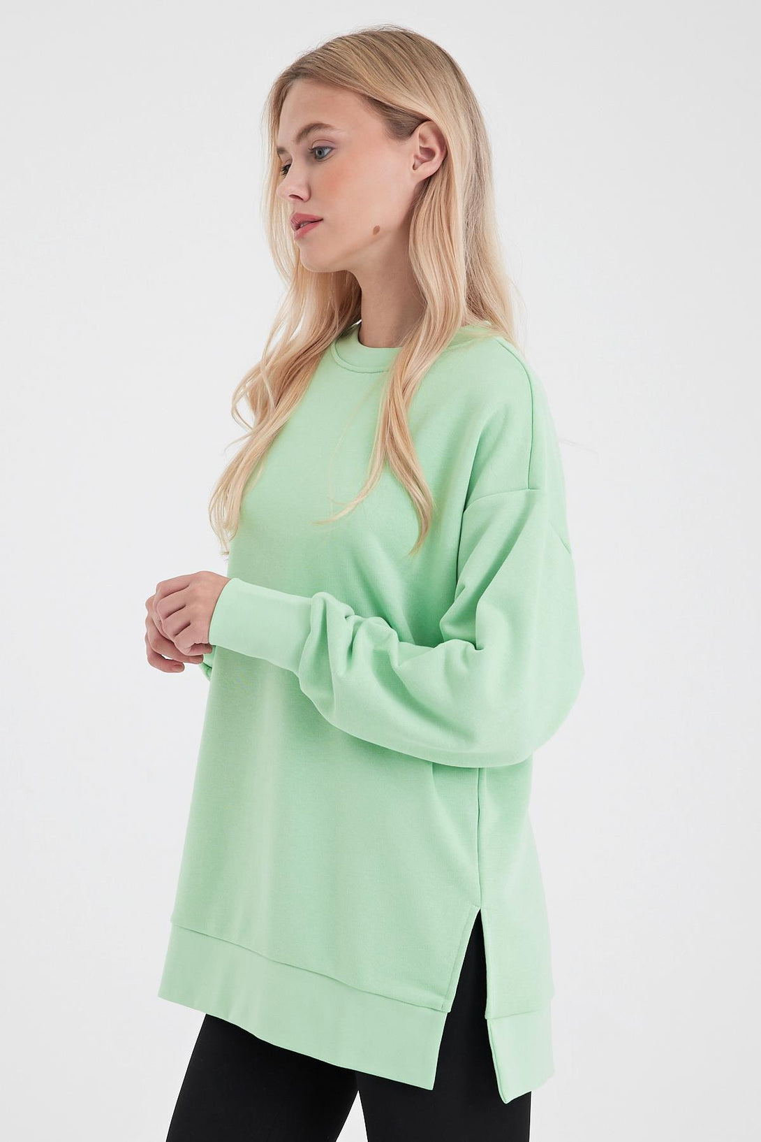 Kadın Bisiklet Yaka Yanı Yırtmaçlı Regular Fit 3 İplik Sweatshirt - Ada Çayı