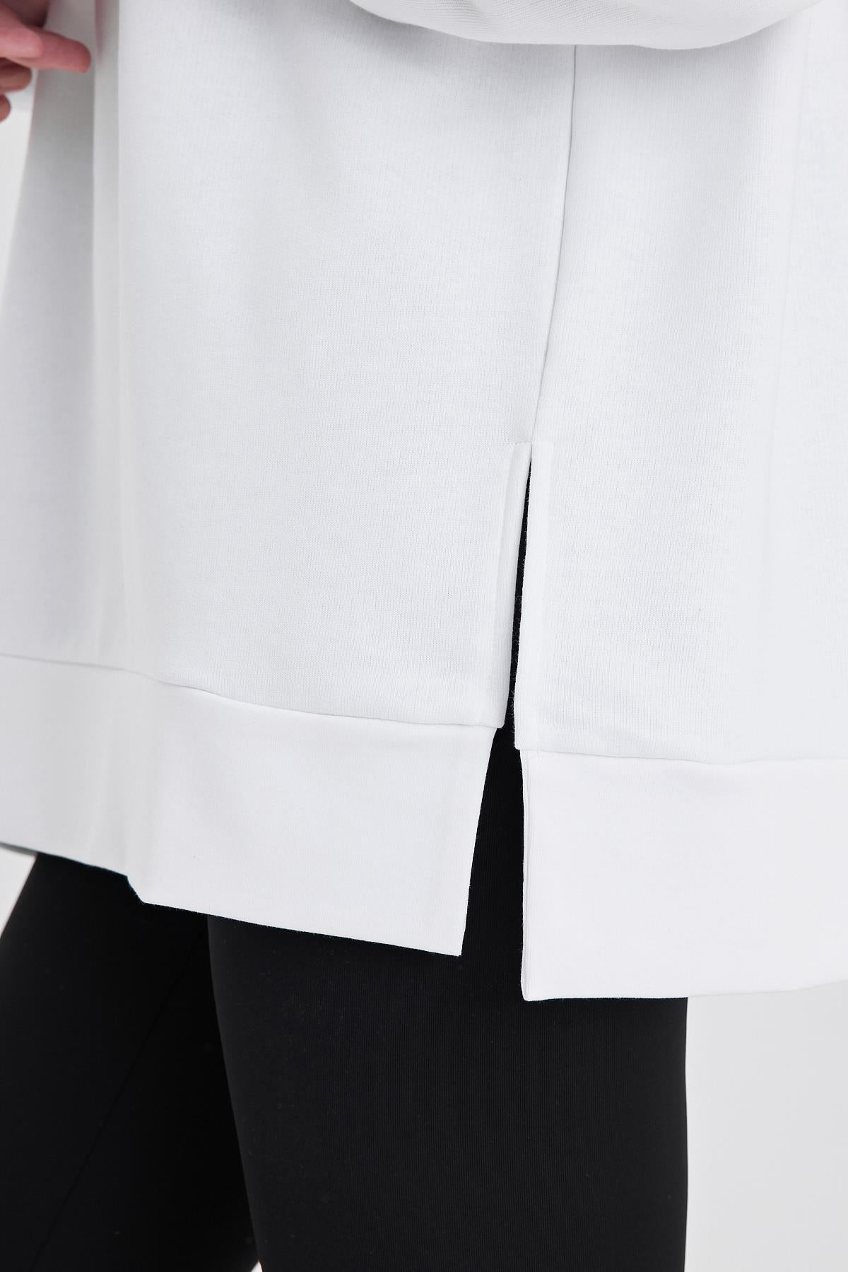 Kadın Bisiklet Yaka Yanı Yırtmaçlı Regular Fit 3 İplik Sweatshirt - Beyaz