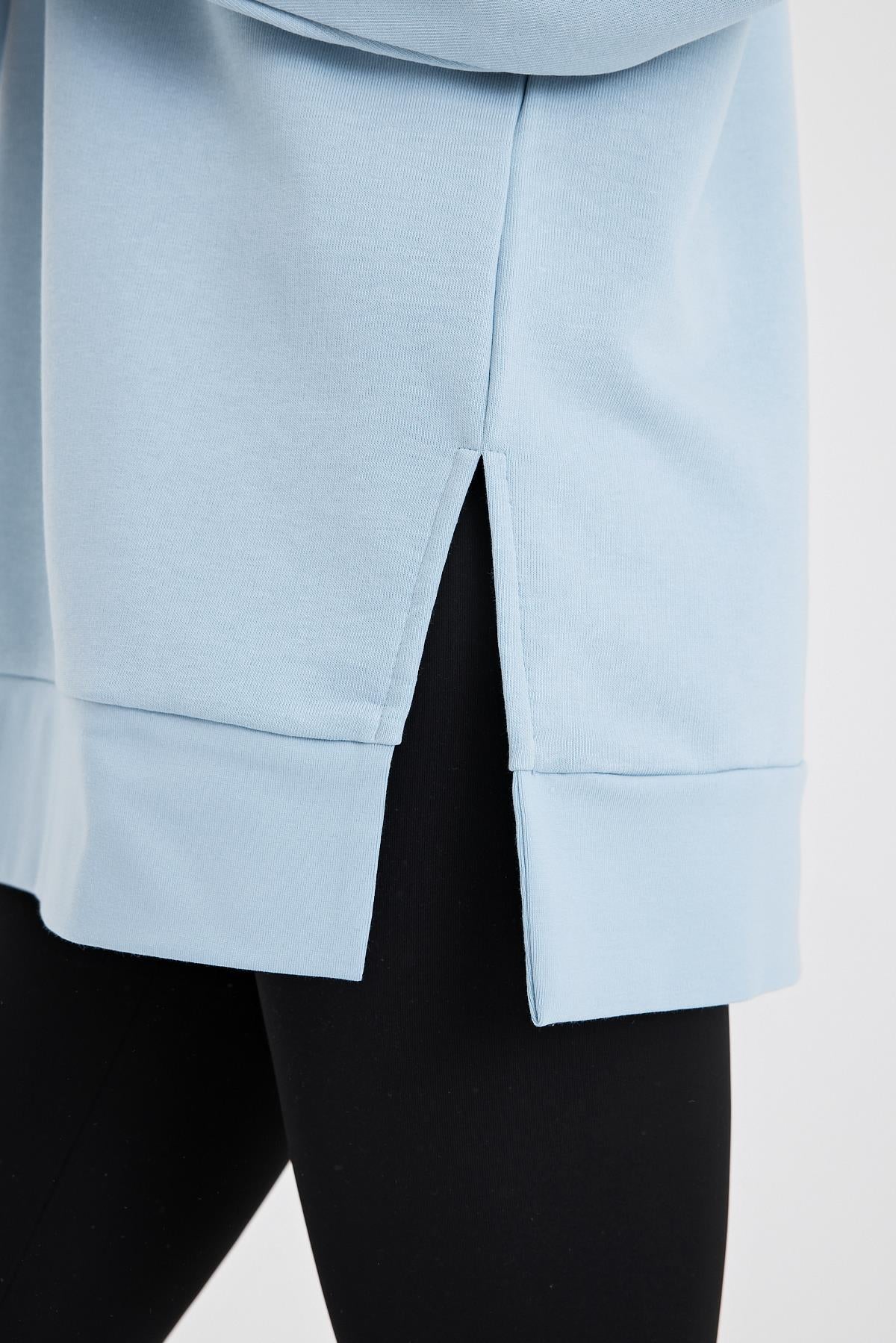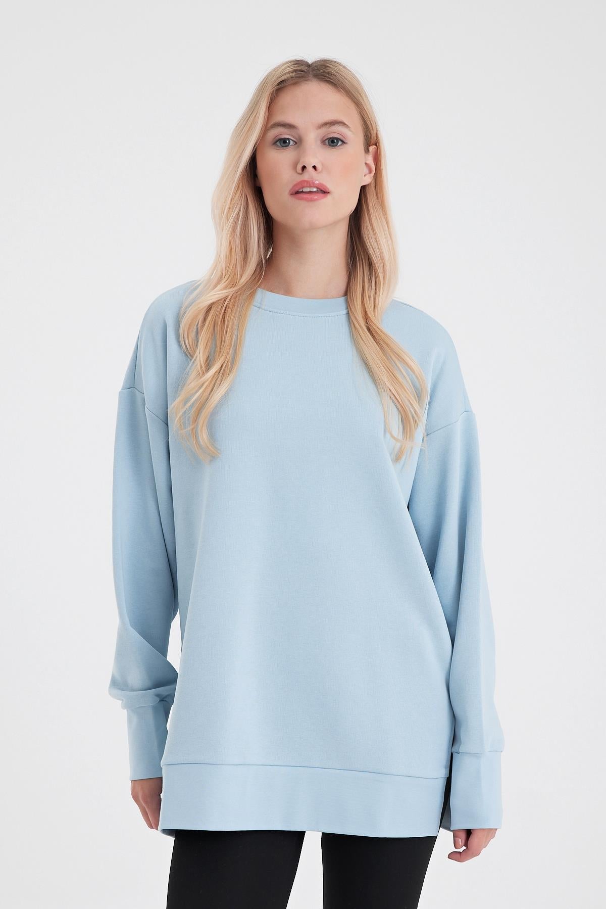 Kadın Bisiklet Yaka Yanı Yırtmaçlı Regular Fit 3 İplik Sweatshirt - Gök Mavisi
