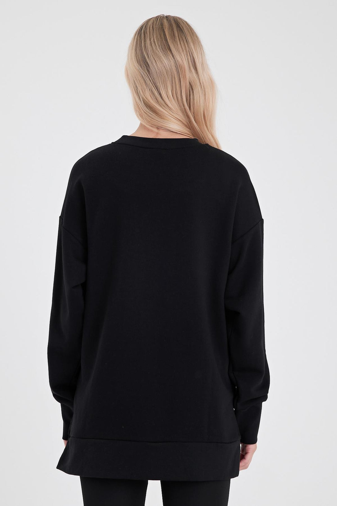 Kadın Bisiklet Yaka Yanı Yırtmaçlı Regular Fit 3 İplik Sweatshirt - Siyah