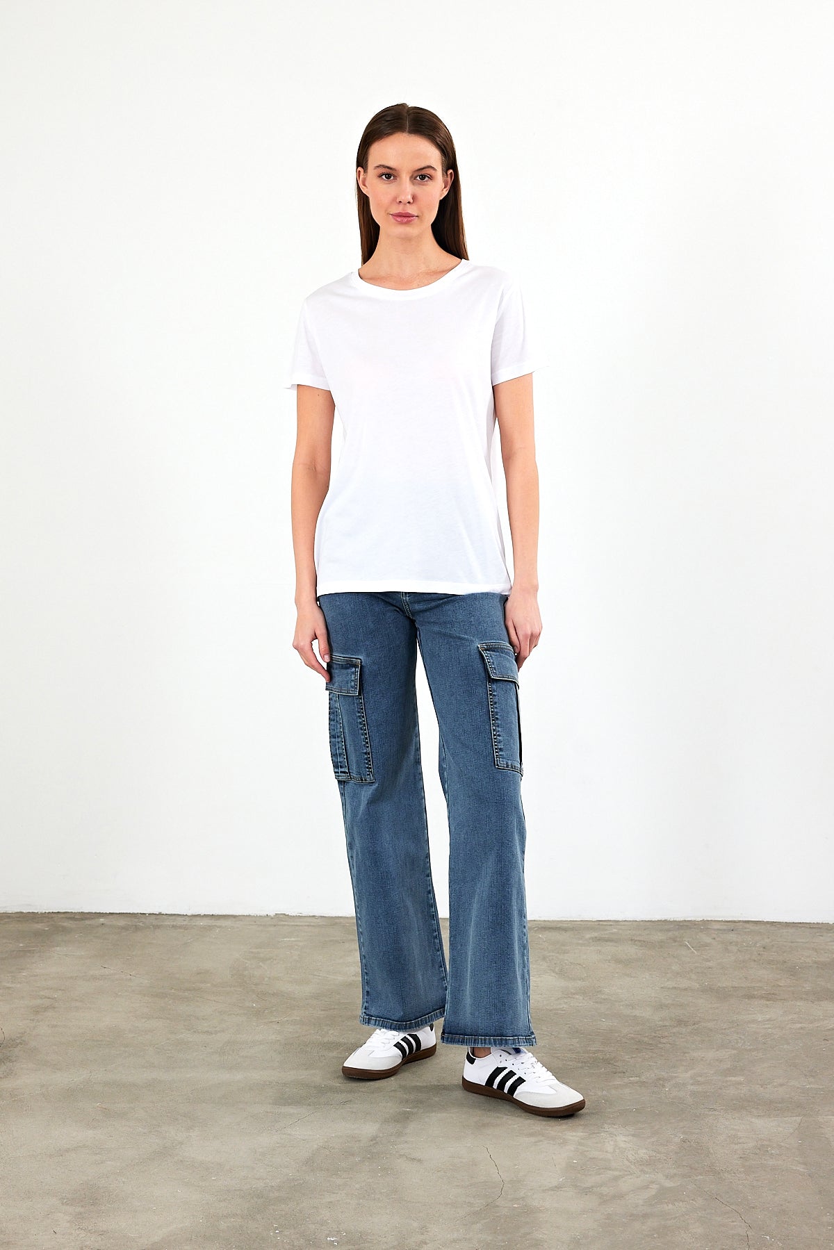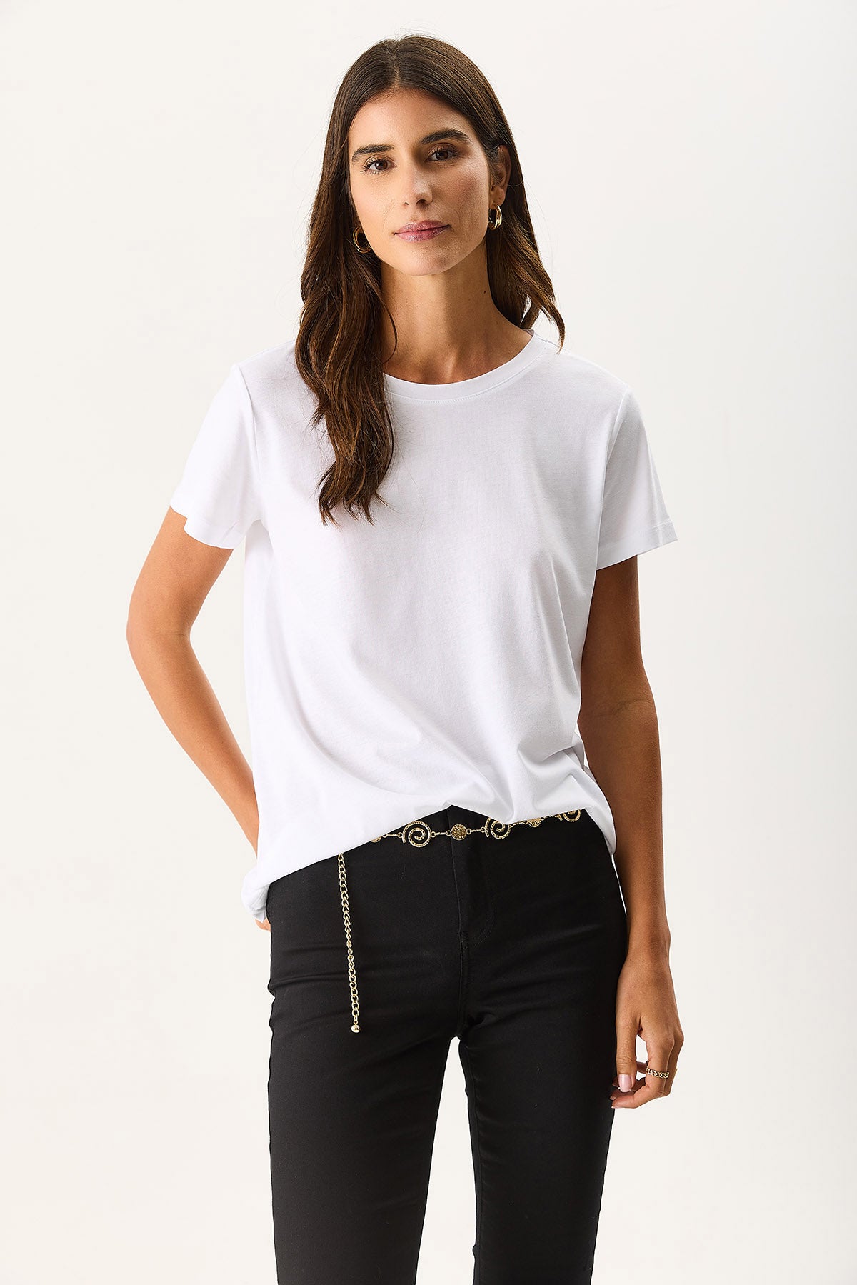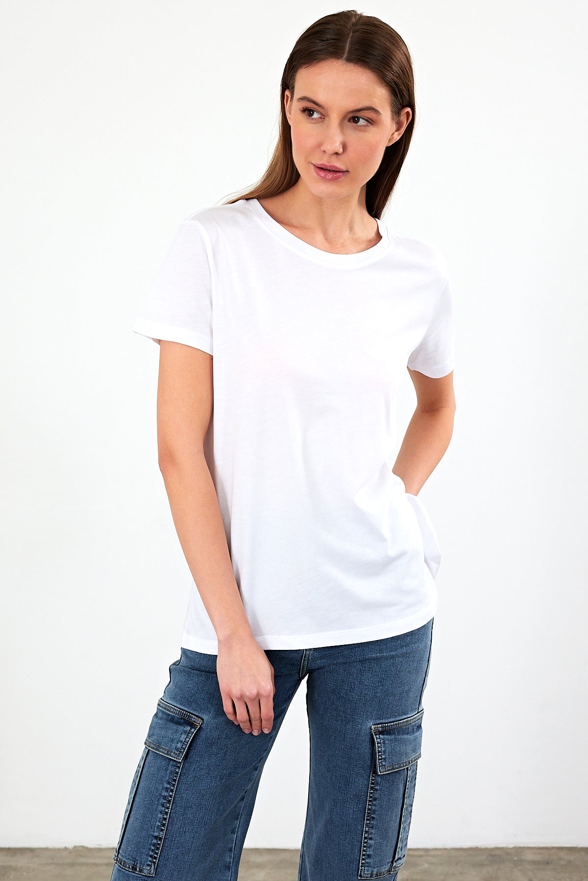 Kadın Boyfriend Bisiklet Yaka Regular Fit Modal Tişört (TENCEL)™ - Beyaz