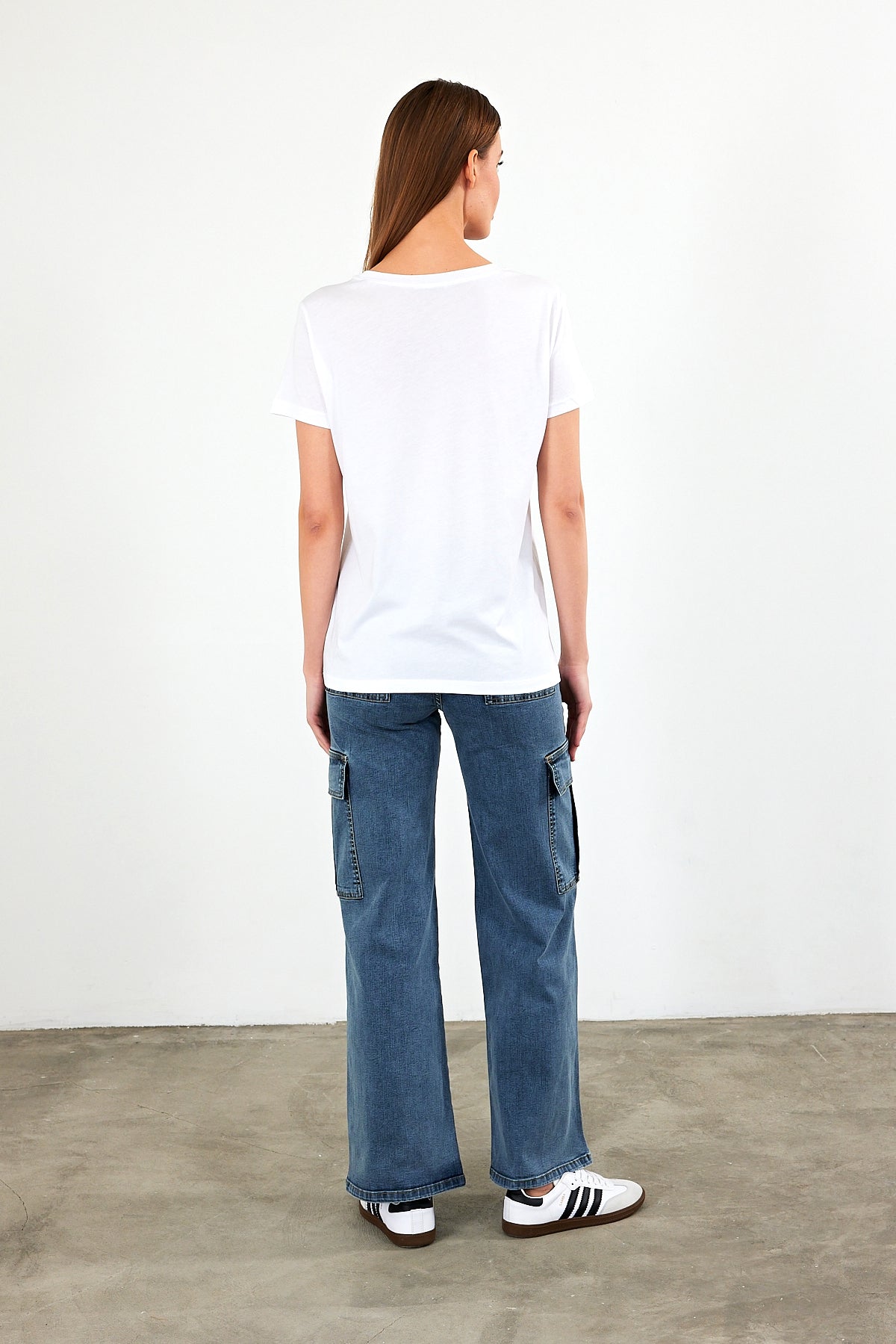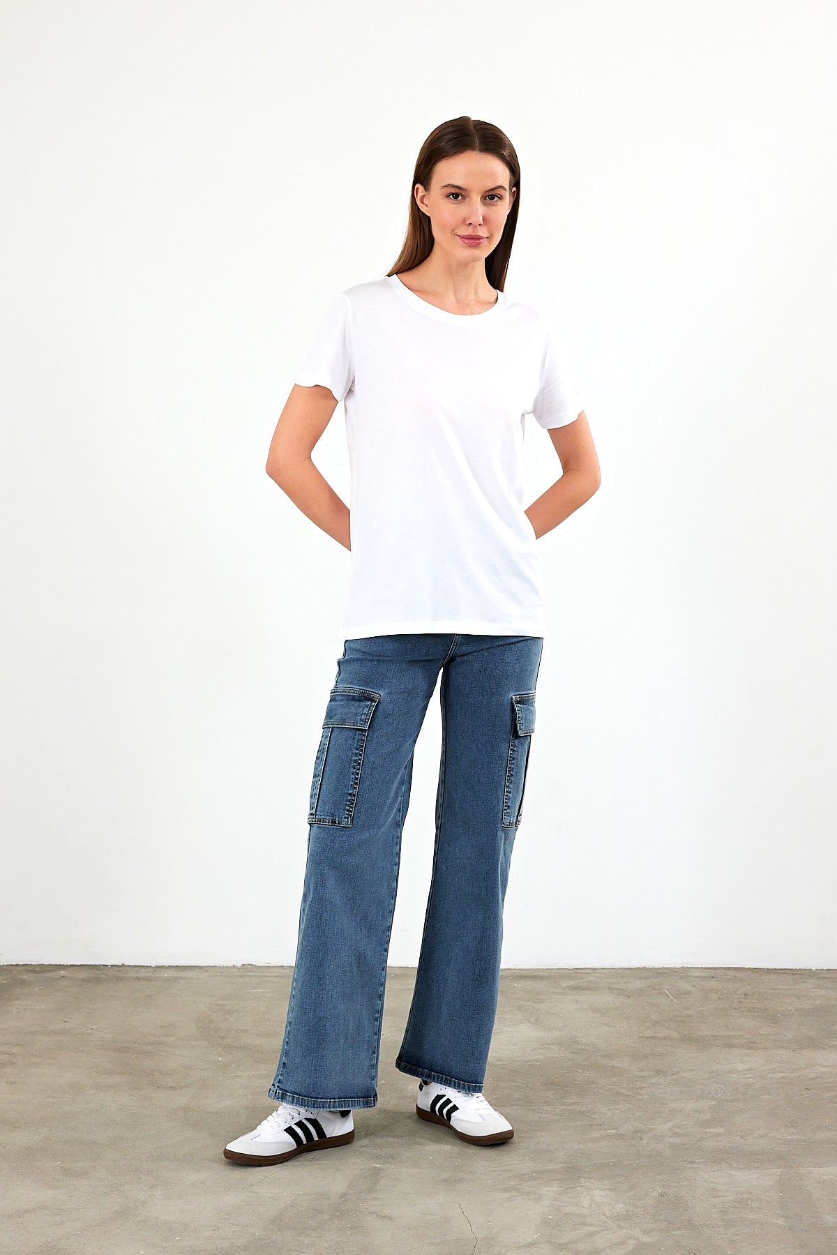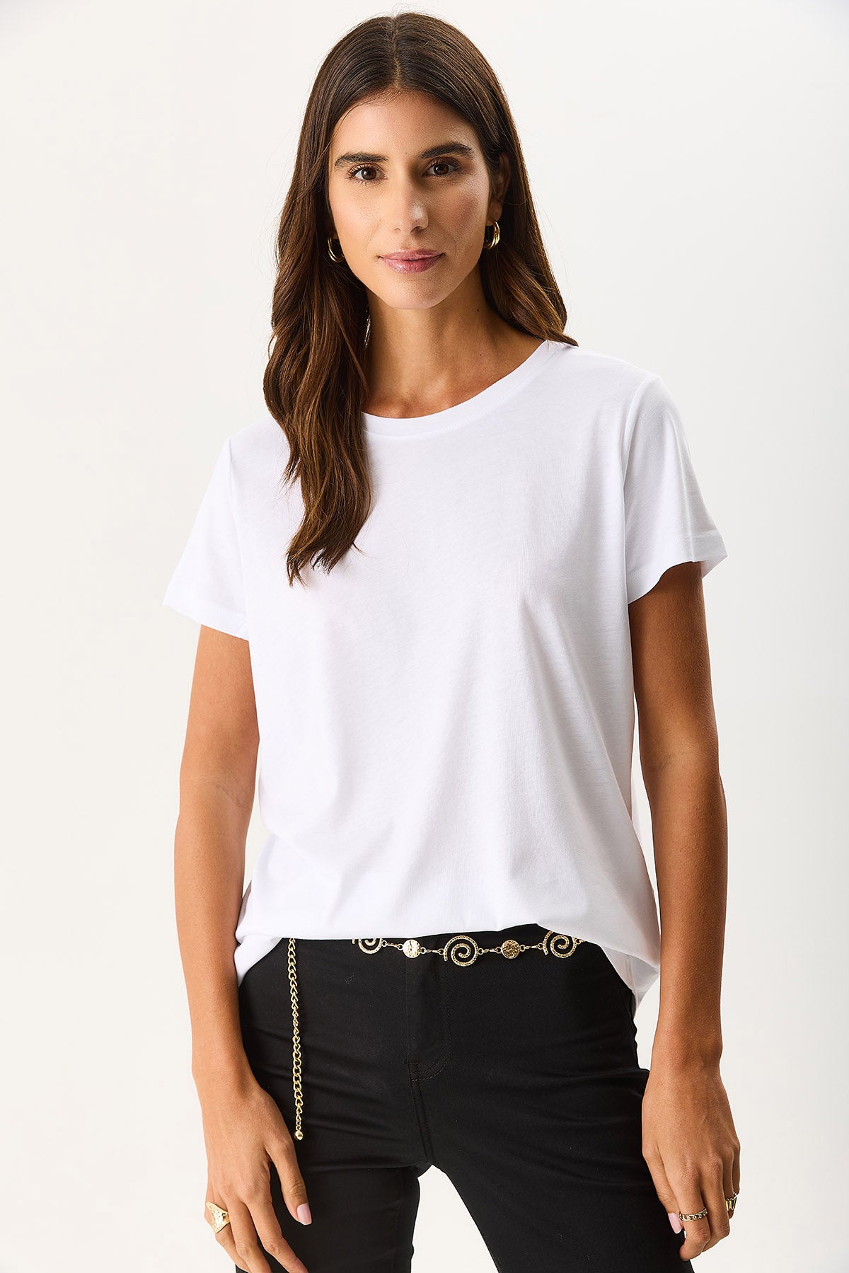 Kadın Boyfriend Bisiklet Yaka Regular Fit Modal Tişört (TENCEL)™ - Beyaz