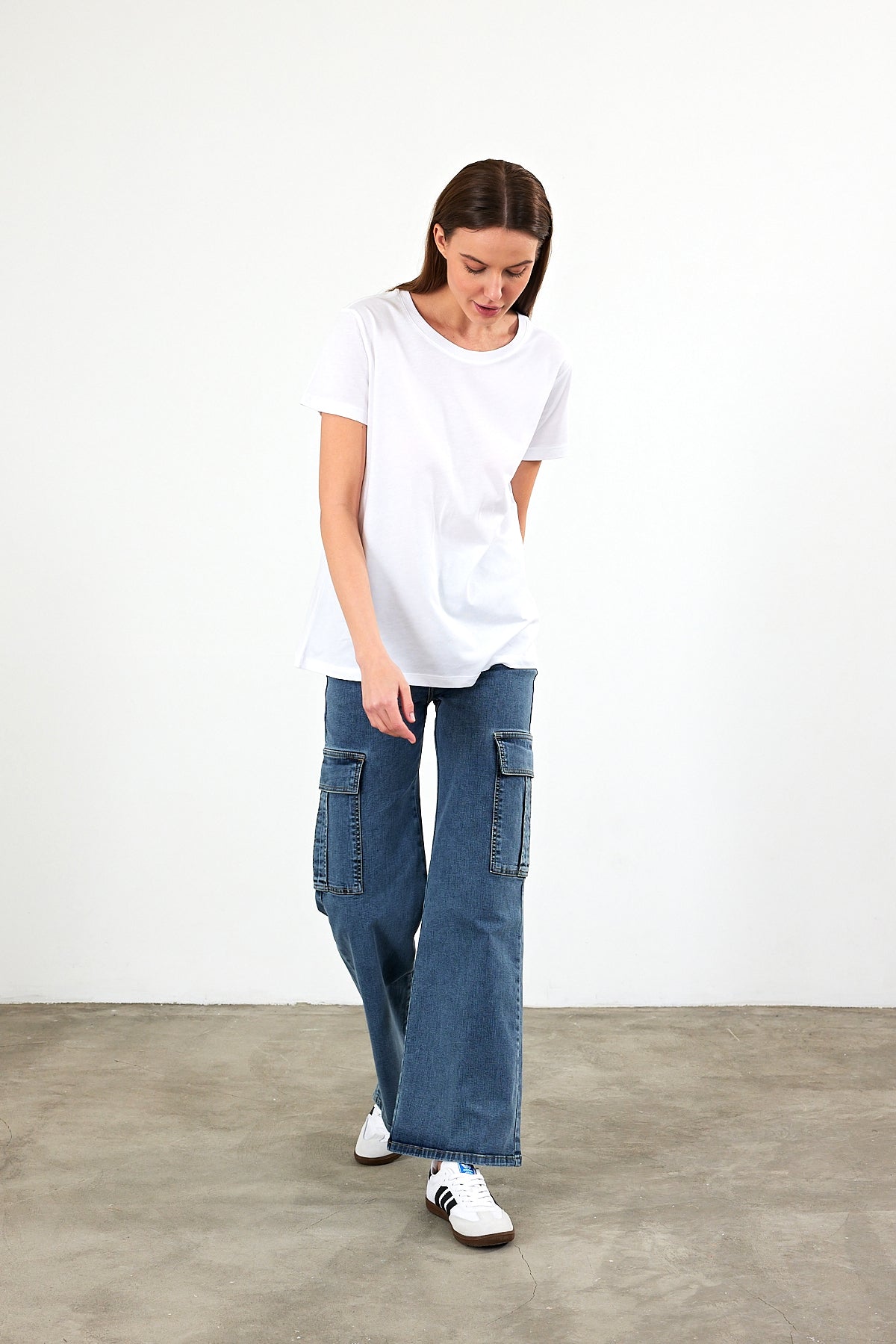 Kadın Boyfriend Bisiklet Yaka Regular Fit Modal Tişört (TENCEL)™ - Beyaz