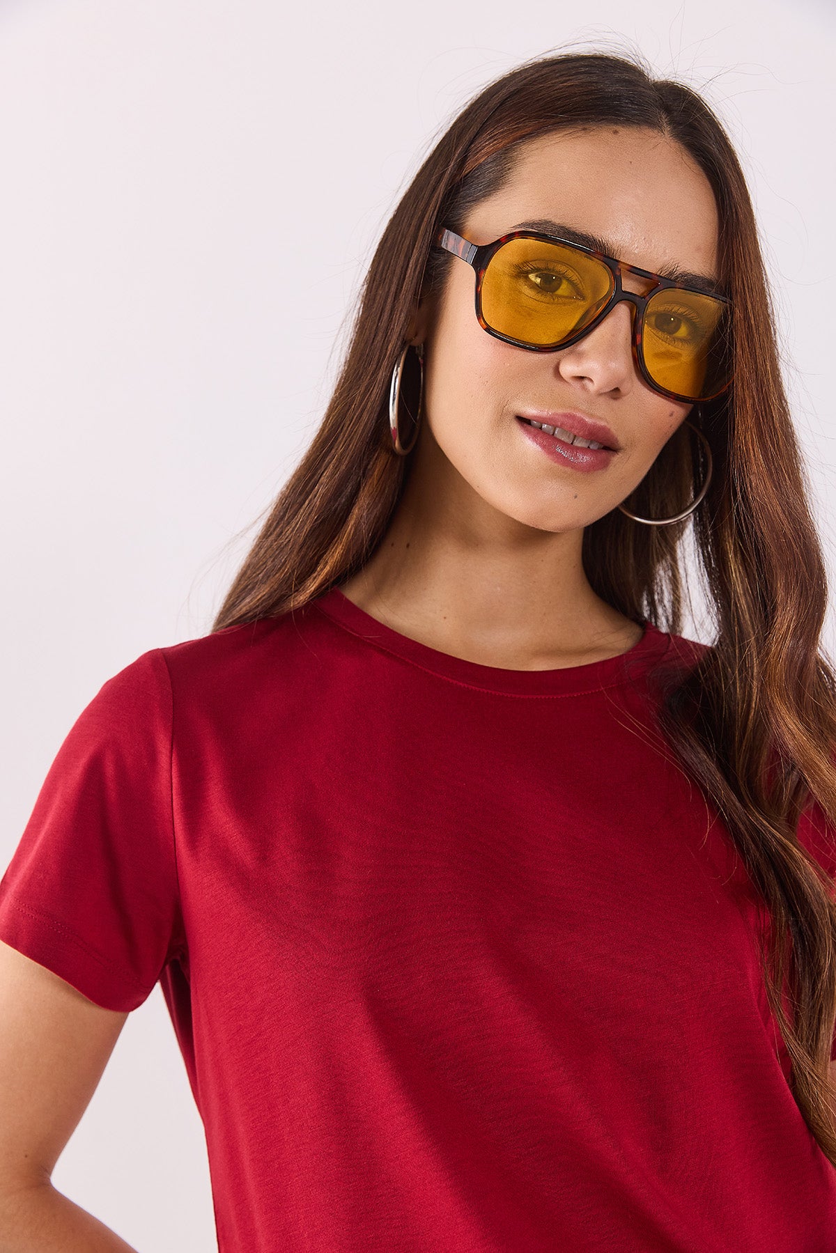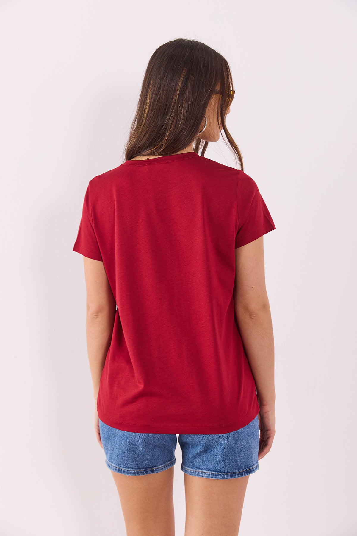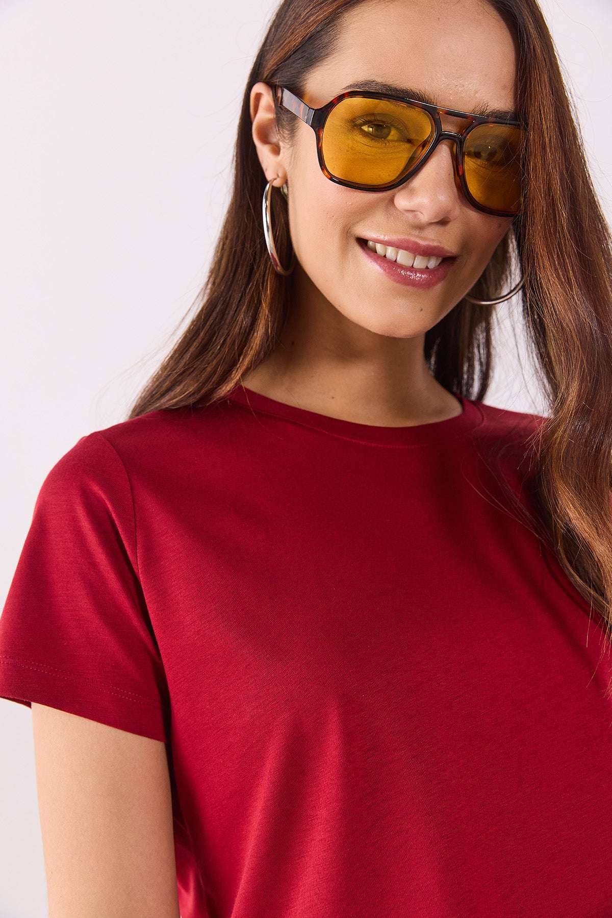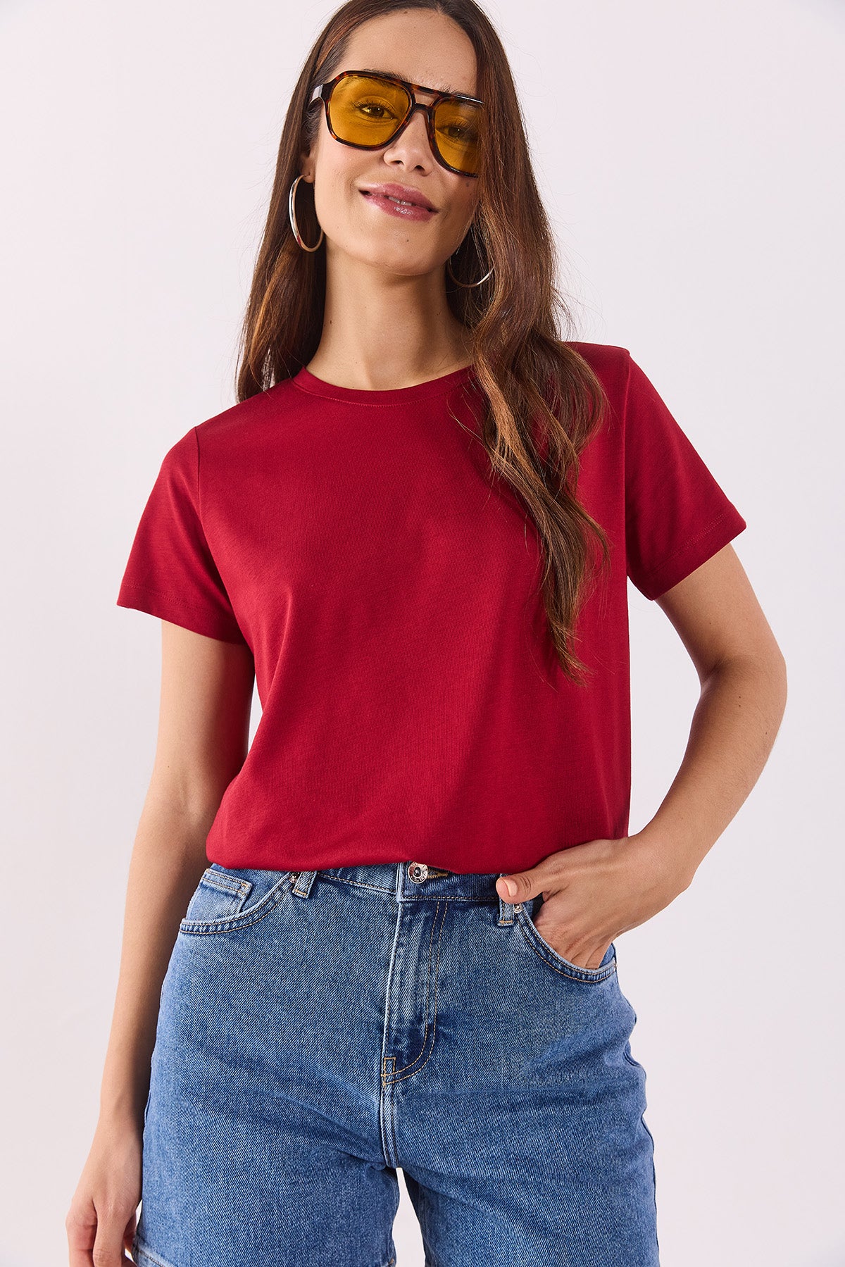 Kadın Boyfriend Bisiklet Yaka Regular Fit Modal Tişört (TENCEL)™ - Bordo