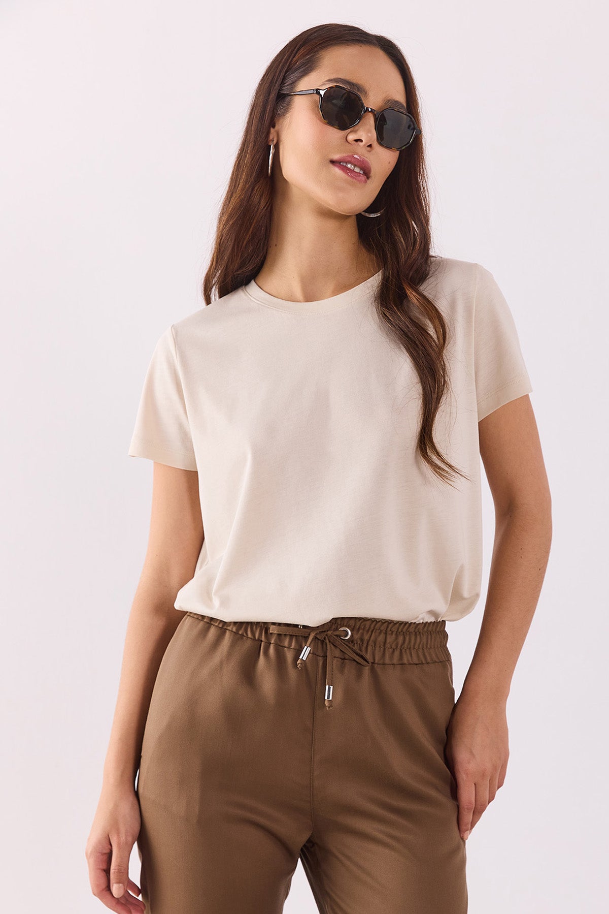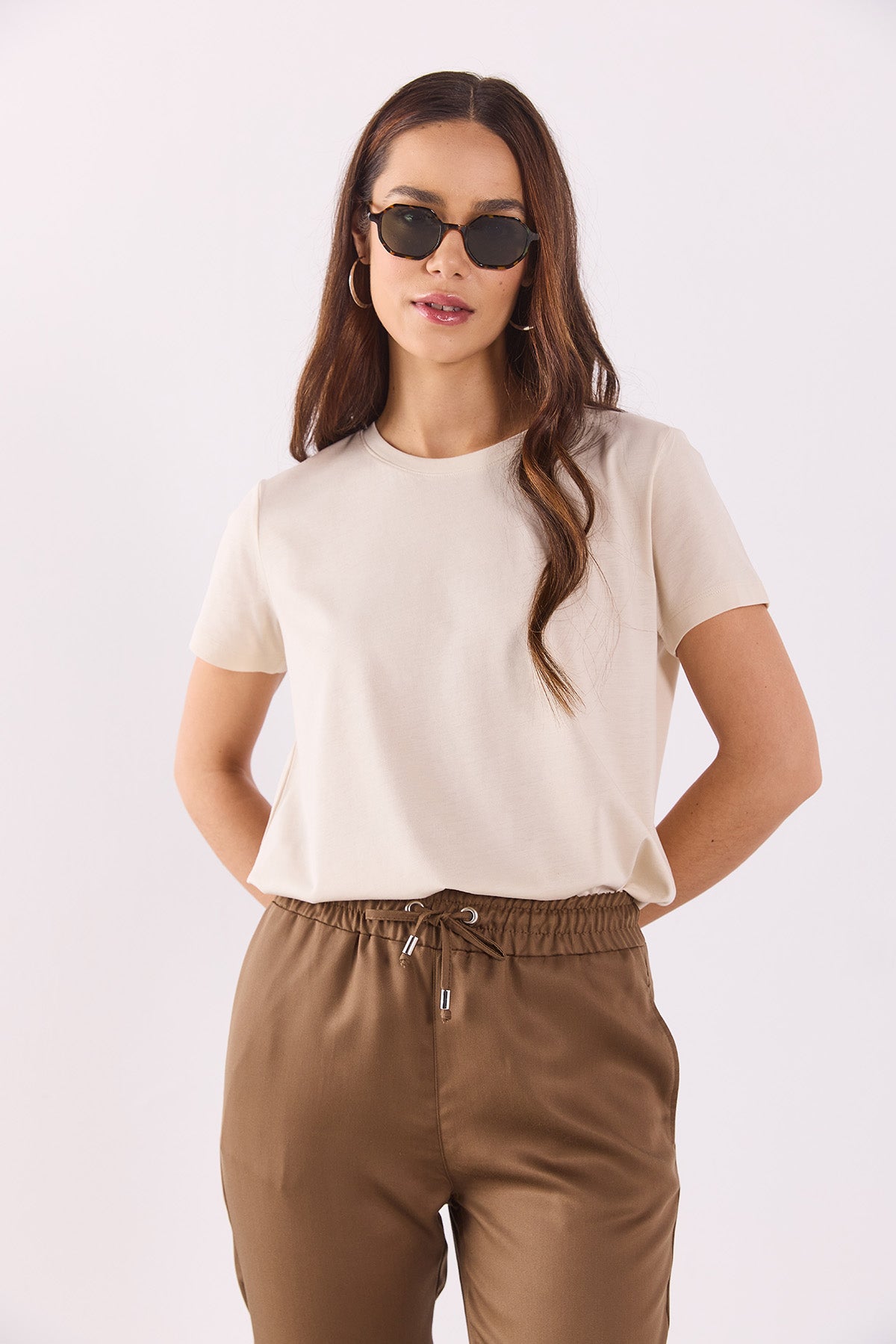 Kadın Boyfriend Bisiklet Yaka Regular Fit Modal Tişört (TENCEL)™ - Kum