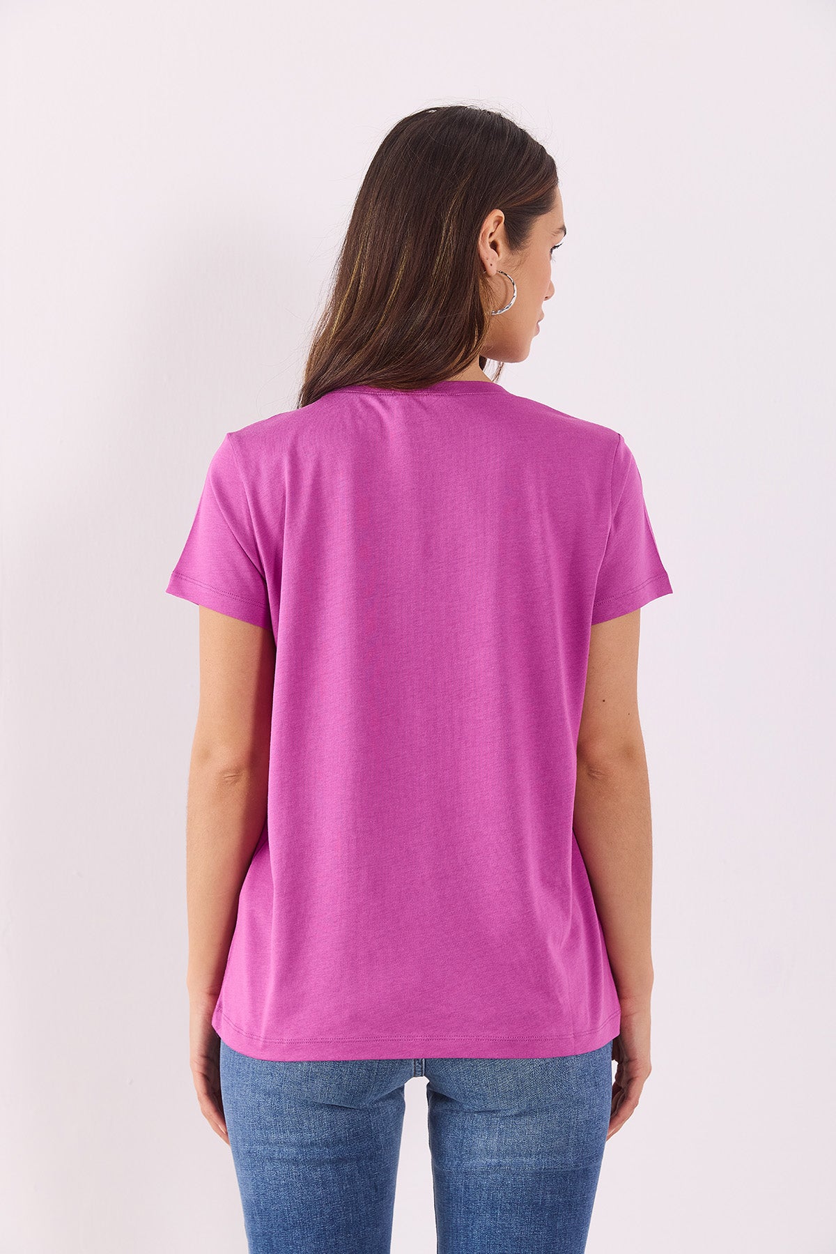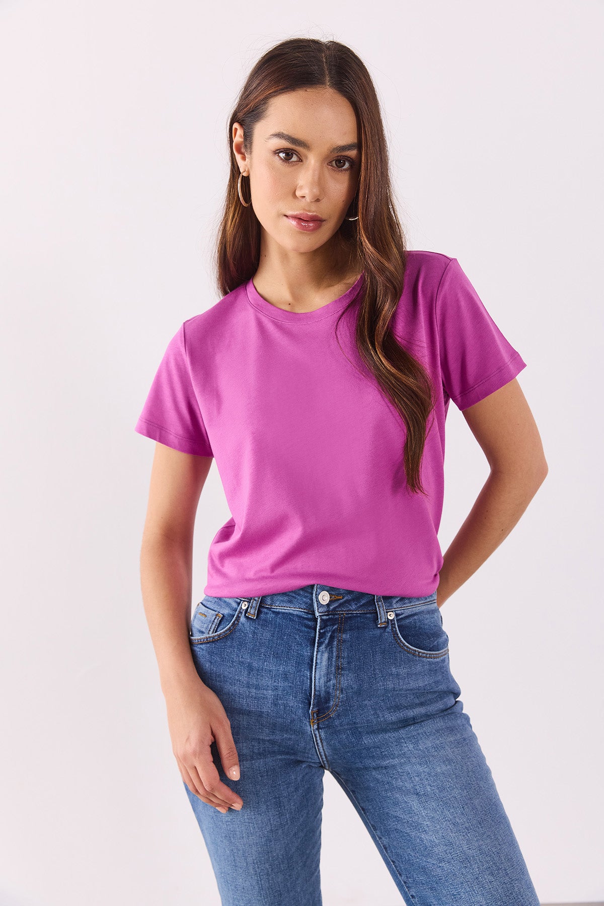 Kadın Boyfriend Bisiklet Yaka Regular Fit Modal Tişört (TENCEL)™ - LEYLAK