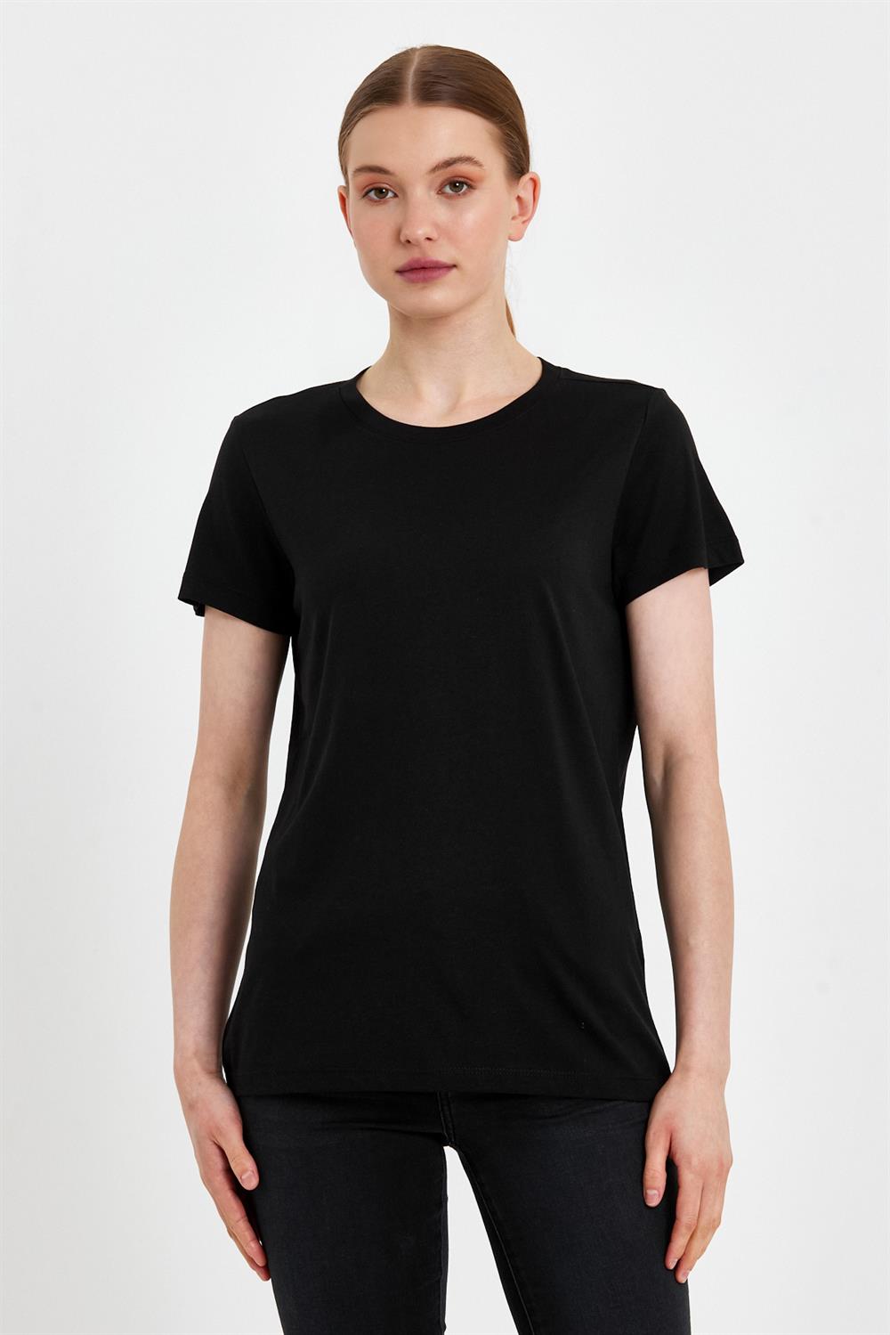 Kadın Boyfriend Bisiklet Yaka Regular Fit Modal Tişört (TENCEL)™ - Siyah