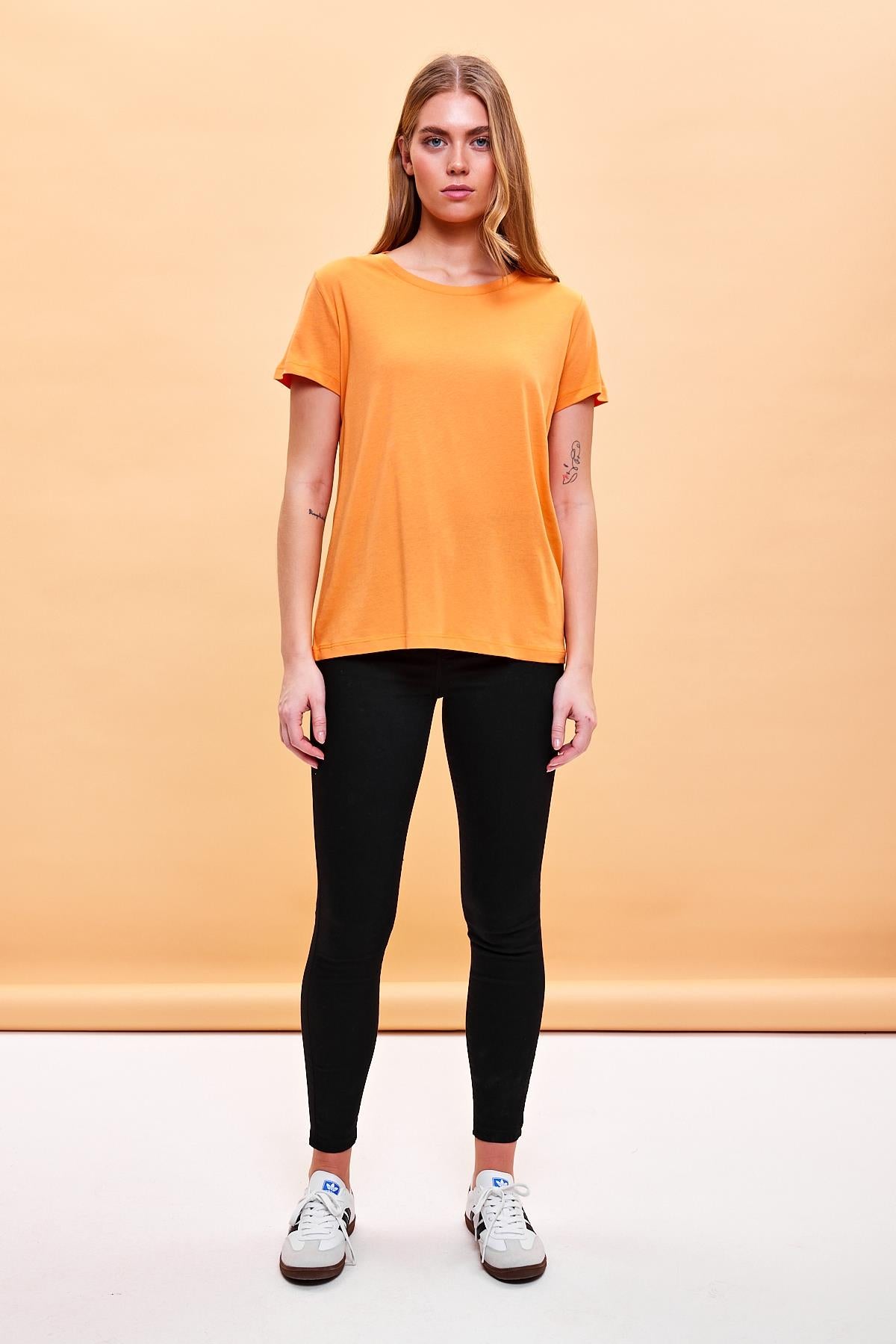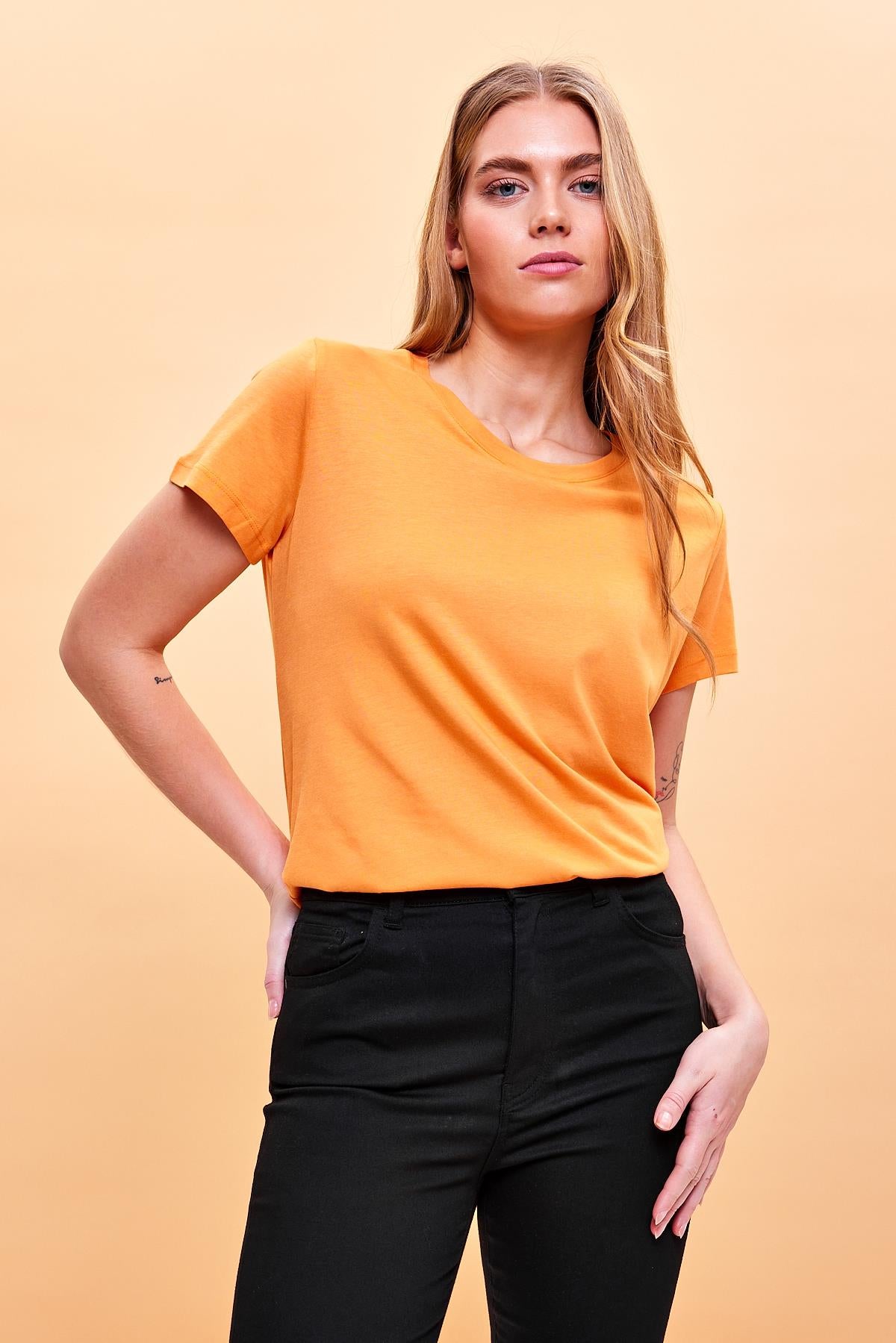 Kadın Boyfriend Bisiklet Yaka Regular Fit Modal Tişört (TENCEL)™ - TURUNCU