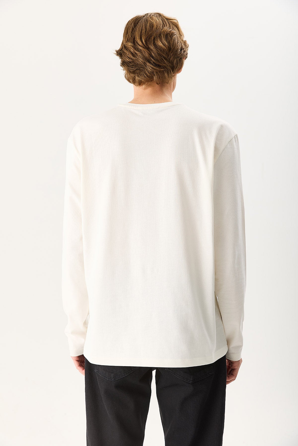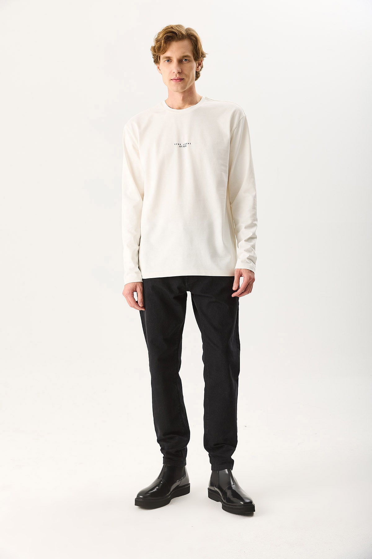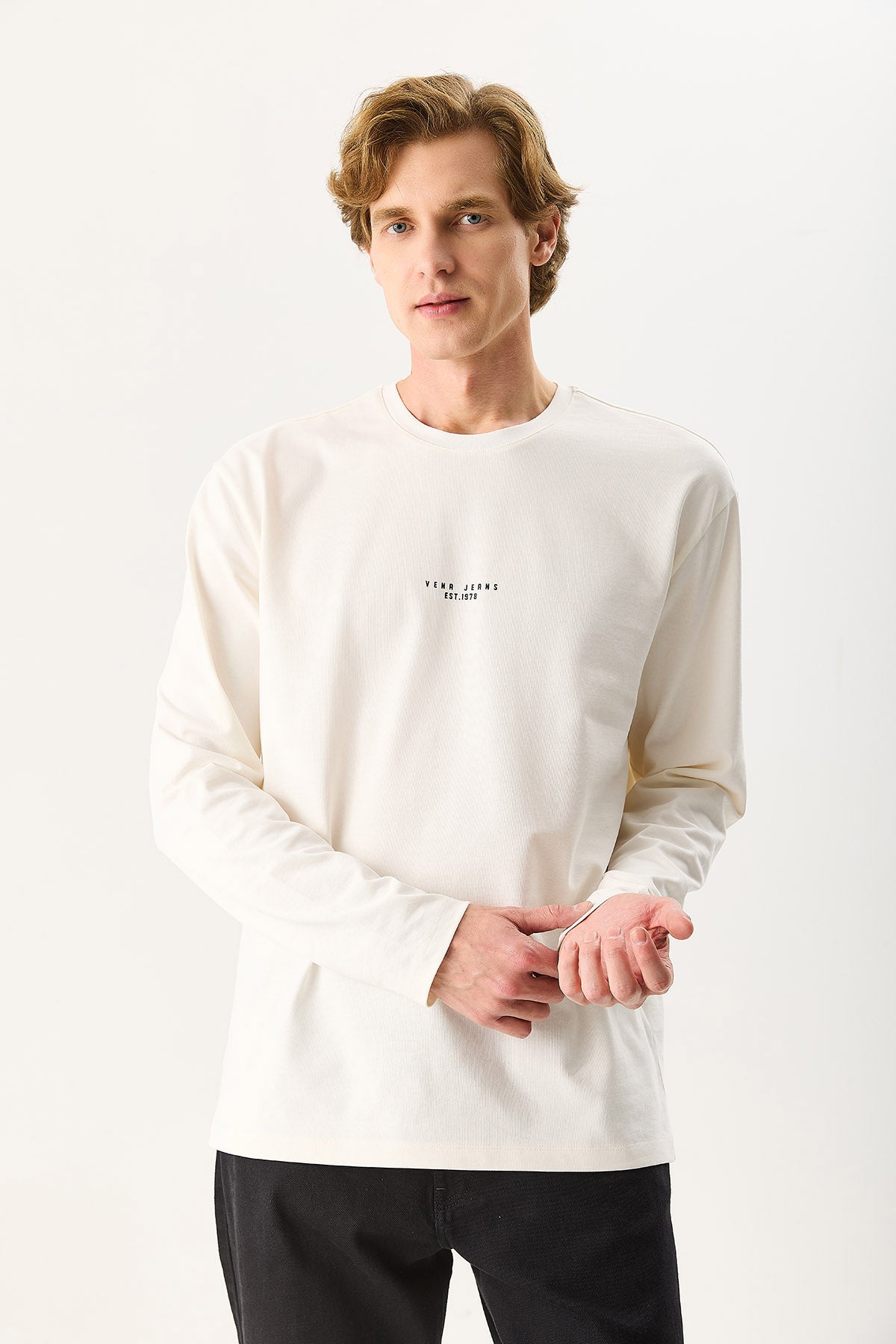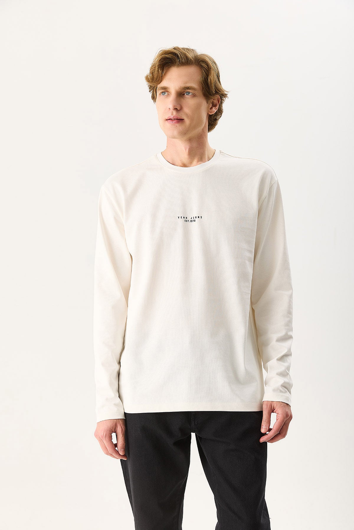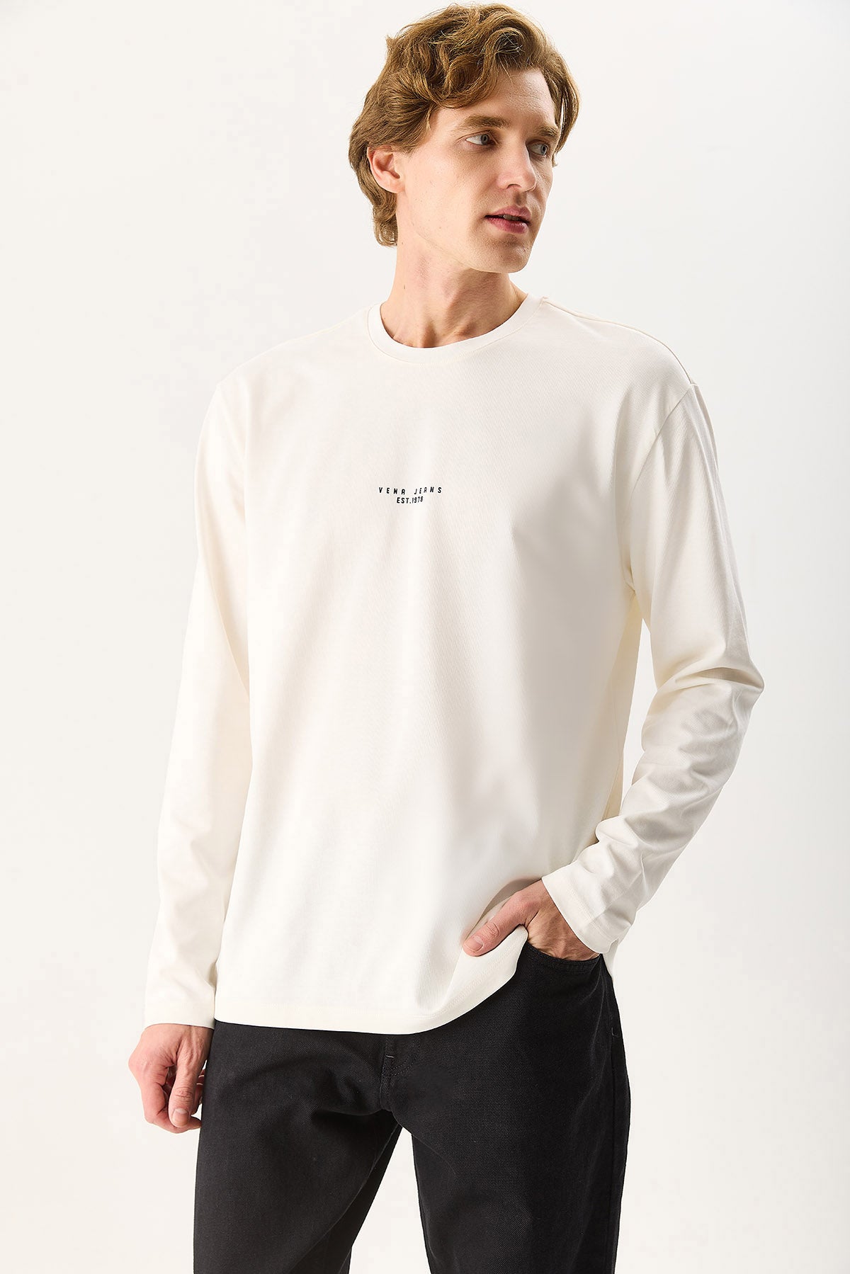 Erkek Brand Baskılı Bisiklet Yaka Regular Fit Tişört %100 Pamuk - Fildişi