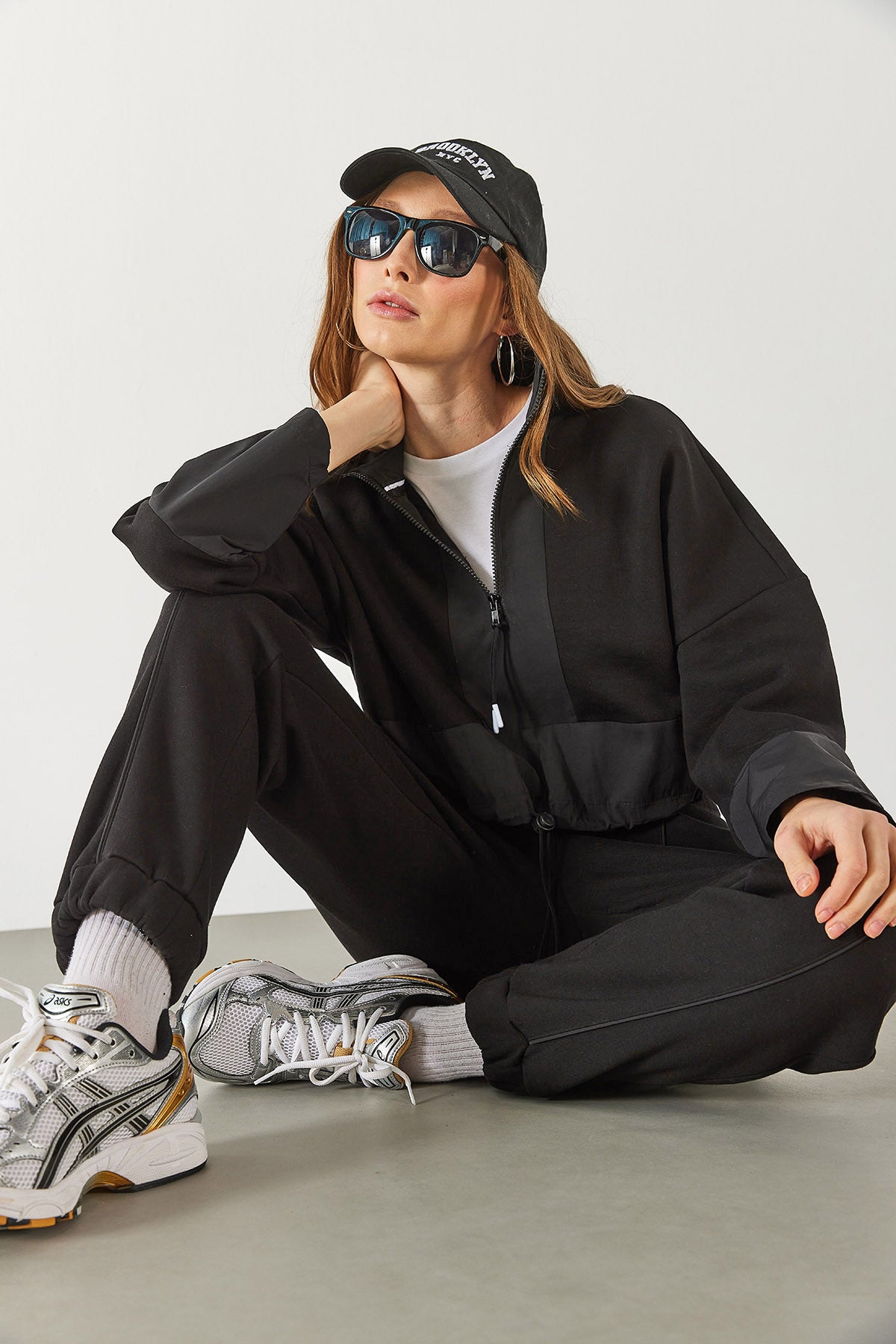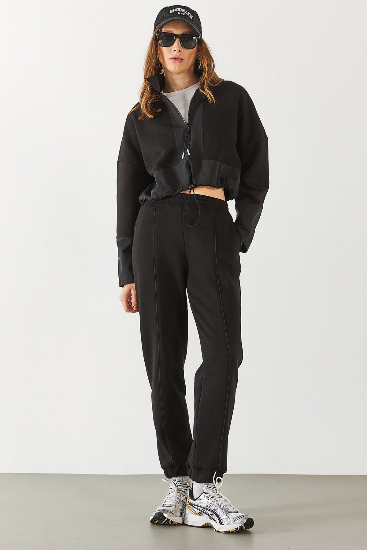 Kadın Brenna Paçası Lastikli Şardonlu Eşofman Altı - Siyah