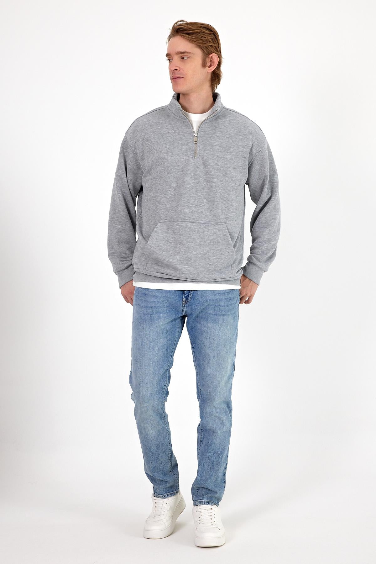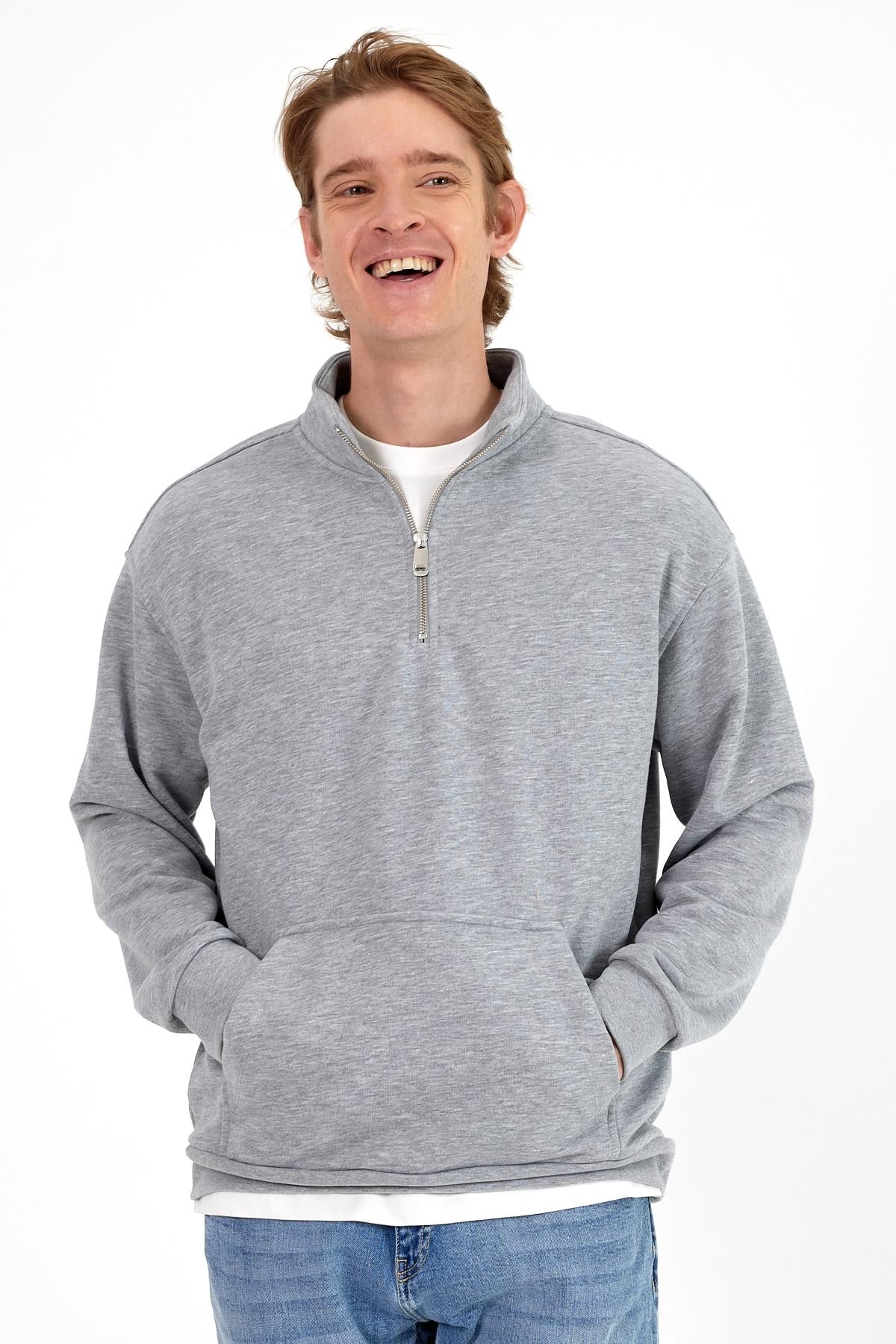 Erkek Bruce Dik Yaka Yarım Fermuarlı Sweatshirt - Gri Melanj