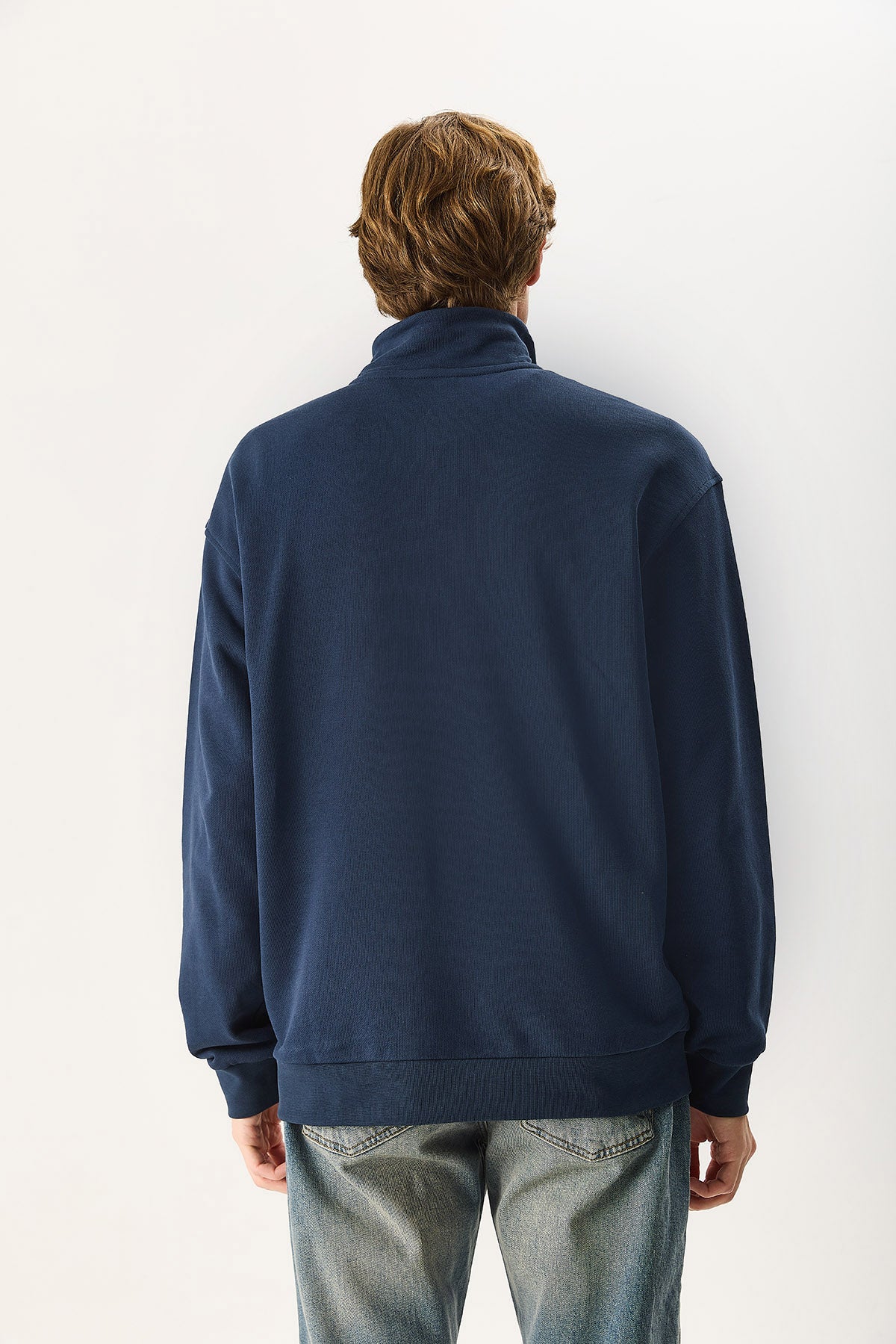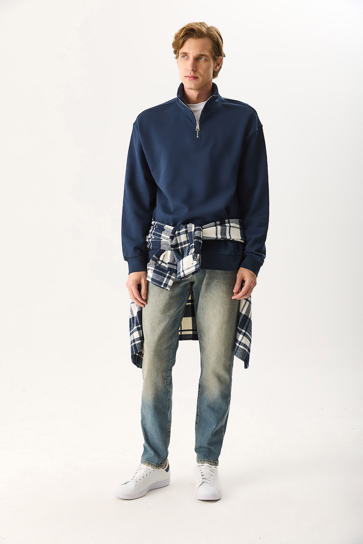 Erkek Bruce Dik Yaka Yarım Fermuarlı Sweatshirt %100 Pamuk - Lacivert