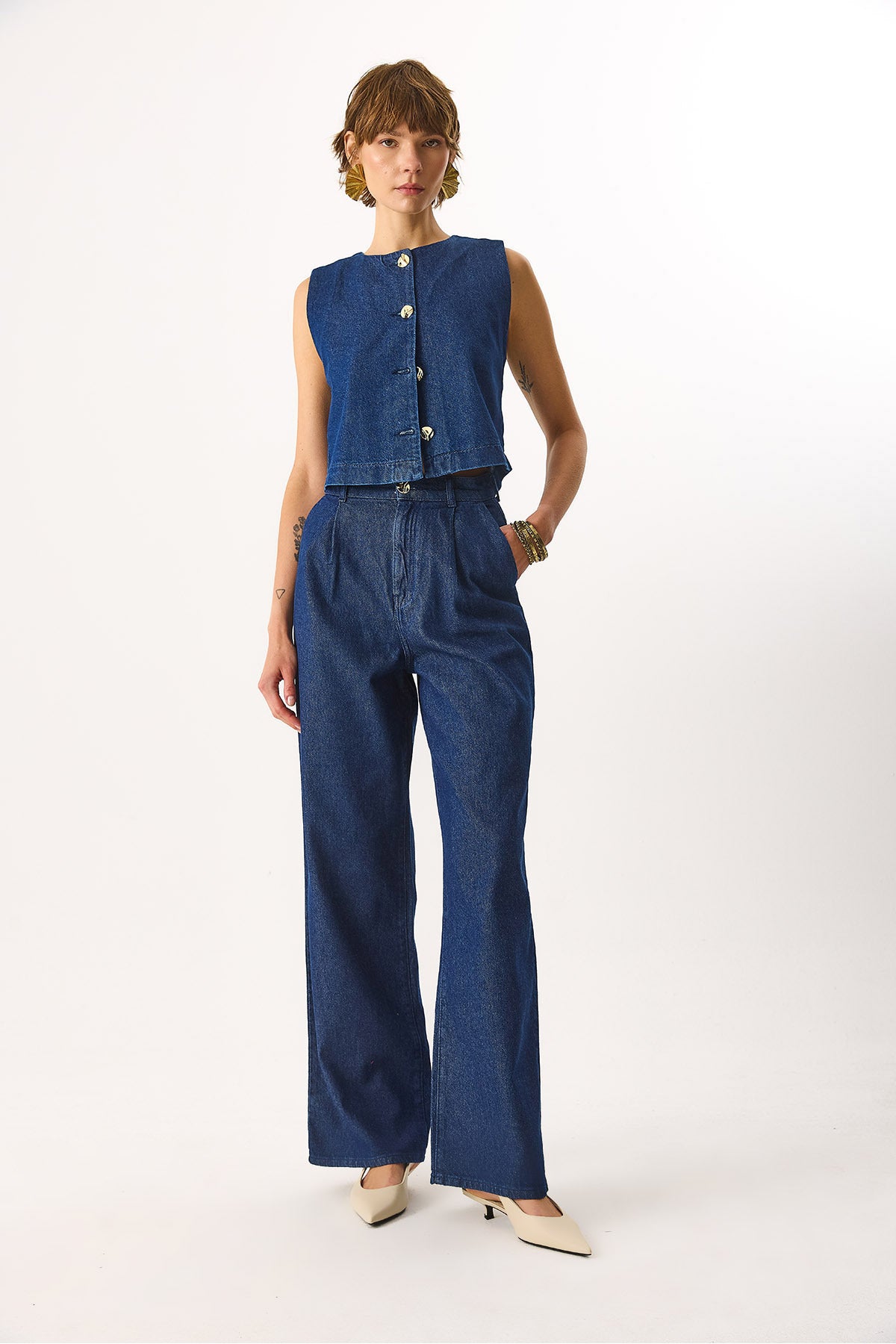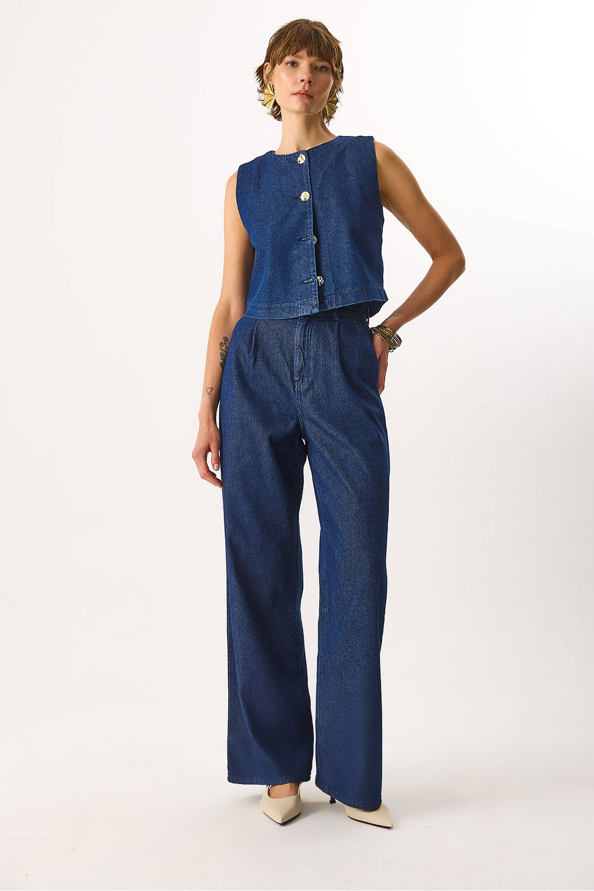 Günlük şıklığını rahatlıkla yakalayacağın Wanda Wide Leg %100 Pamuk Jean Pantolon, yumuşak pamuklu dokusuyla konforludur. Hem ofiste hem günlük hayatta rahatlıkla tercih edebileceğin şık bir parça!