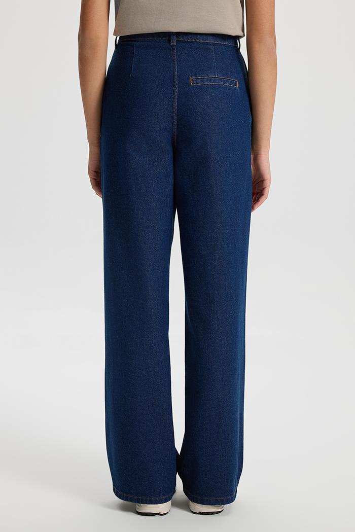 Kadın Wide Leg Dark Blue Jean Pantolon