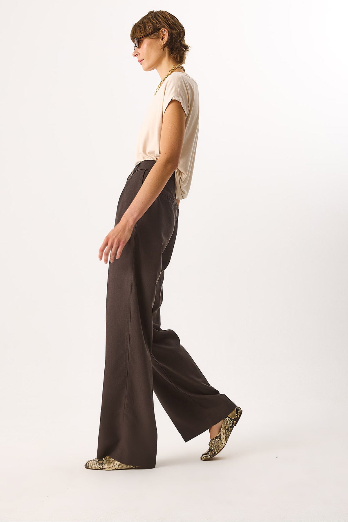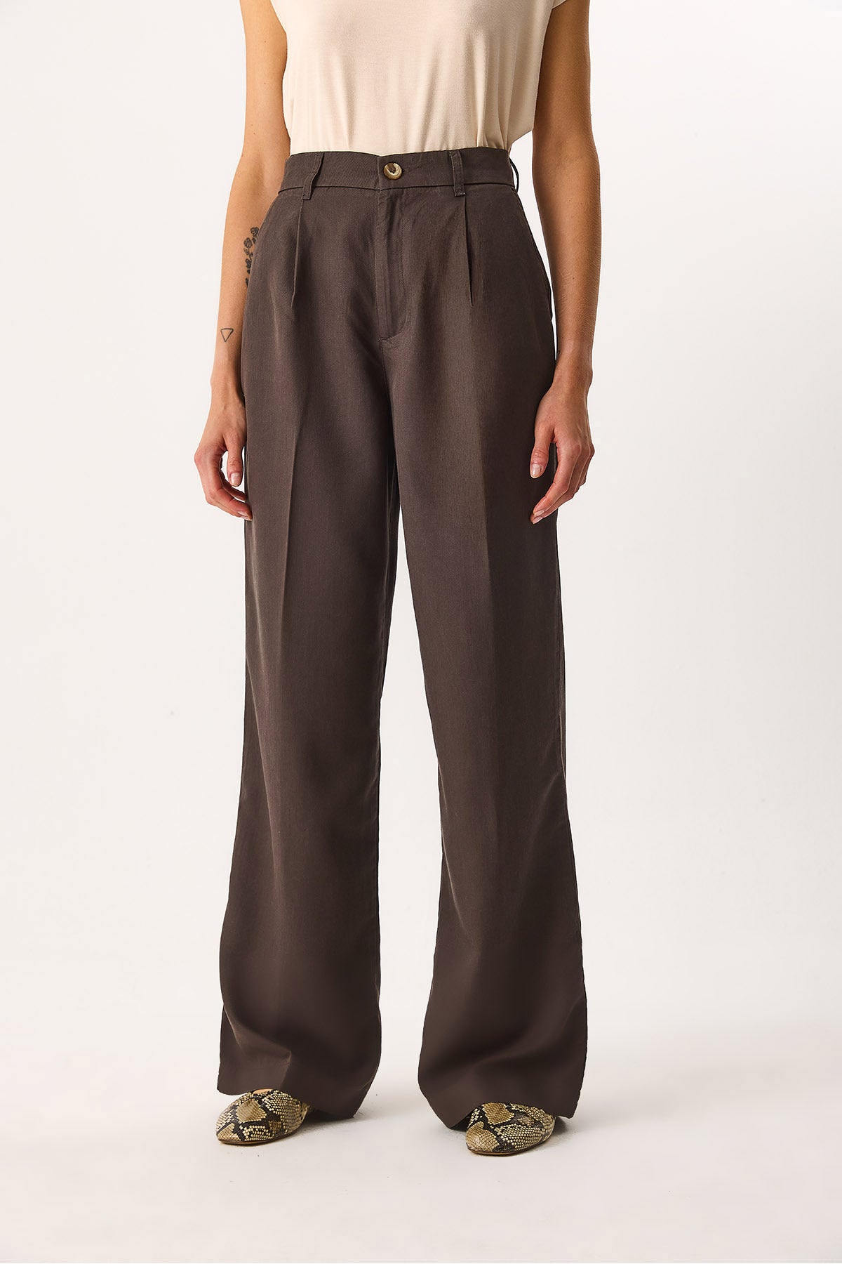 Kadın Chloe Wide Leg Palazzo Pantolon %100 Lyocell (Tencel™) - Kahverengi