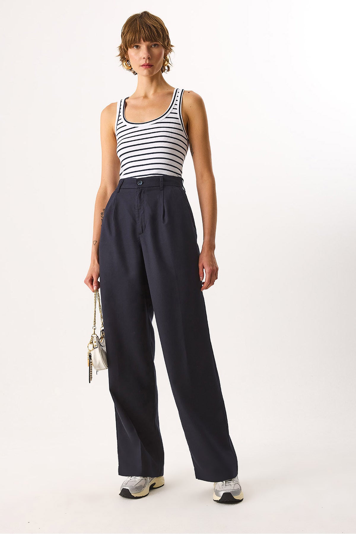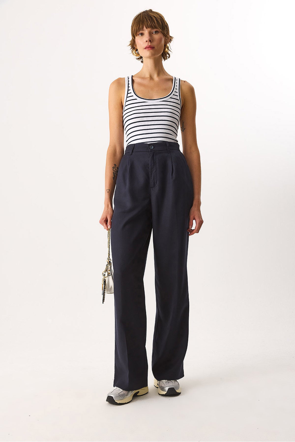 Kadın Chloe Wide Leg Palazzo Pantolon %100 Lyocell (Tencel™) - Lacivert