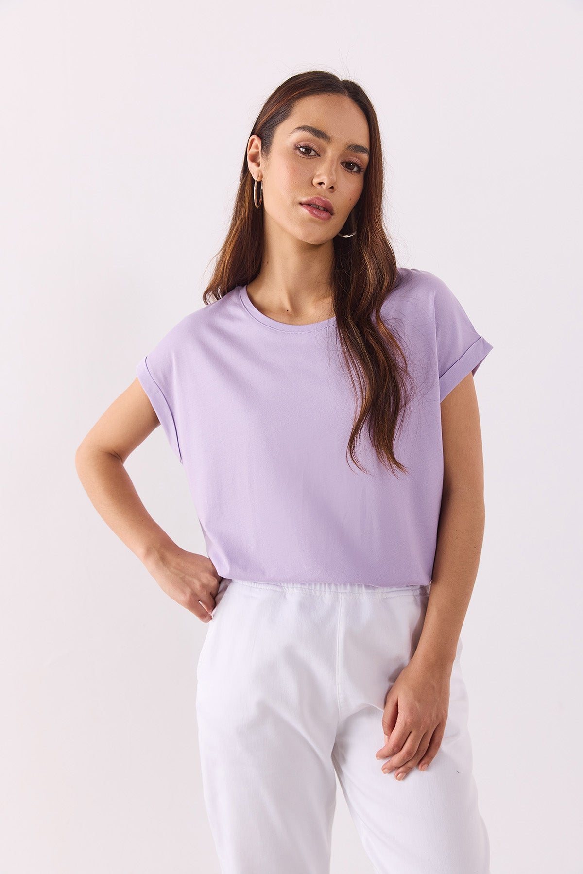 Kadın Cindy Bisiklet Yaka Regular Fit Basic Modal Tişört (TENCEL)™ - Lila