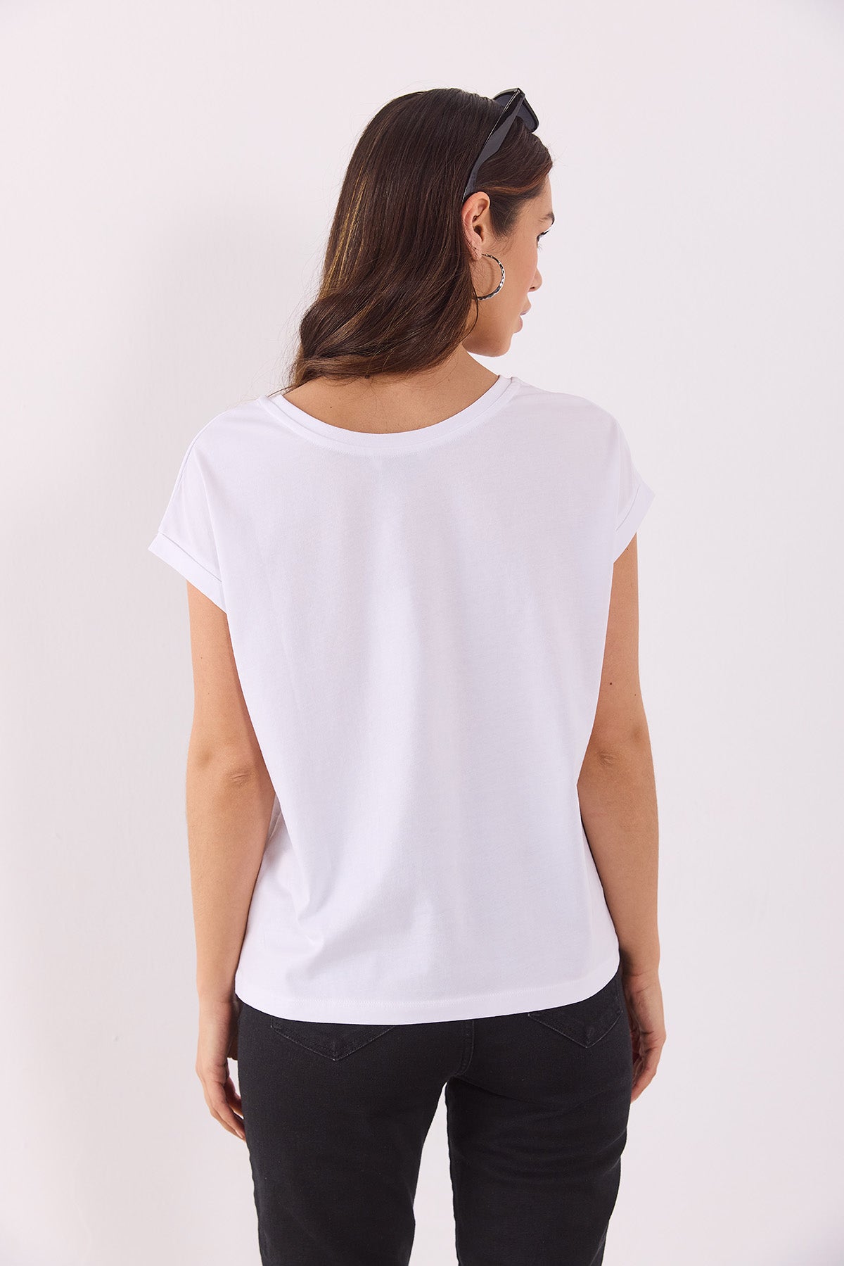 Kadın Cindy Vena Logolu Tişört %100 Pamuk - Beyaz