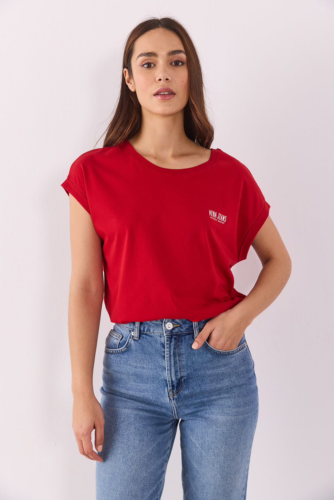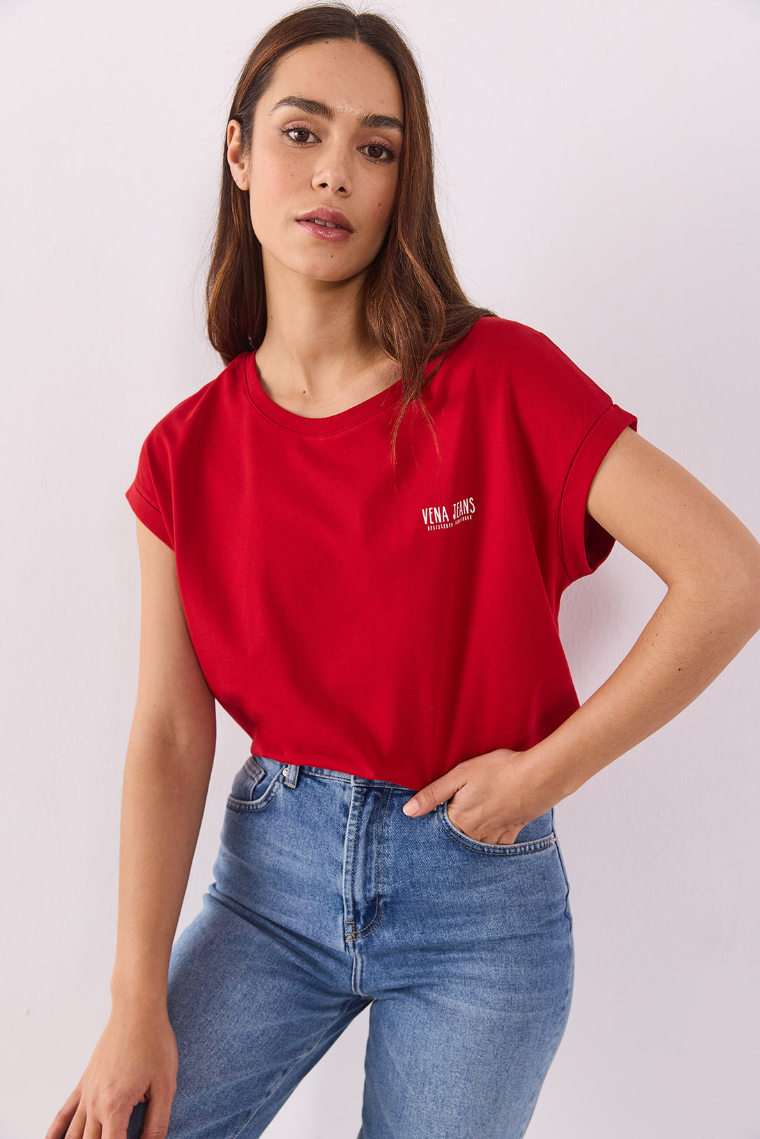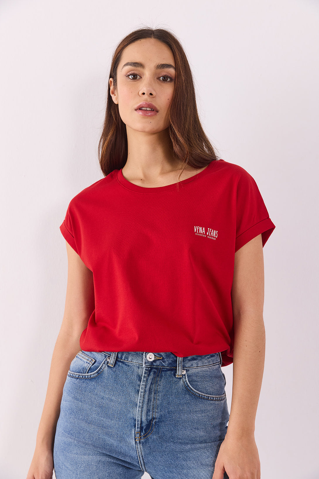 Vena kadın koleksiyonundan Cindy Vena Logolu Tişört. Bisiklet yaka. Regular fit. Yüzde yüz pamuk kumaşı sayesinde nefes alır, konfor sağlar. Göğsünde minimal baskılı. Kısa kollu.