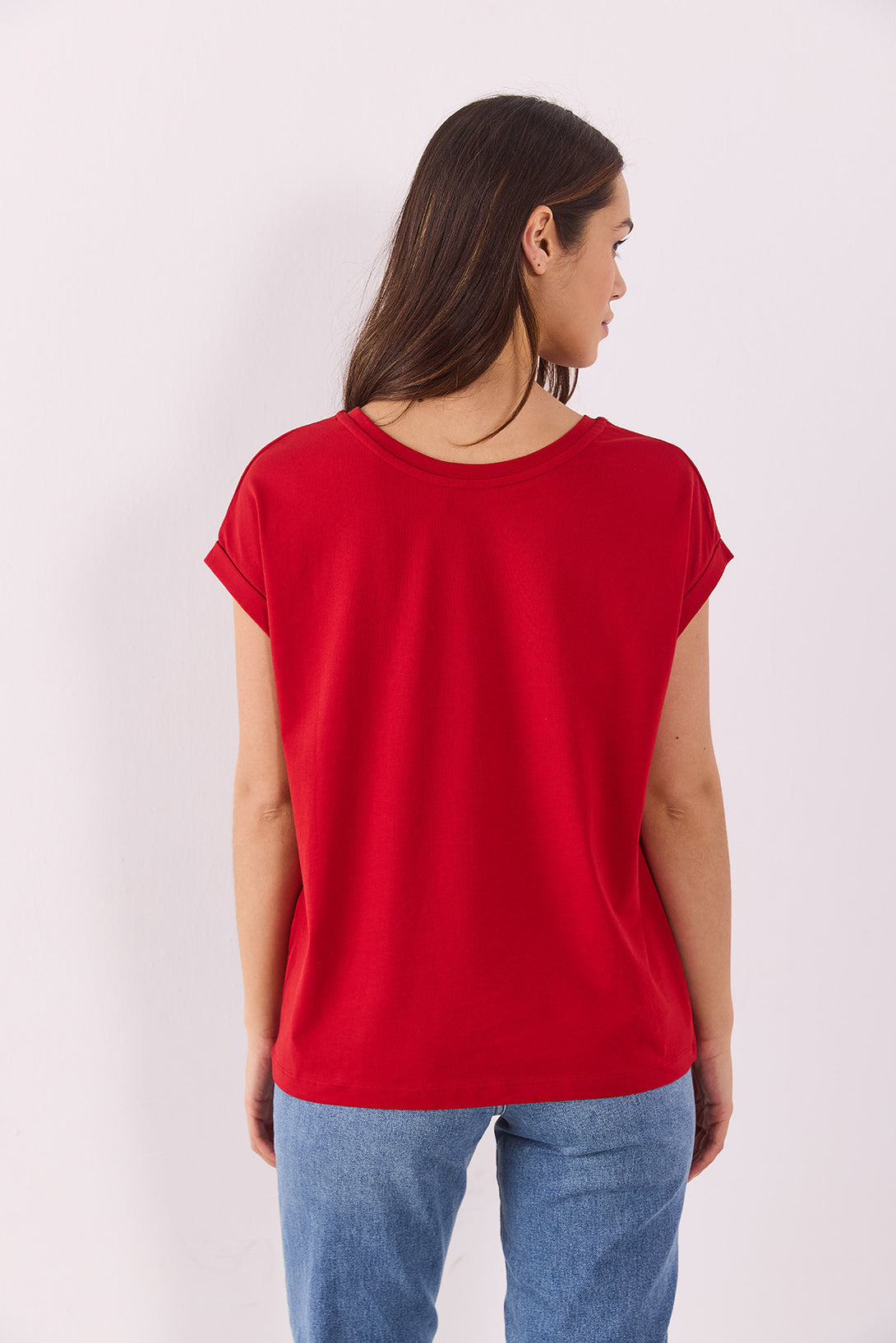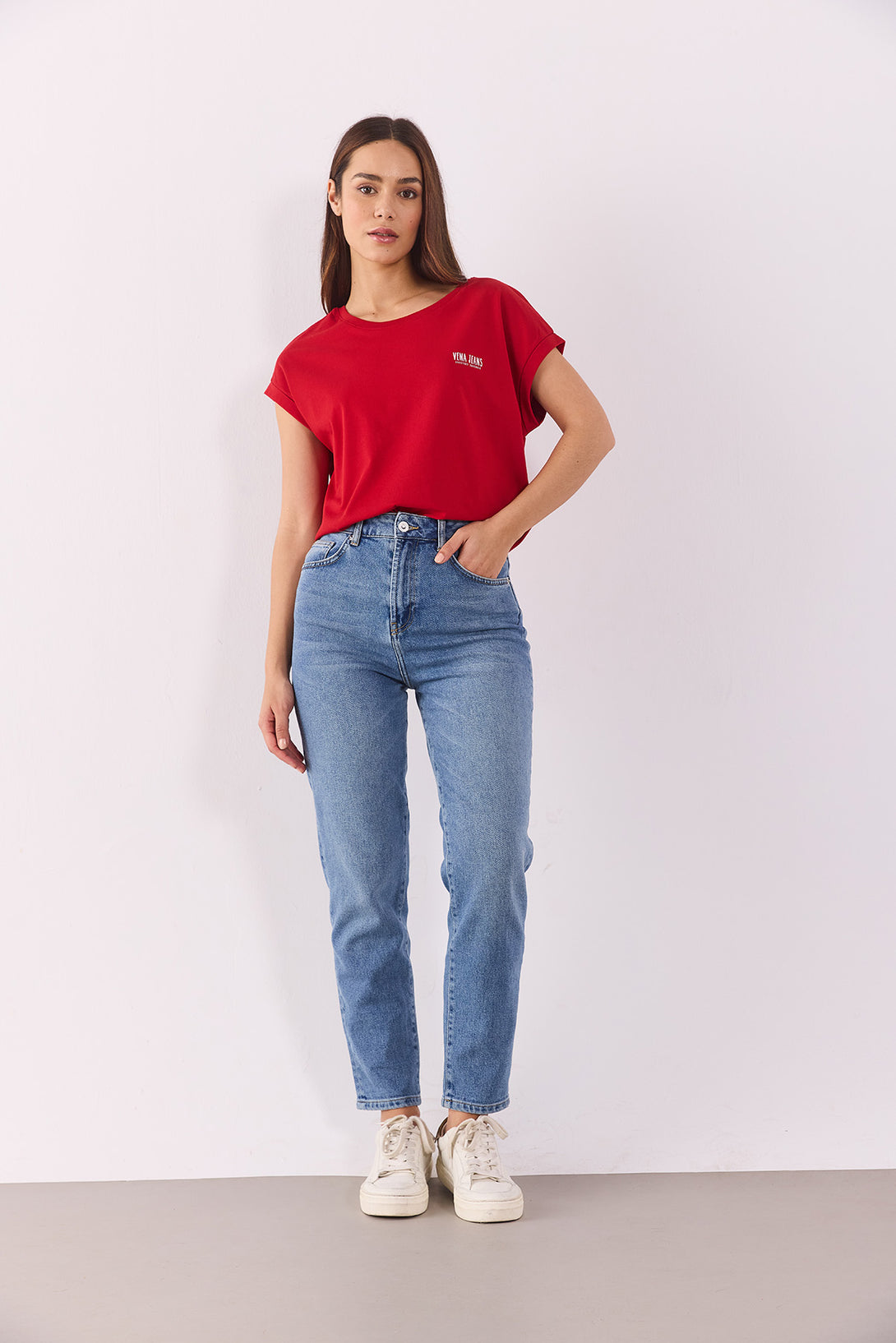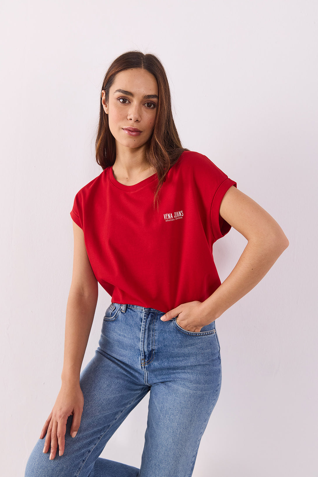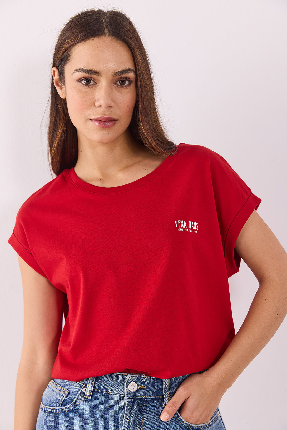 Vena kadın koleksiyonundan Cindy Vena Logolu Tişört. Bisiklet yaka. Regular fit. Yüzde yüz pamuk kumaşı sayesinde nefes alır, konfor sağlar. Göğsünde minimal baskılı. Kısa kollu.