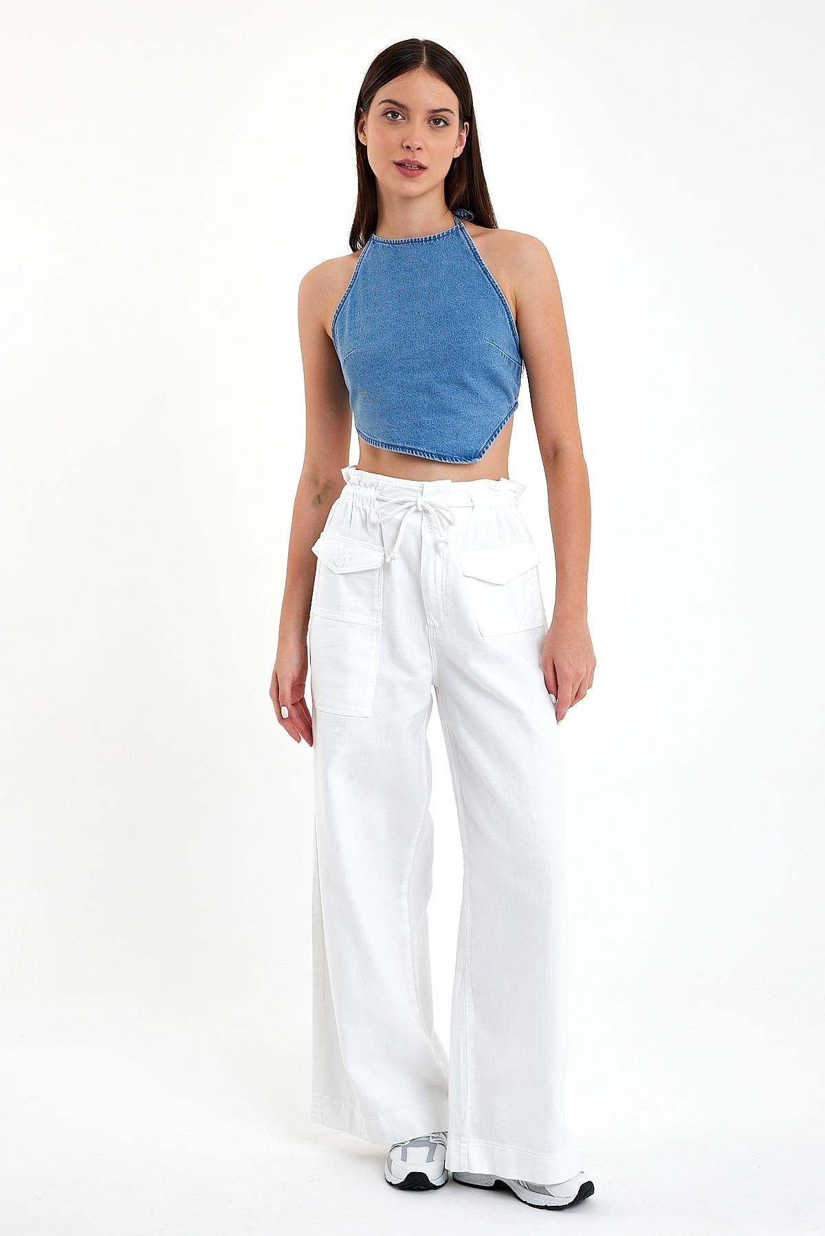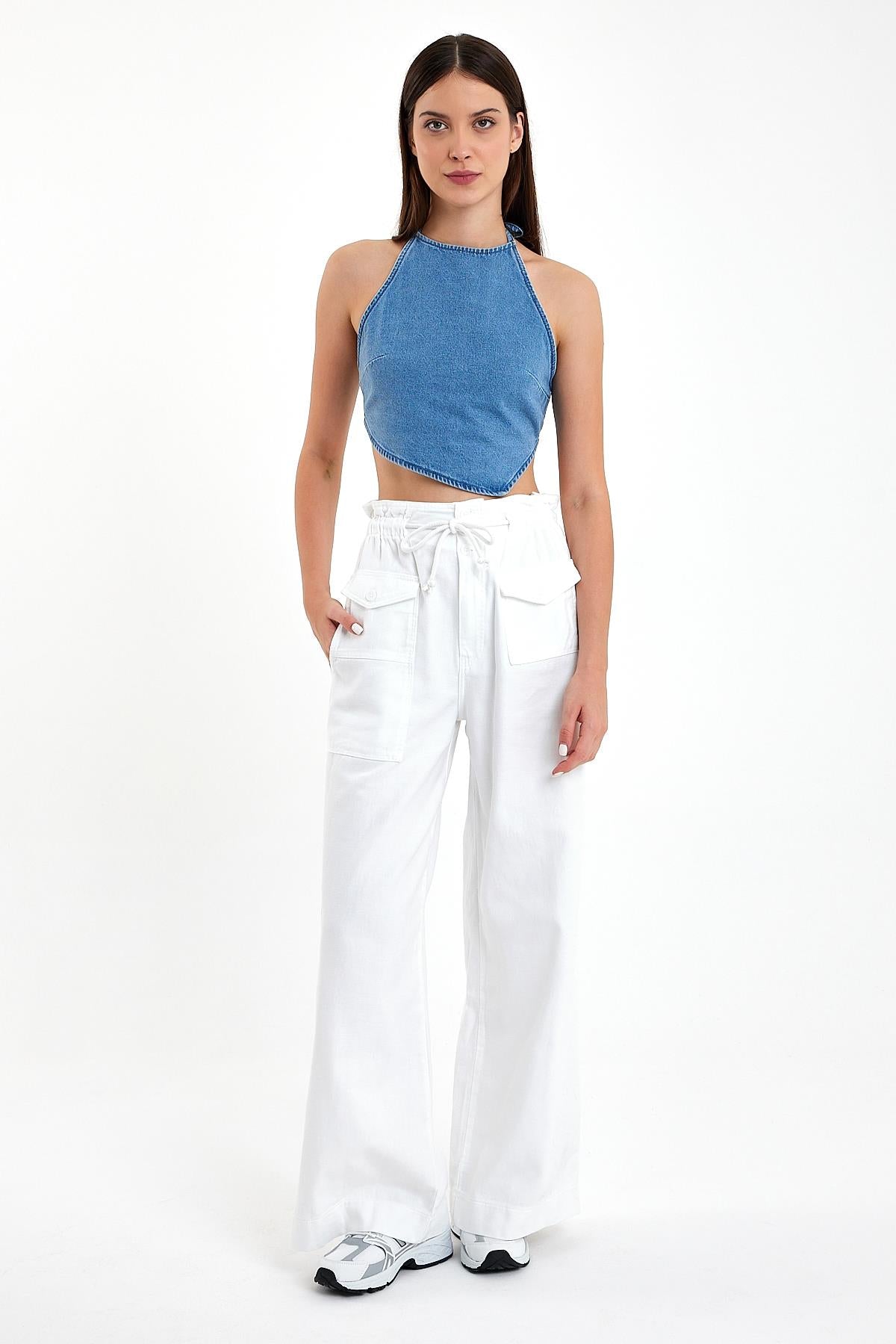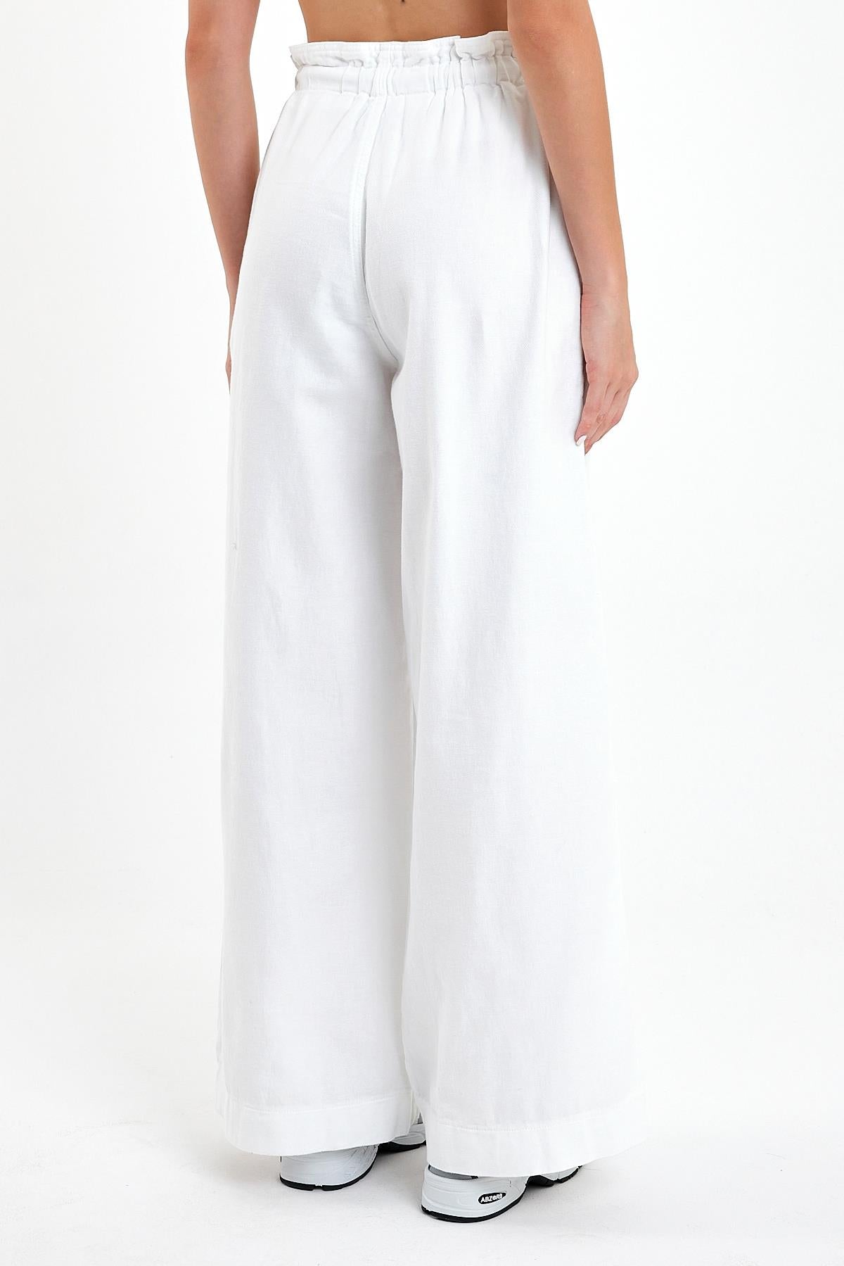 Kadın Clara Geniş Paça Paperbag Pantolon %100 Pamuk - Beyaz