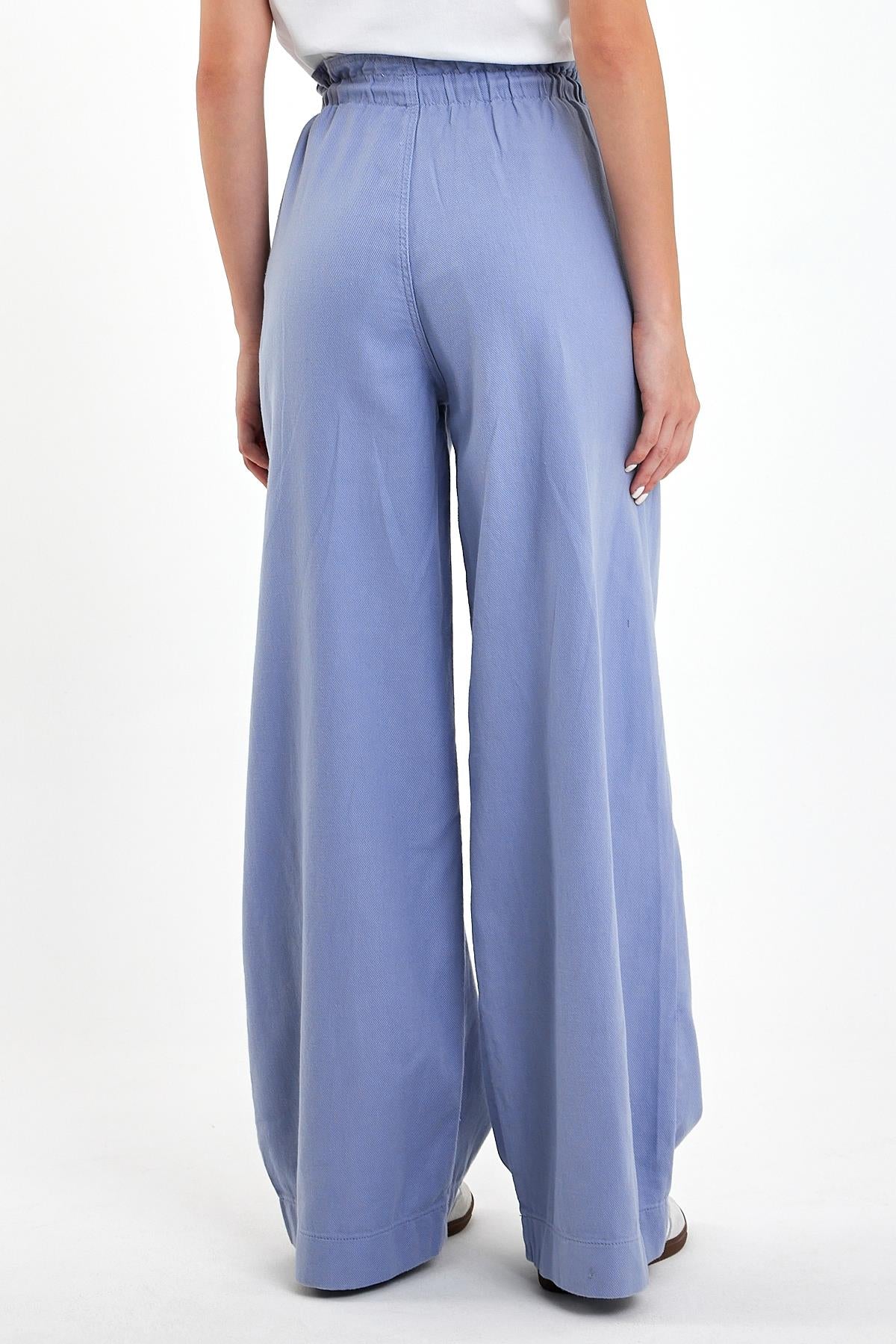 Kadın Clara Geniş Paça Paperbag Pantolon %100 Pamuk - Mavi