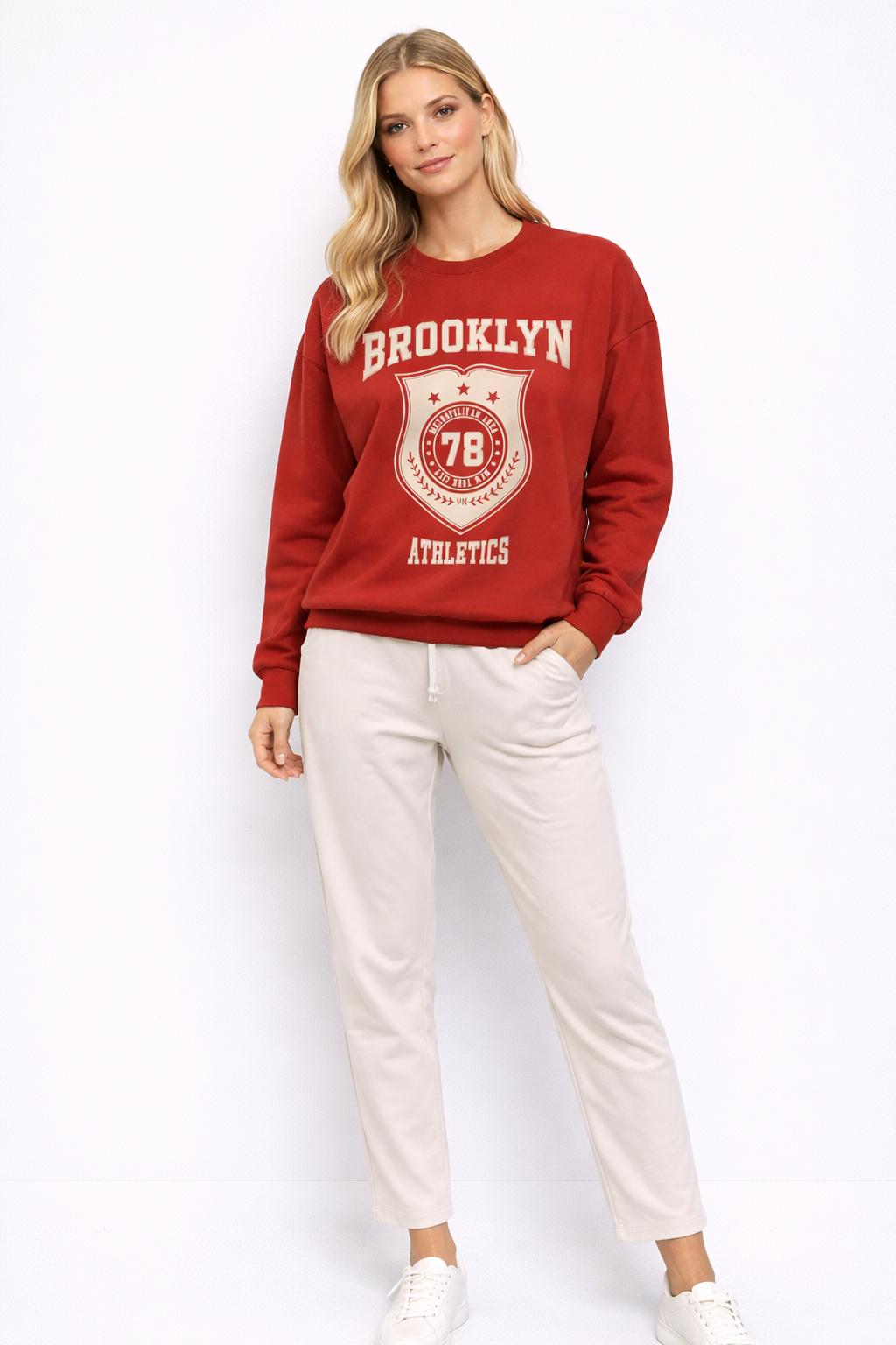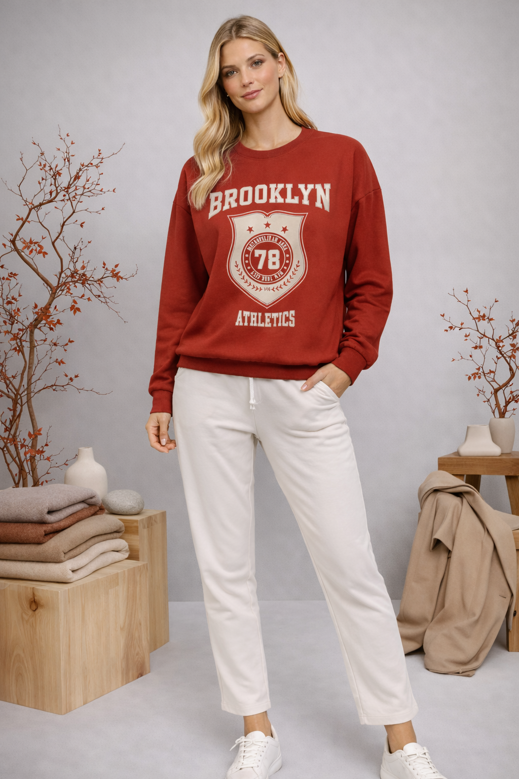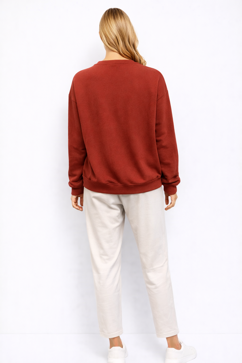Kadın College Baskılı Sweatshirt %100 Pamuk - Kiremit