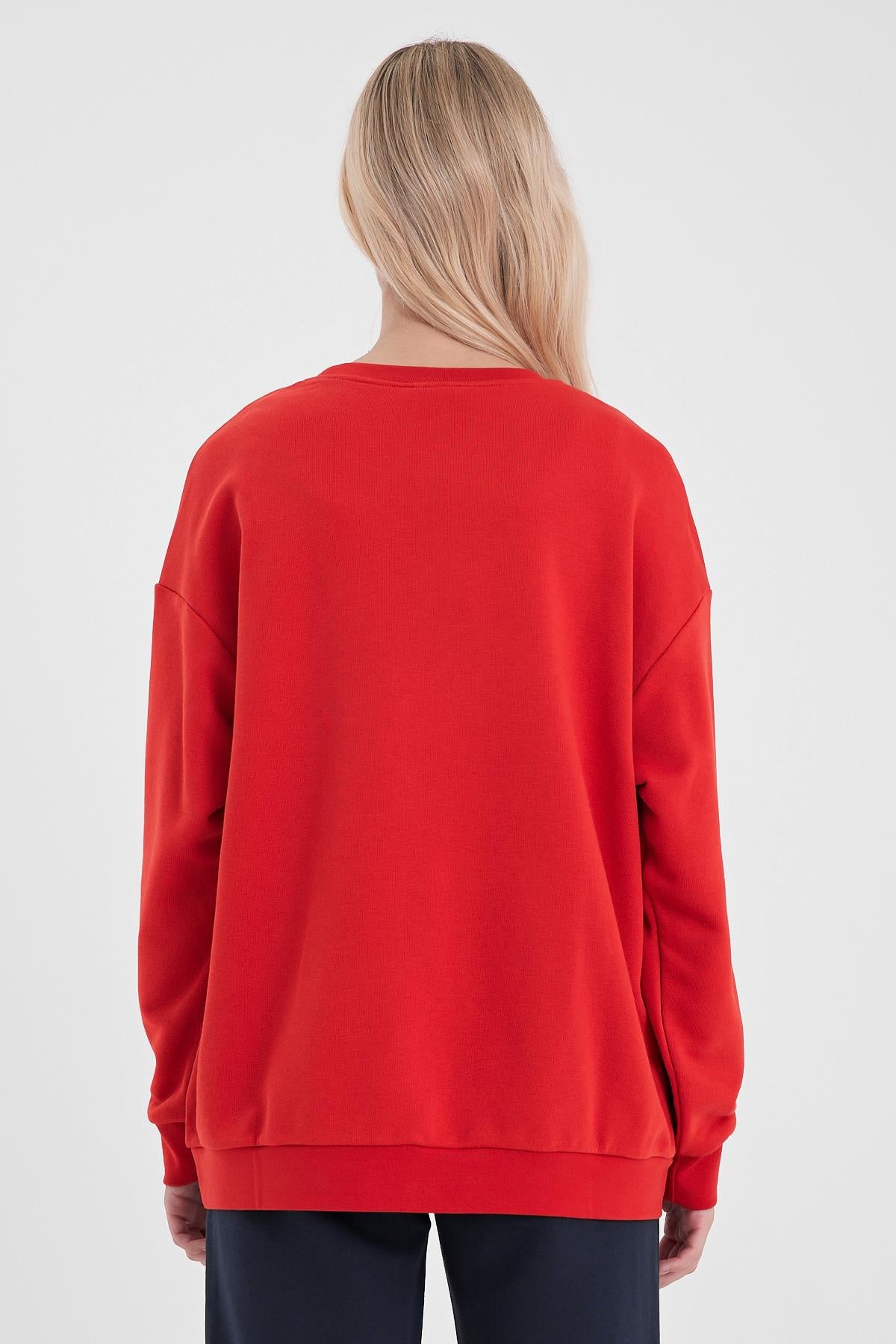 Kadın College Baskılı Sweatshirt - Kırmızı