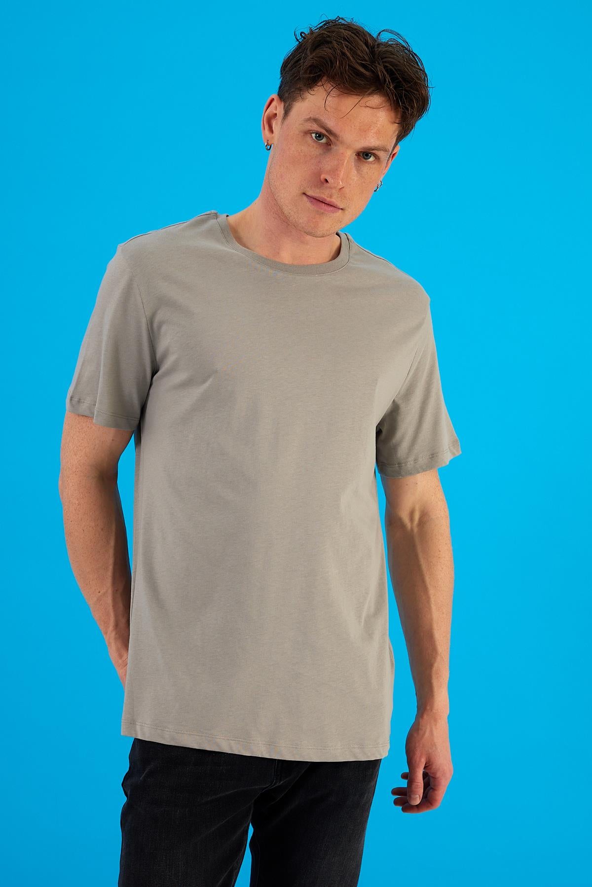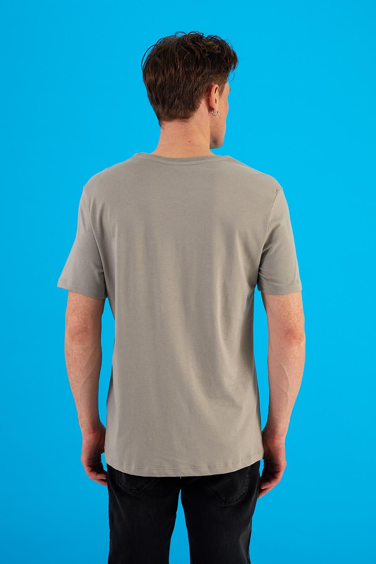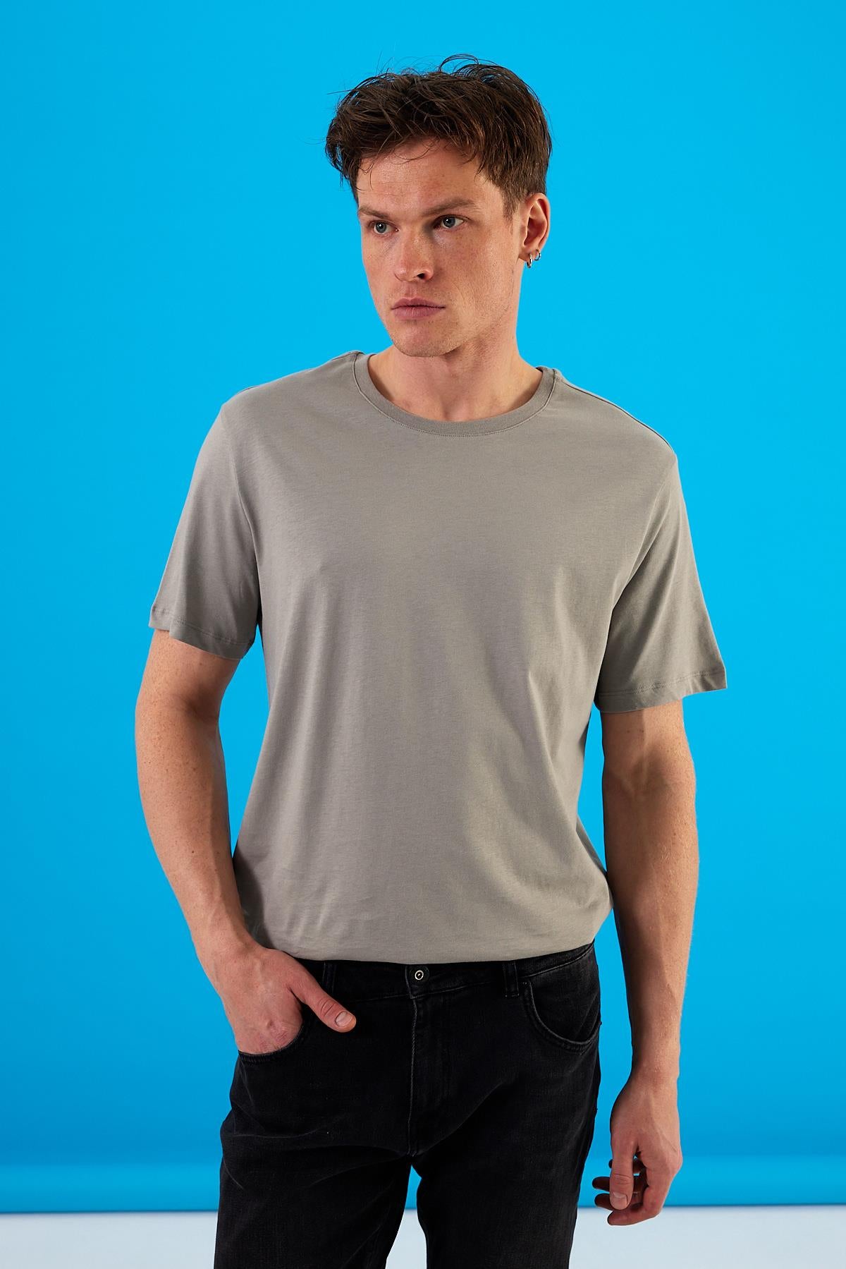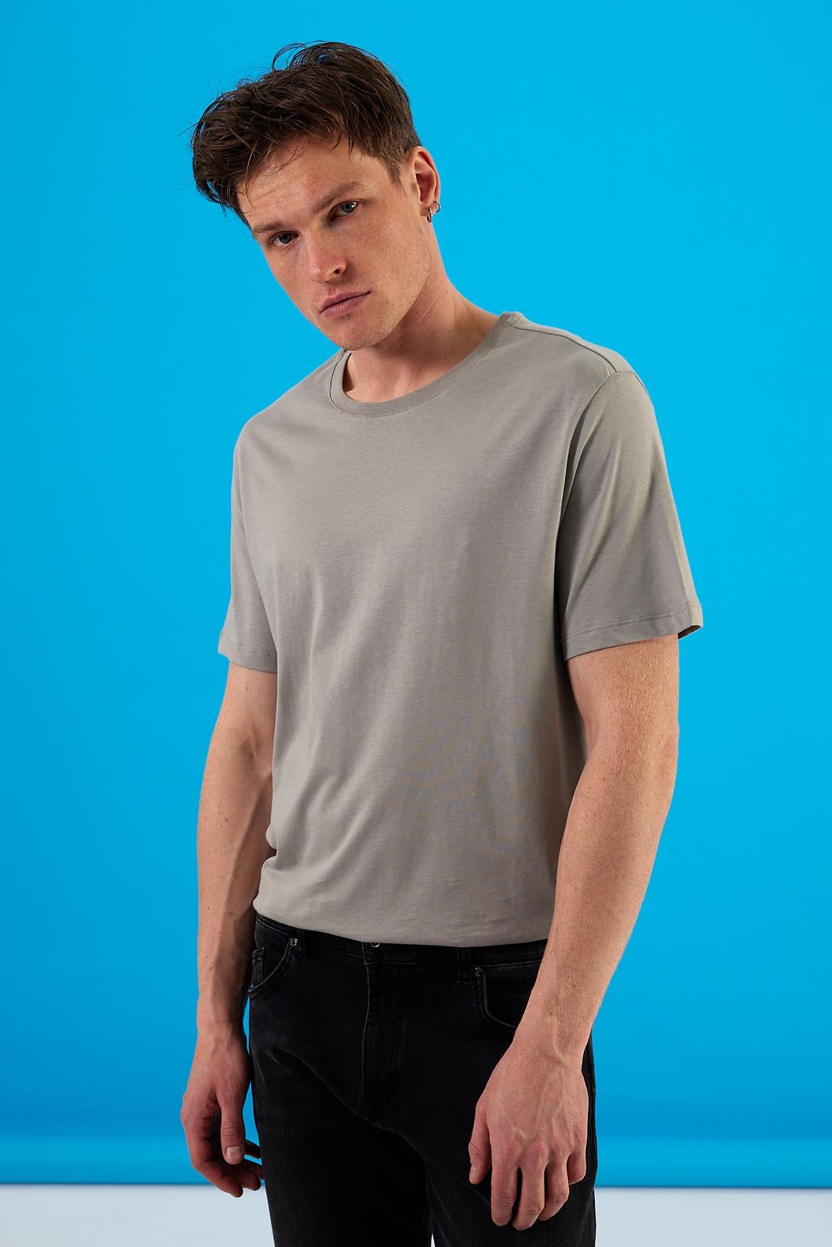 Erkek Danny Sıfır Yaka Basıc Tişört %100 Pamuk - Gri