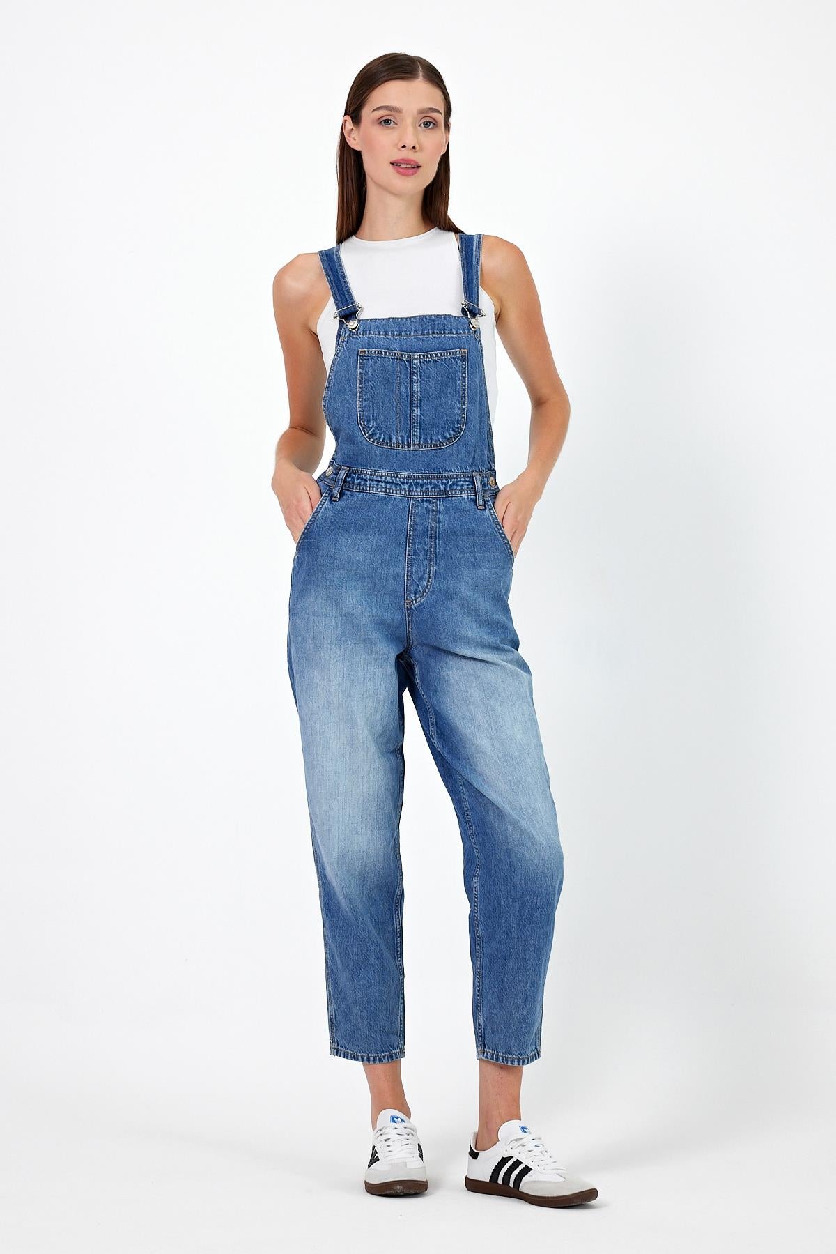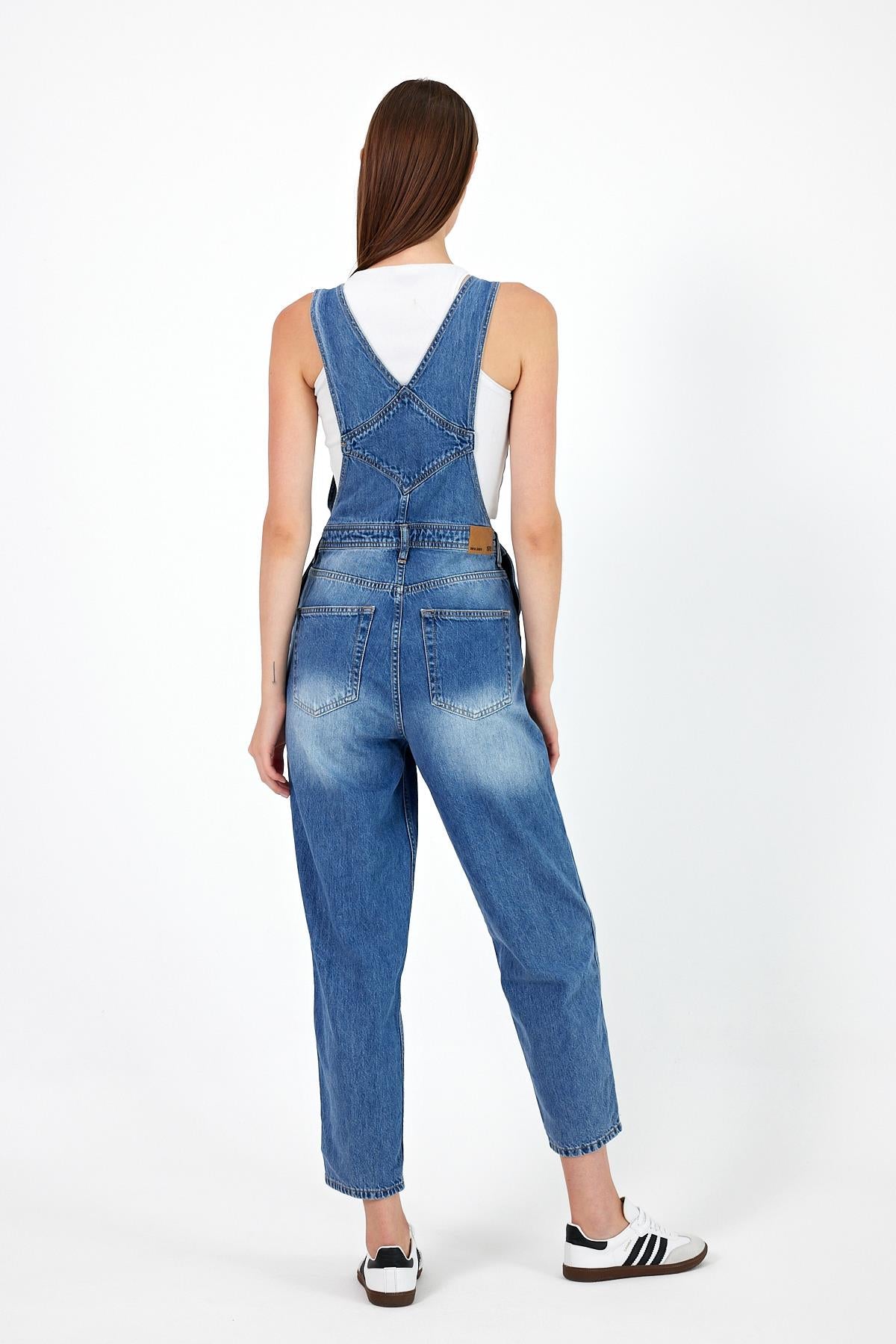 Kadın Dora Dirty Med Blue Mom Jean Salopet Tulum