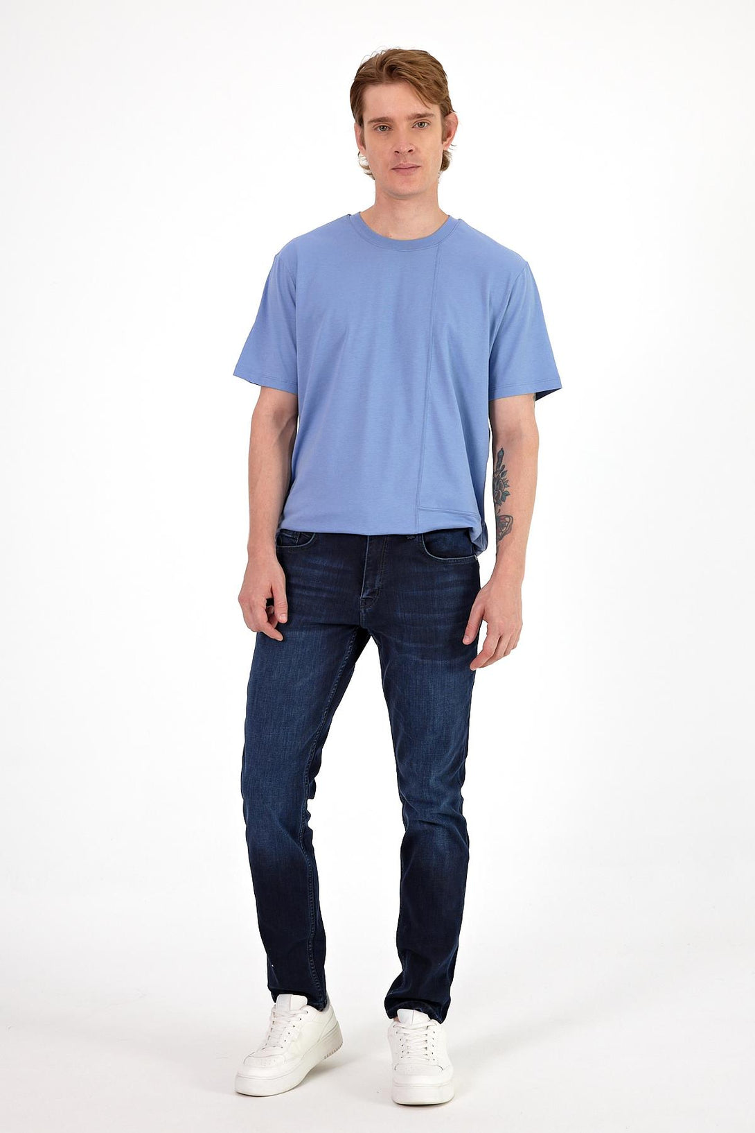 Erkek Edward Blue Black Slim Straight Jean Pantolon
