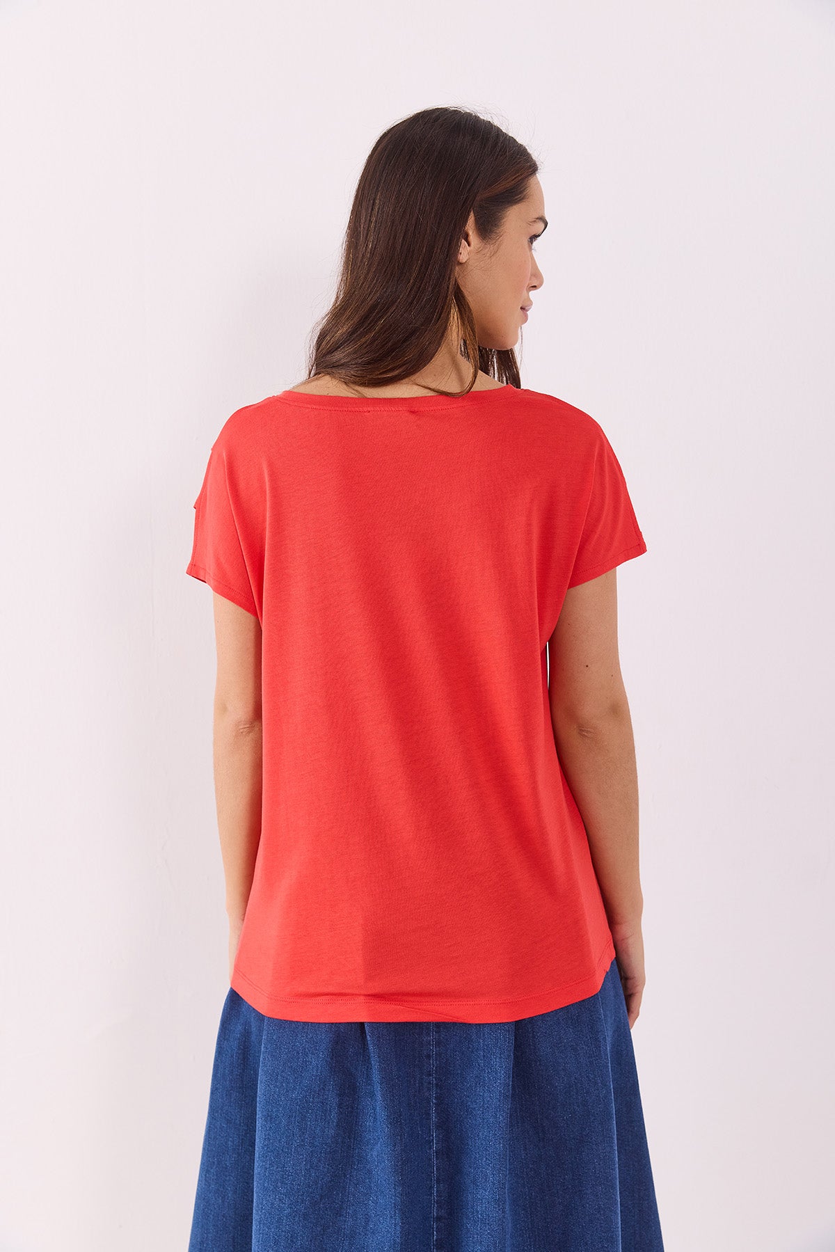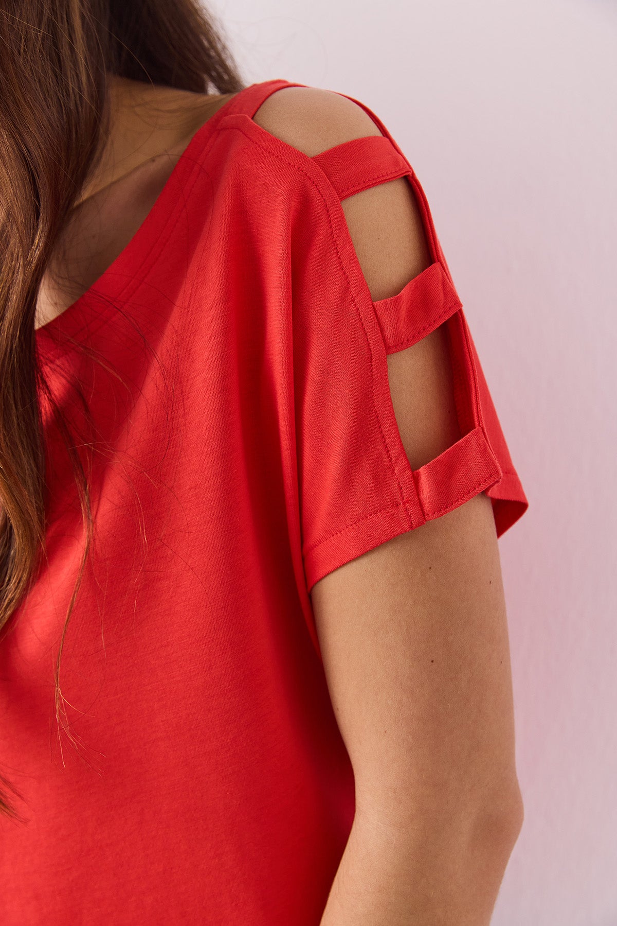 Kadın Elsa Bisiklet Yaka Omzu Detaylı Modal Tişört (TENCEL)™ - Mercan