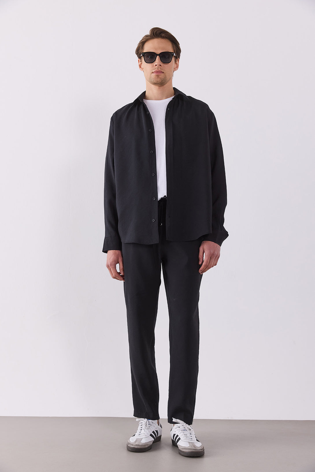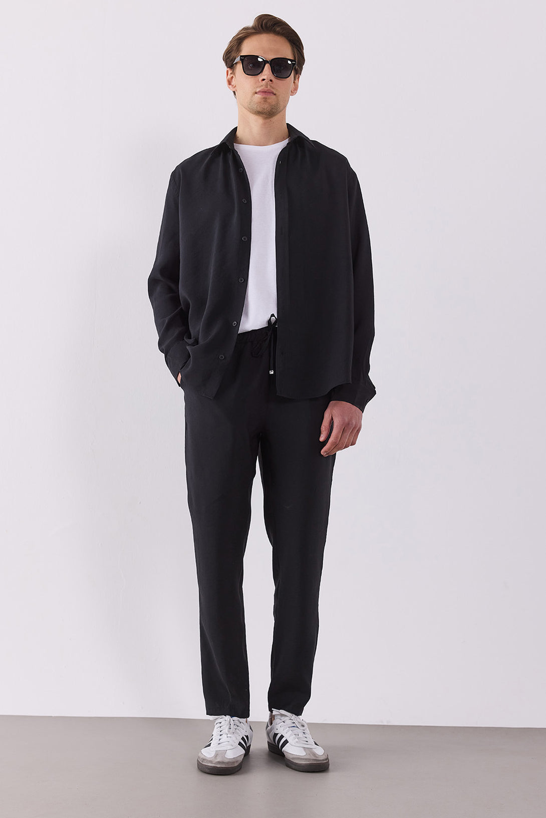 Erkek Beli Lastikli Pantolon (CUPRO) - Siyah