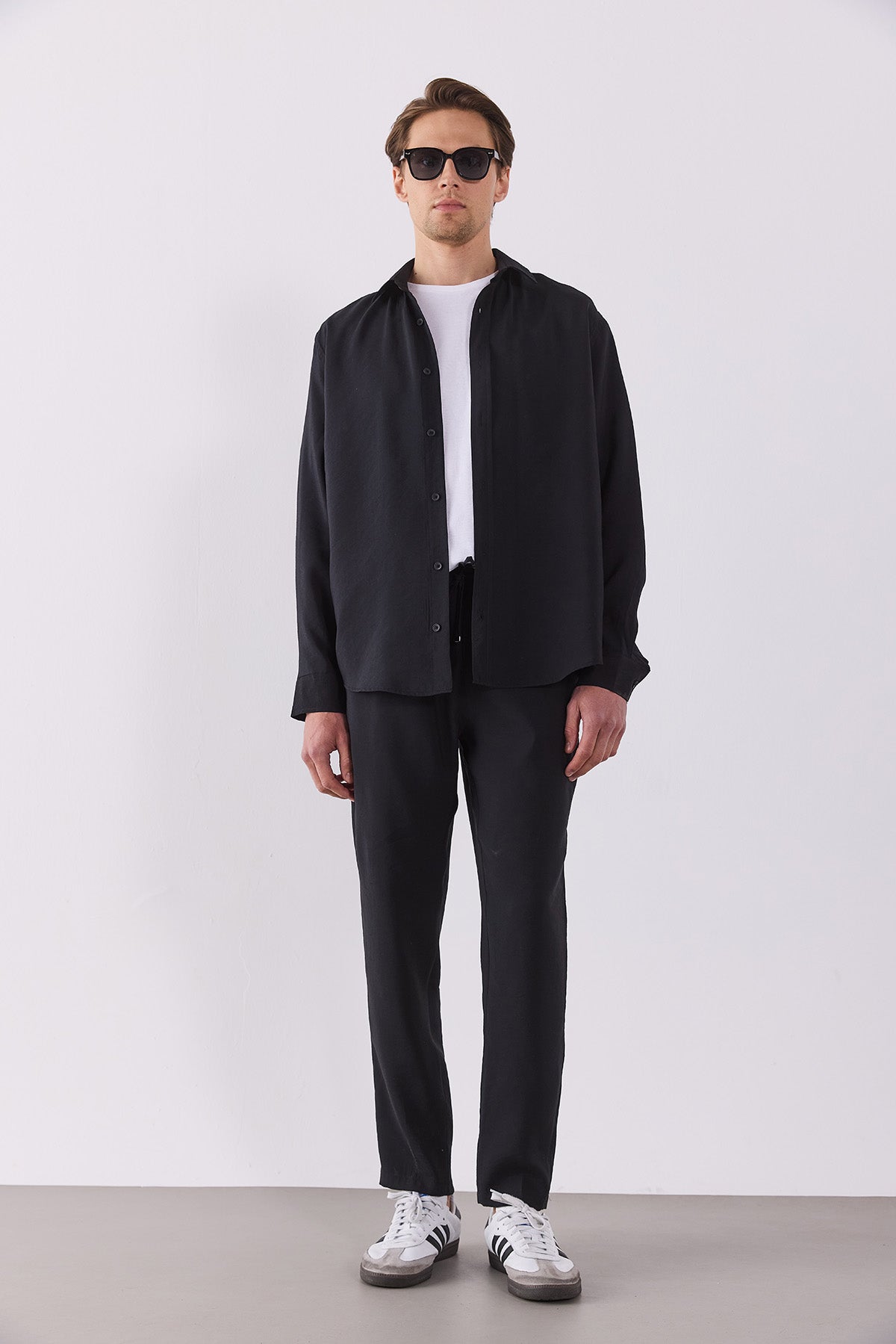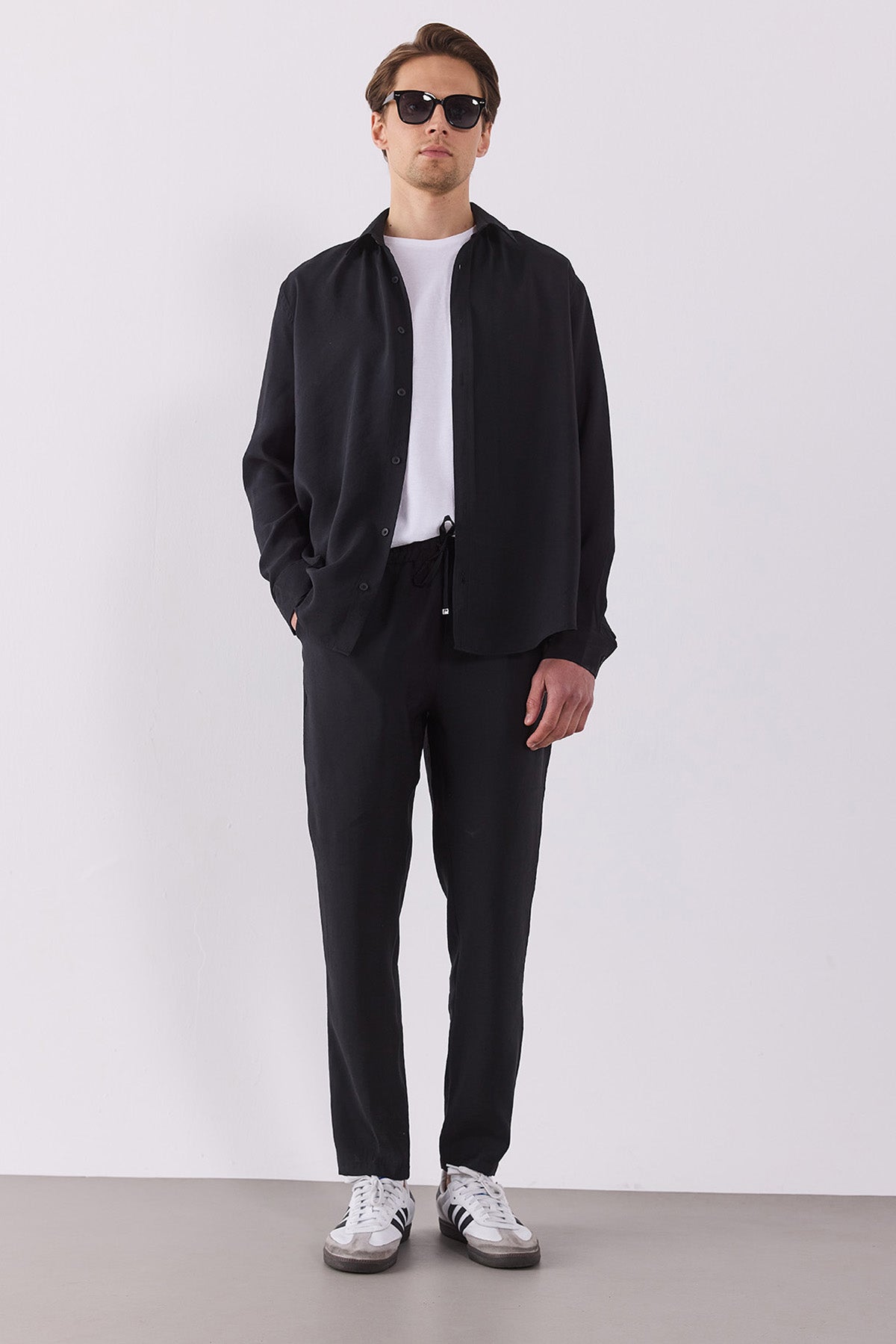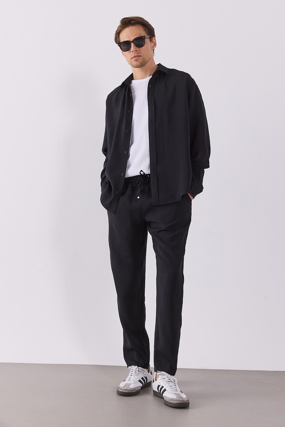 %83 Modal %17 Polyester Cupro yapısı pürüzsüz bir his verir.