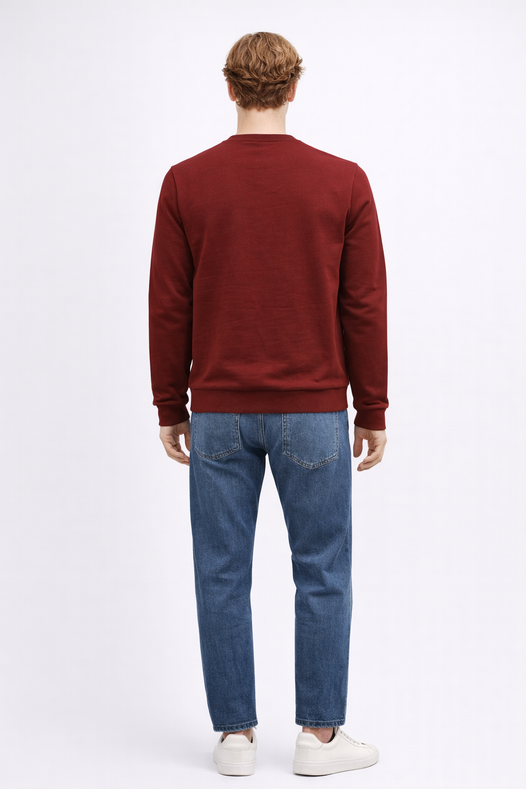 Erkek Bisiklet Yaka Logo Baskılı %100 Pamuk Sweatshirt - Bordo