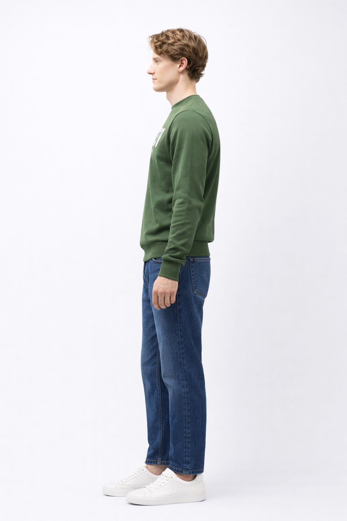 Erkek Bisiklet Yaka Logo Baskılı %100 Pamuk Sweatshirt - Haki