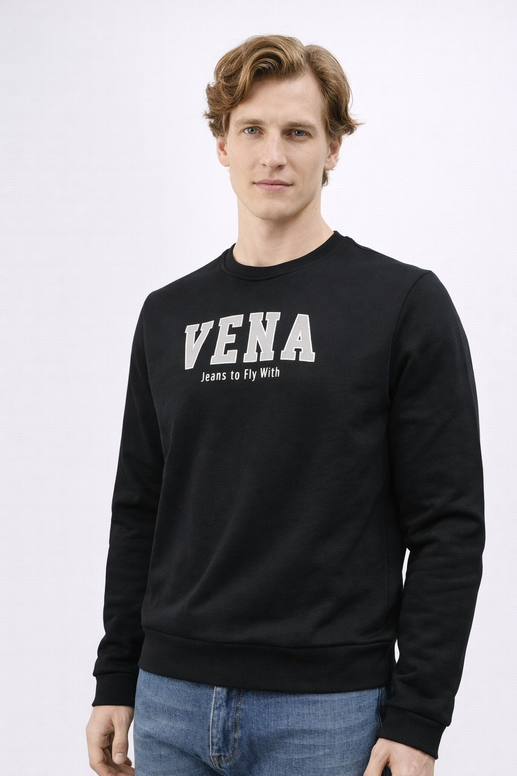 Erkek Bisiklet Yaka Logo Baskılı %100 Pamuk Sweatshirt - Siyah