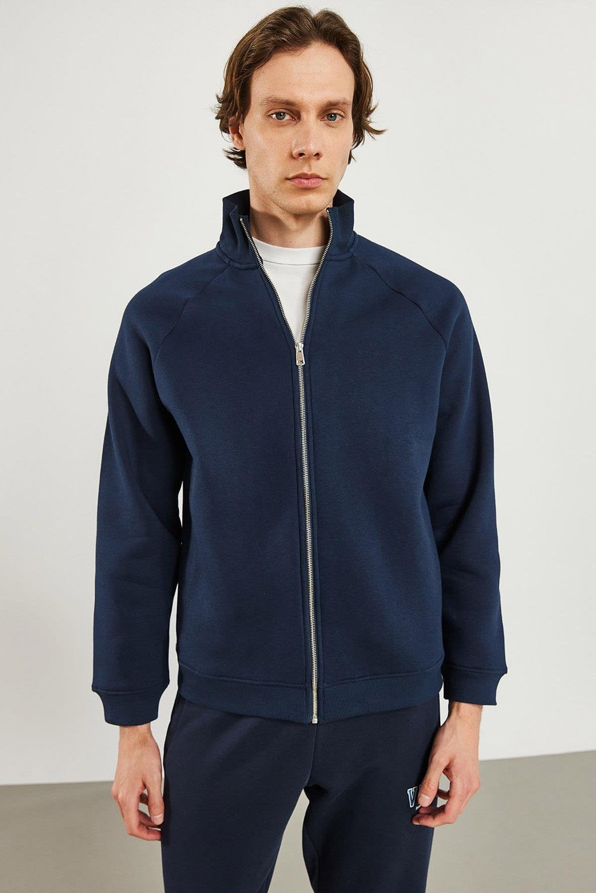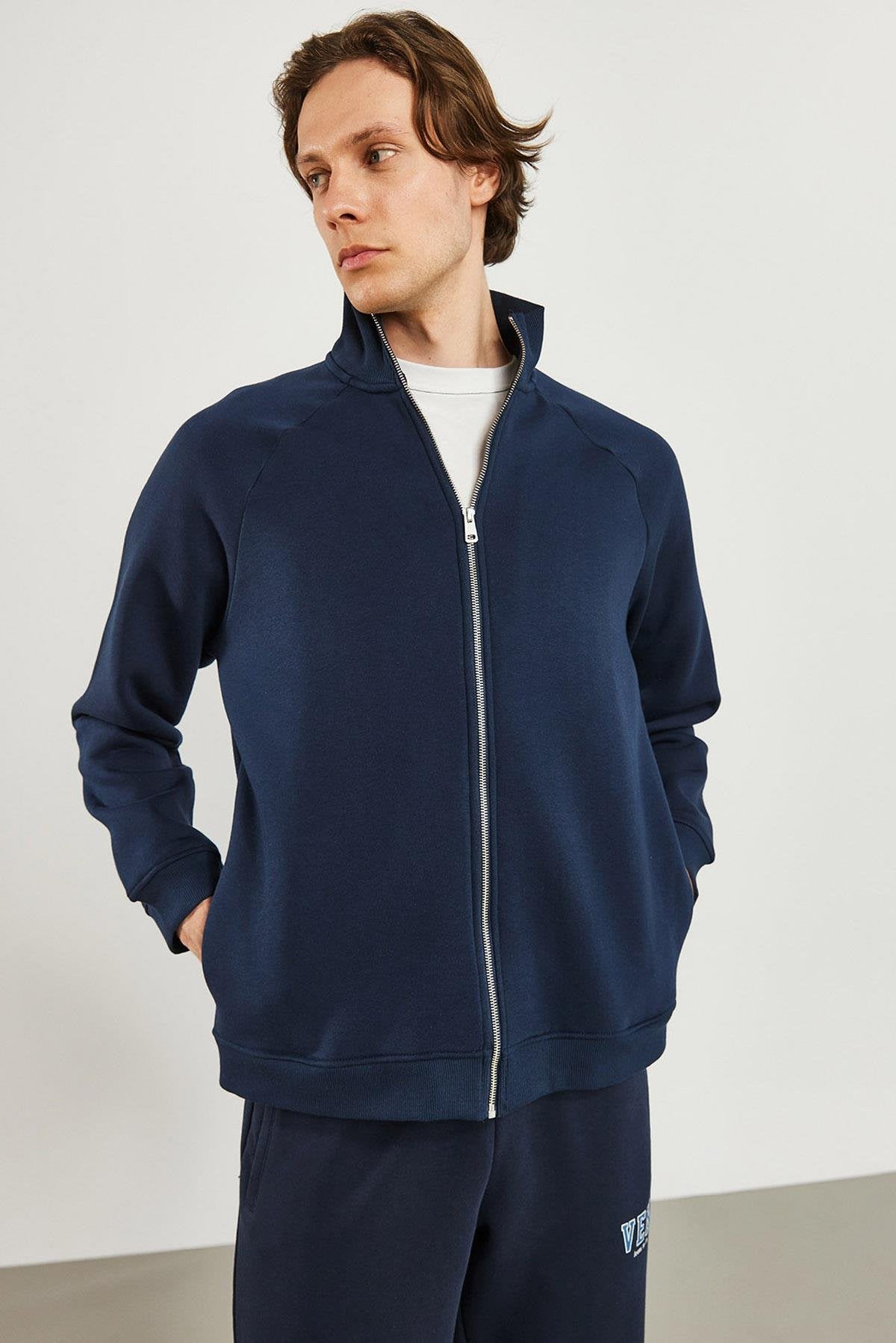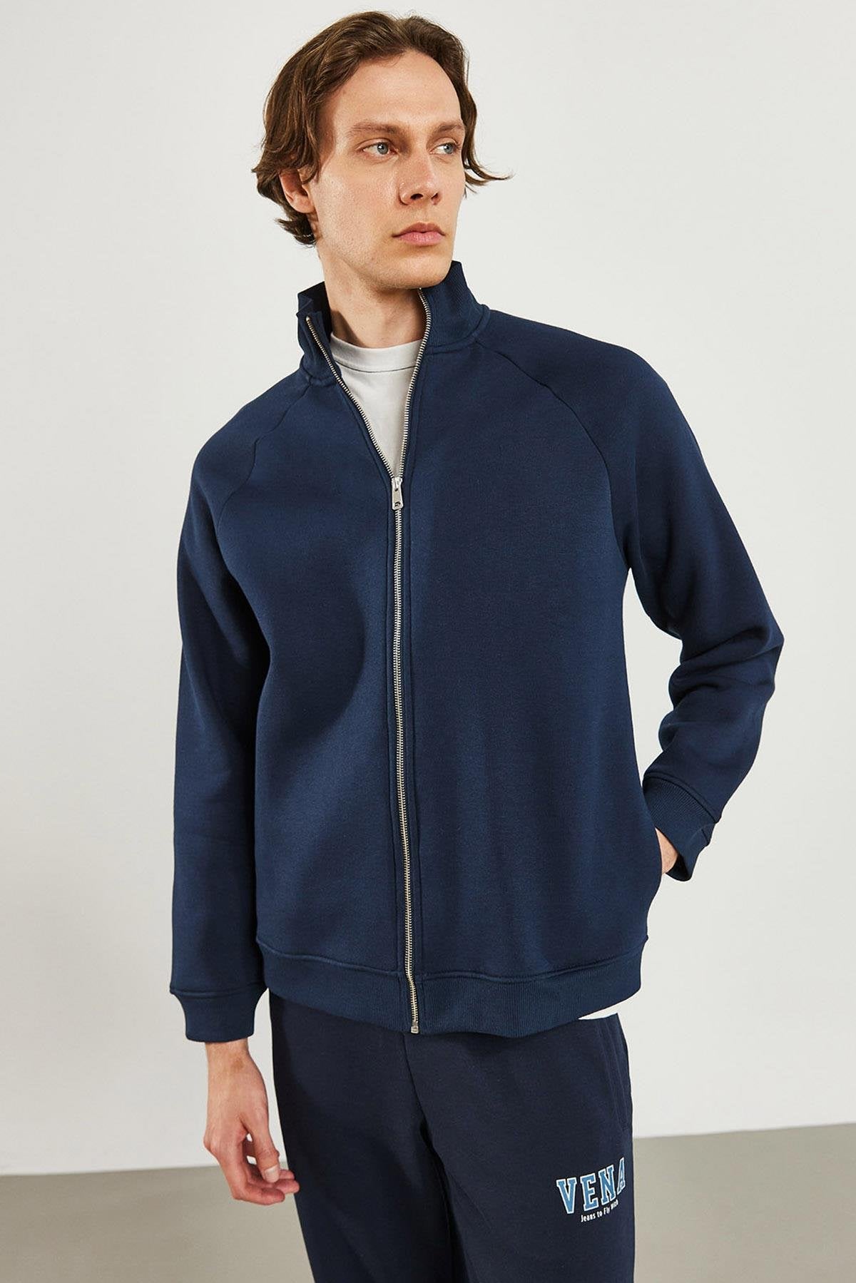 Erkek Dik Yaka Çıt Çıtlı Sweatshirt