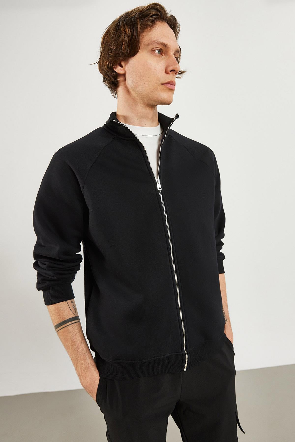 Erkek Dik Yaka Çıt Çıtlı Sweatshirt